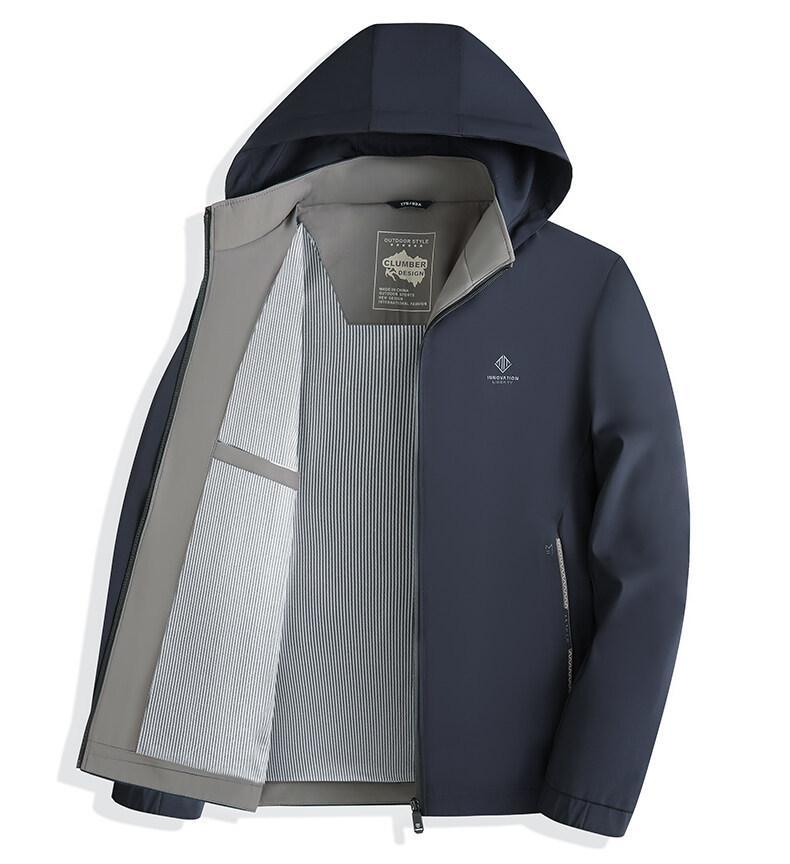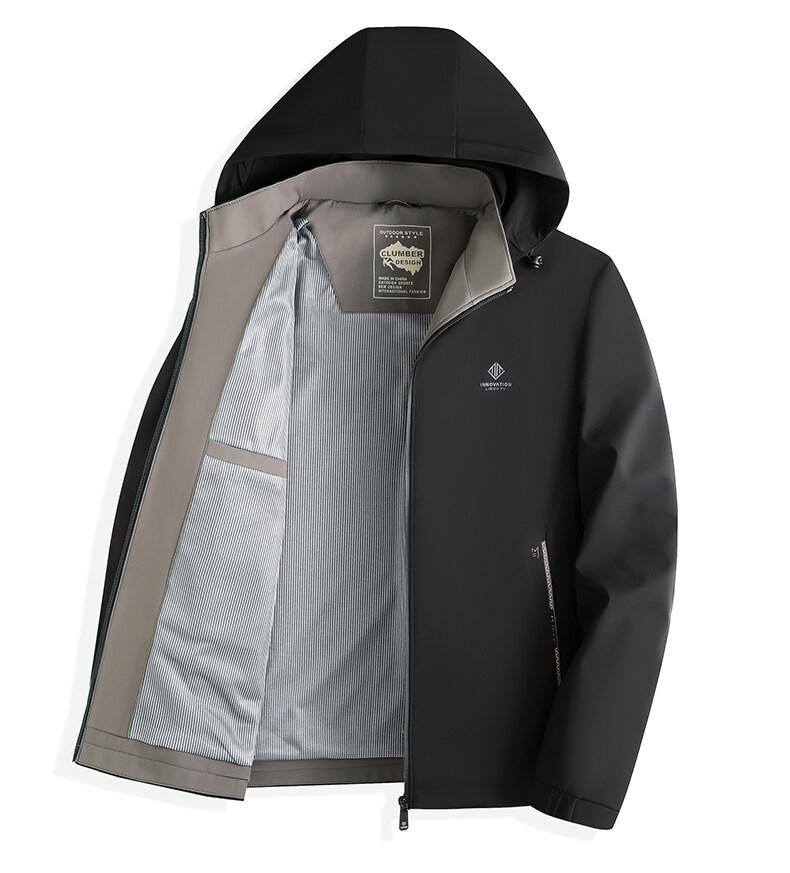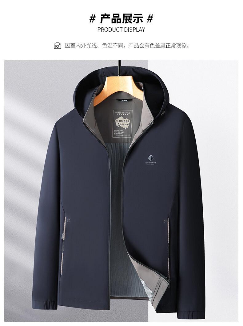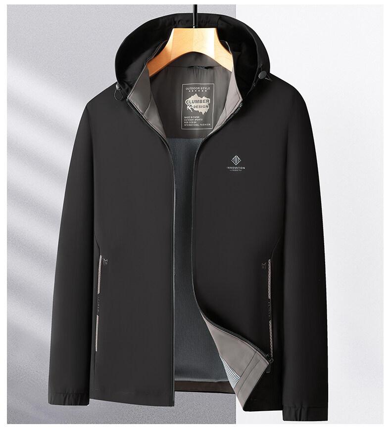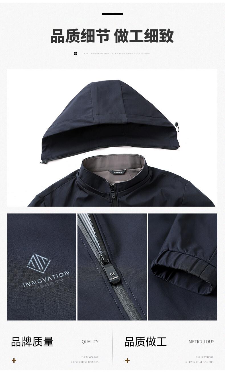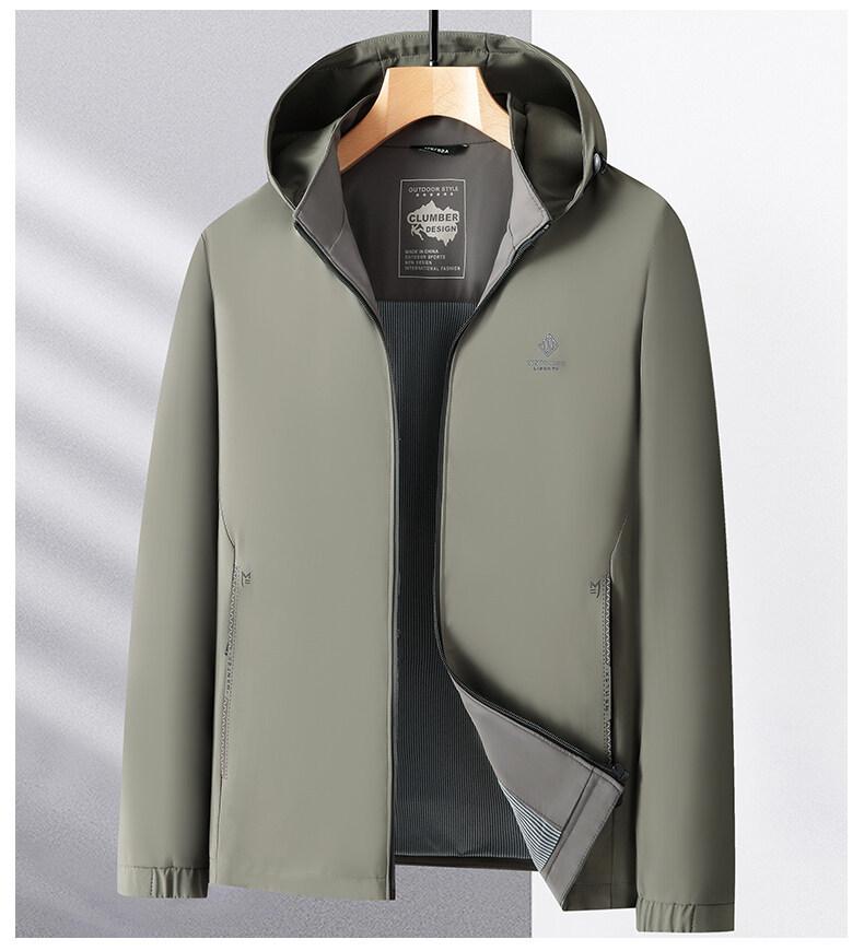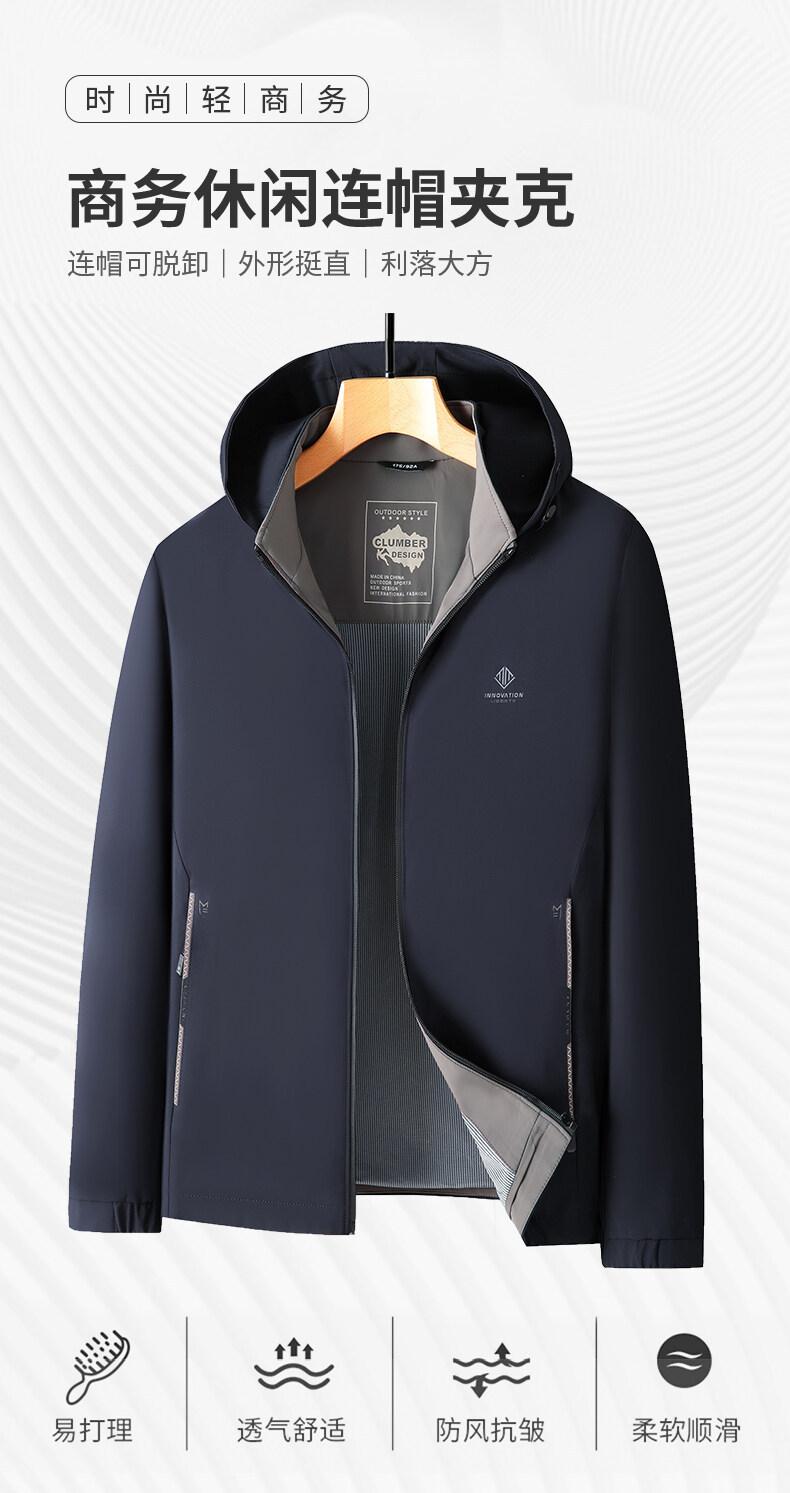 Chaqueta de hombre, primavera y otoño 2025, cuello vertical fino, con capucha, versión de lanzamiento, chaqueta informal de negocios de lujo para jóvenes de mediana edad.