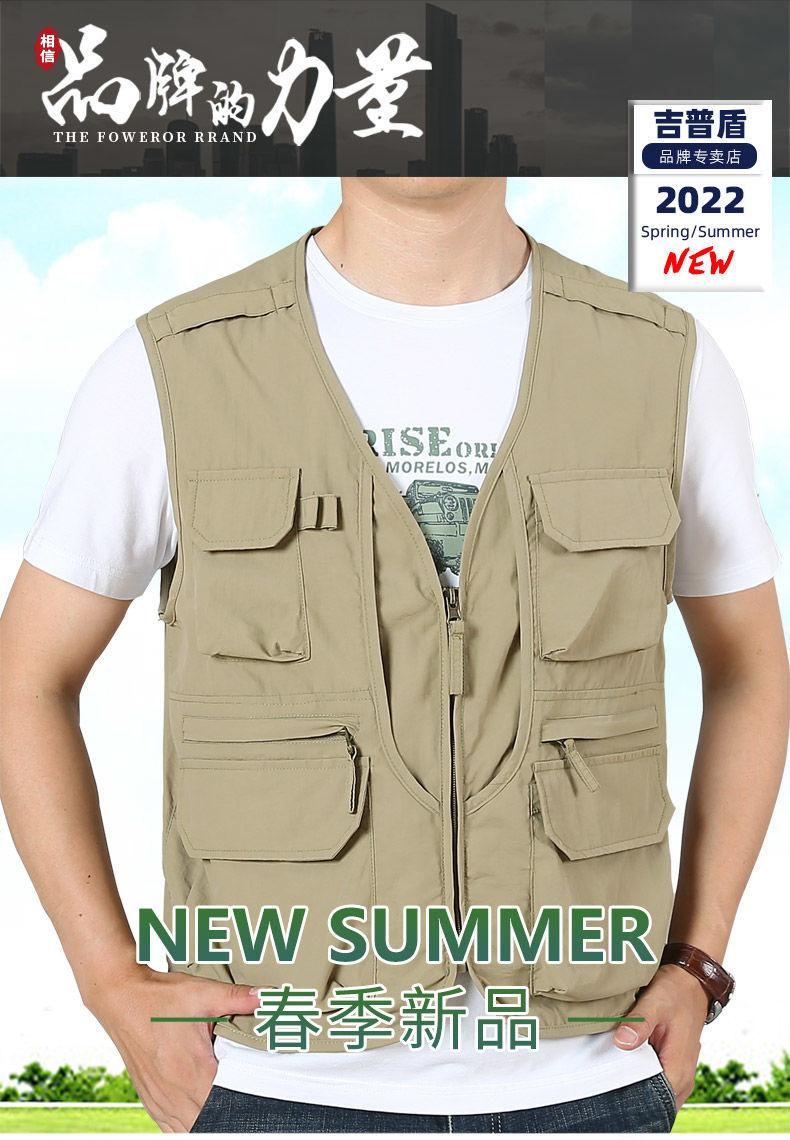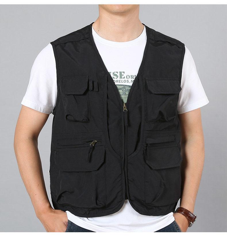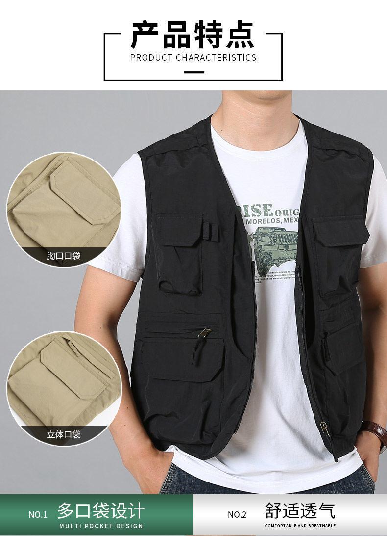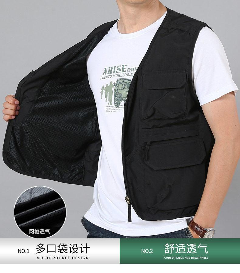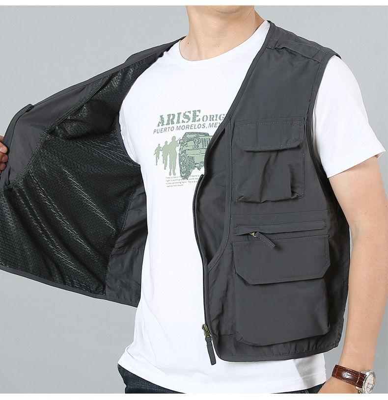 Chaleco para hombre Otoño Nuevo Suelto Talla Grande Multibolsillos Color Sólido Chaleco de Pesca Casual Combinable Ropa de Trabajo