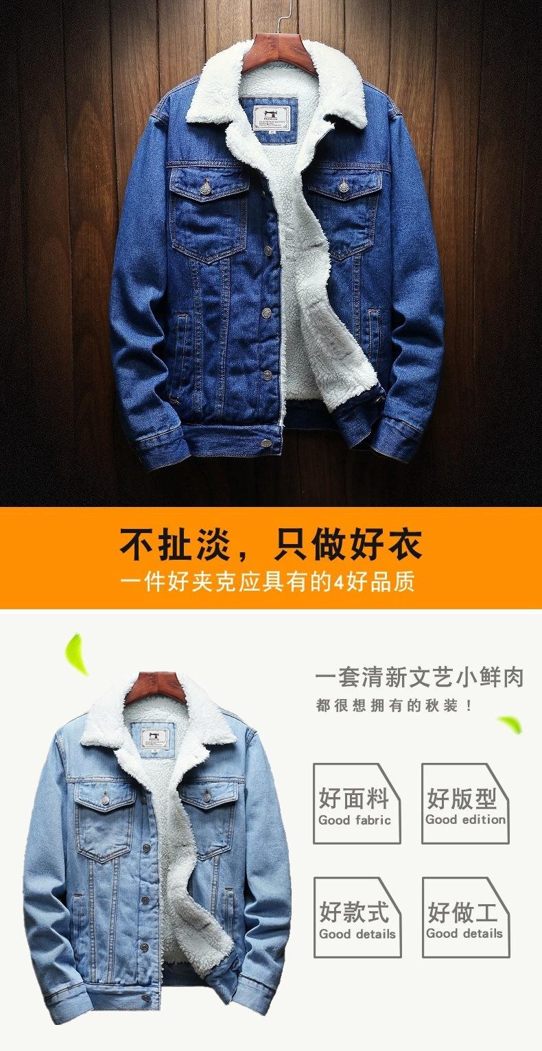 Abrigo de mezclilla de otoño e invierno para hombre, chaqueta de mezclilla de lana de cordero gruesa con forro polar para hombre, abrigo de gran tamaño, venta al por mayor