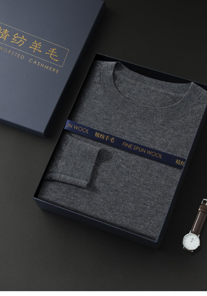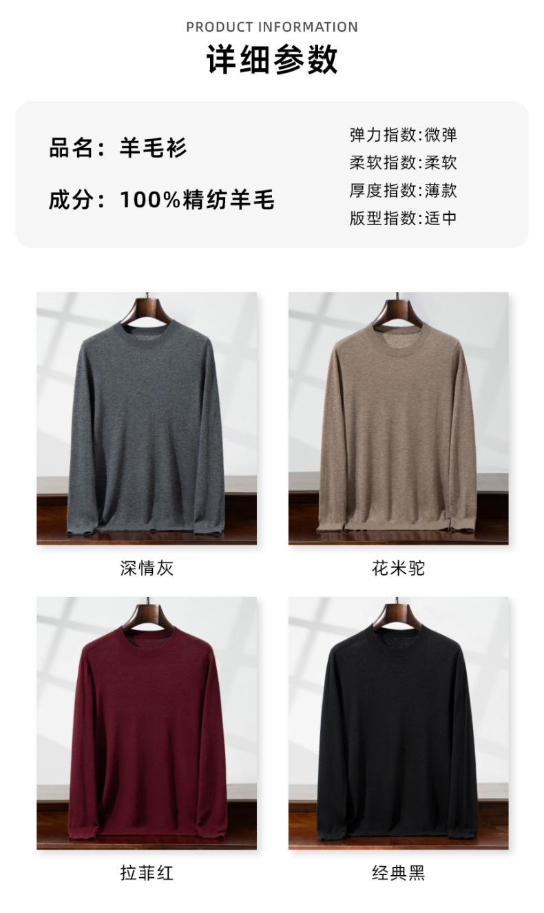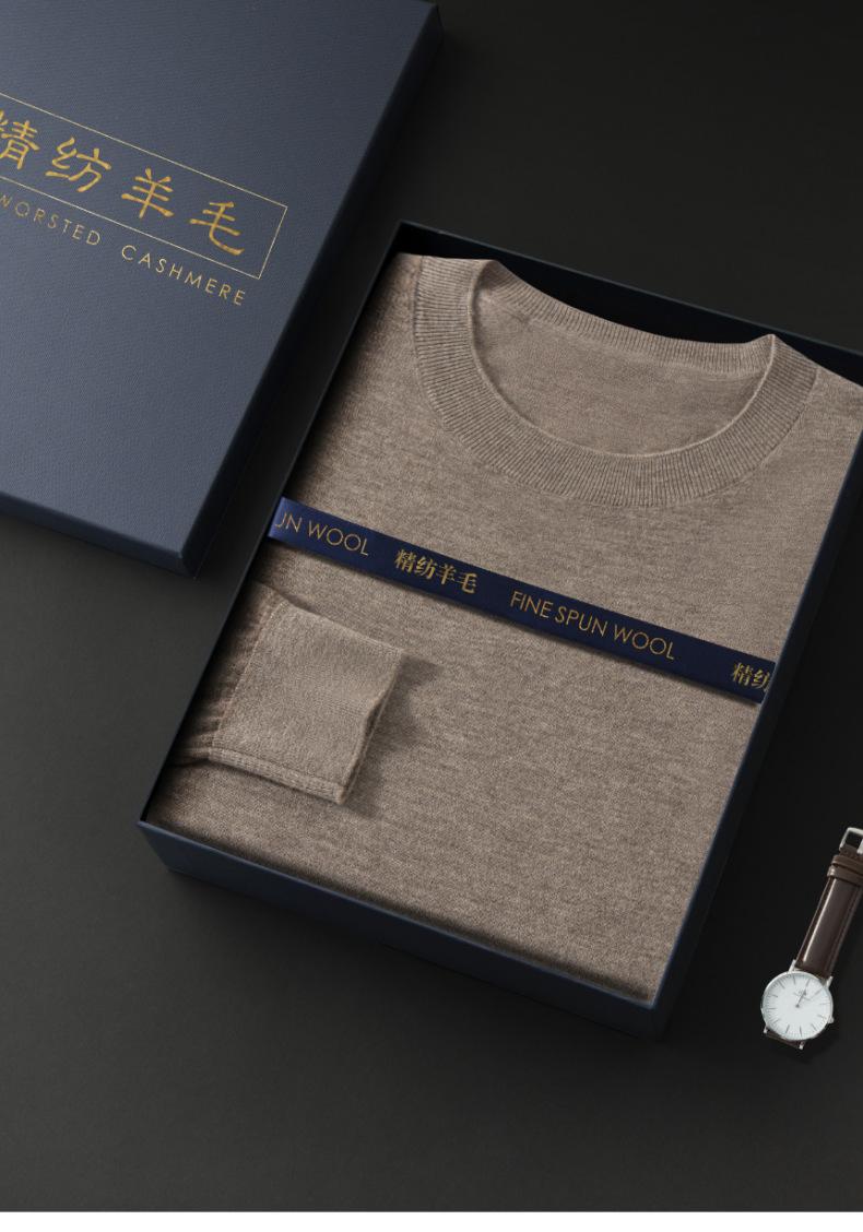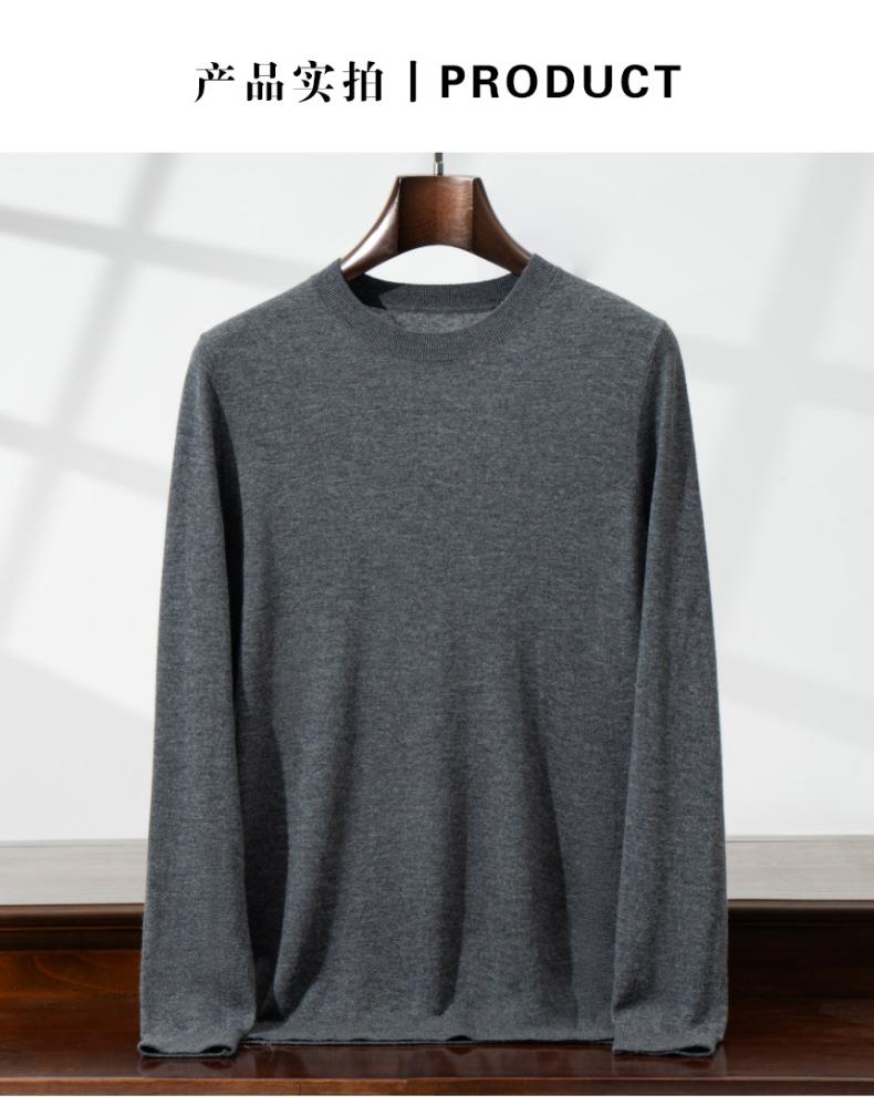Suéter de Lana Pura para Hombre Otoño e Invierno 2025 Cuello Redondo Color Sólido Jersey Business Casual Interior Tejido Camiseta Base
