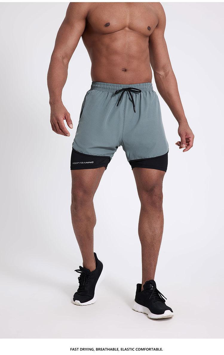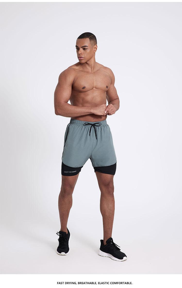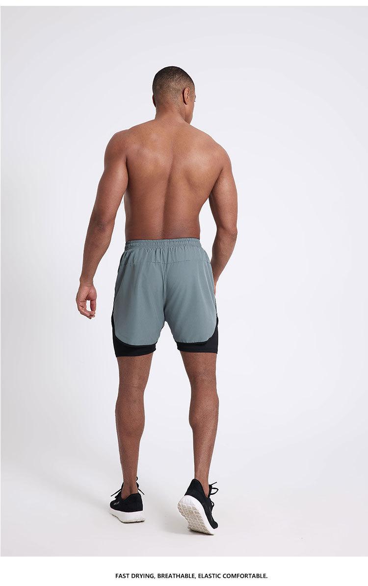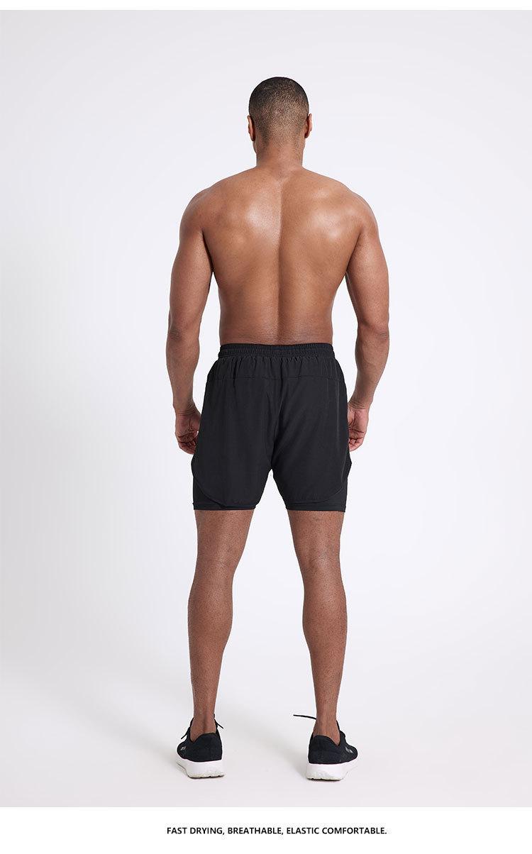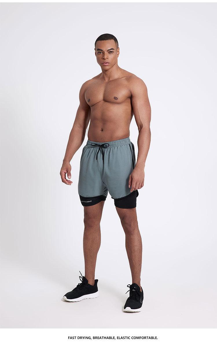 Pantalones cortos deportivos de secado rápido para hombre, de secado rápido, con forro triple, para natación y fitness, de verano