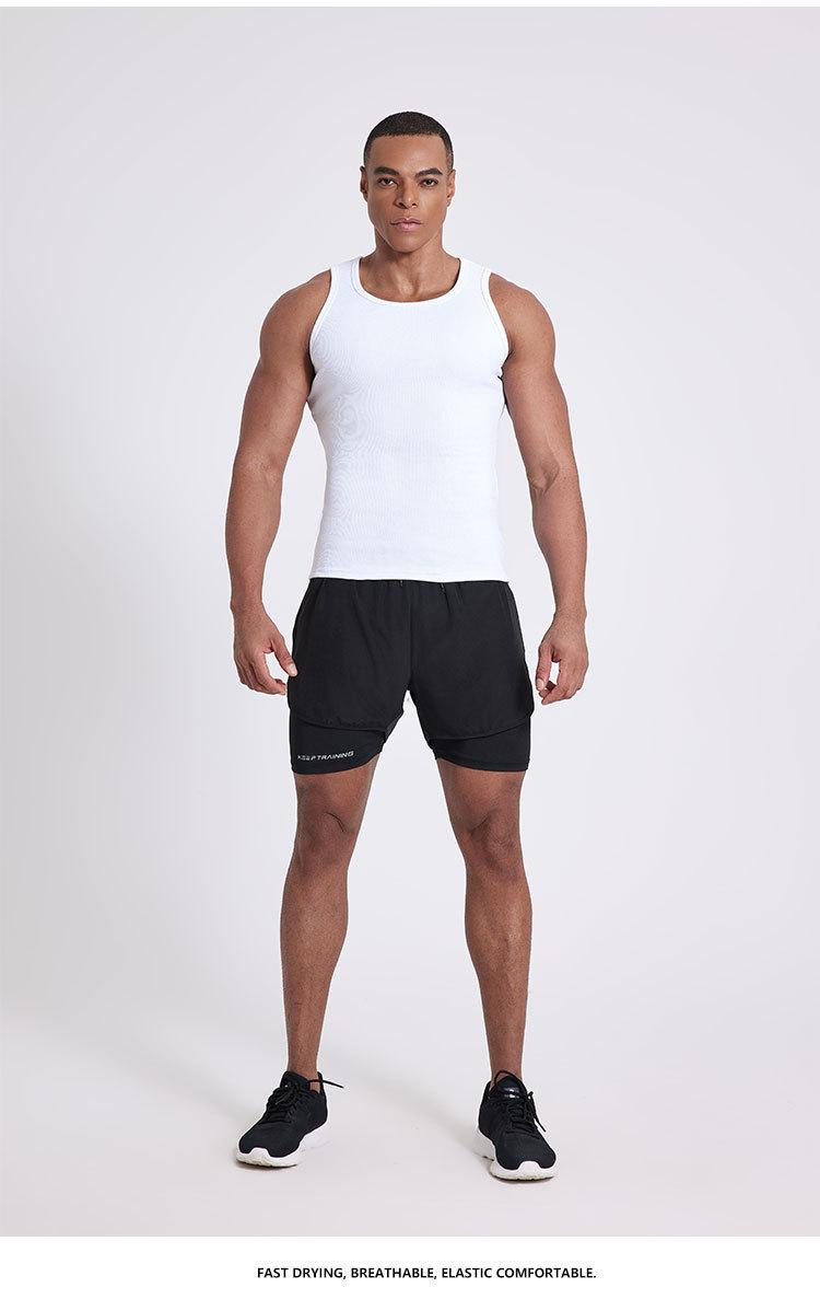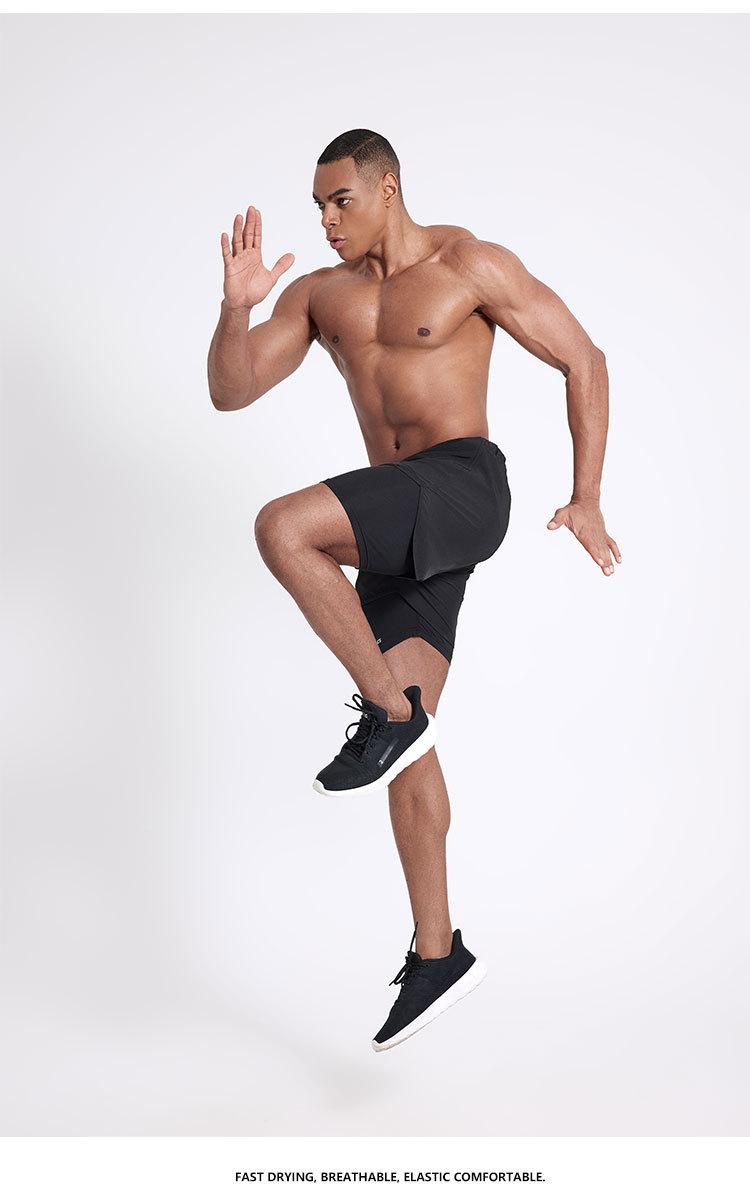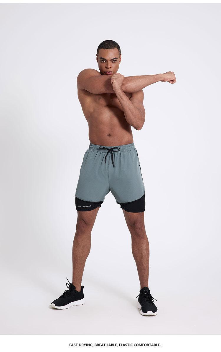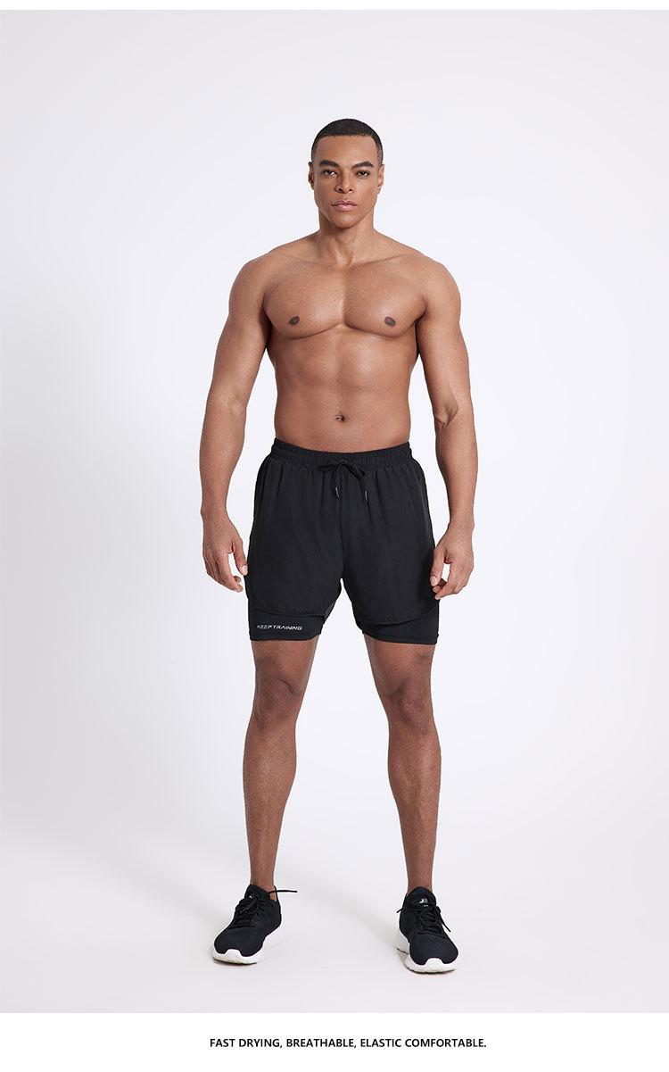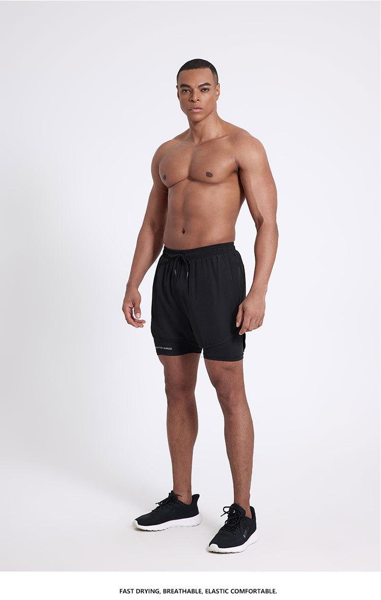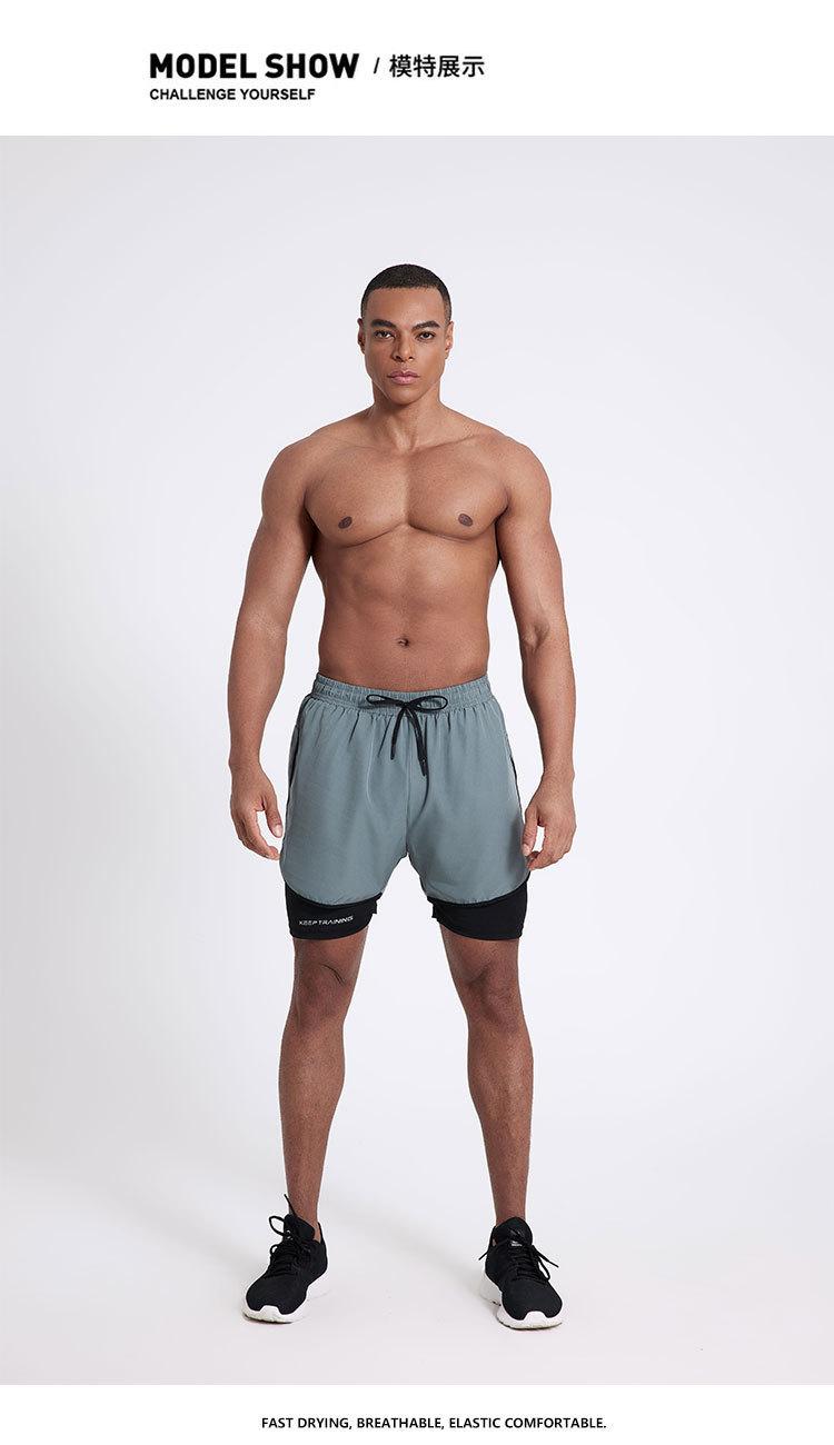 Pantalones cortos deportivos de secado rápido para hombre, de secado rápido, con forro triple, para natación y fitness, de verano