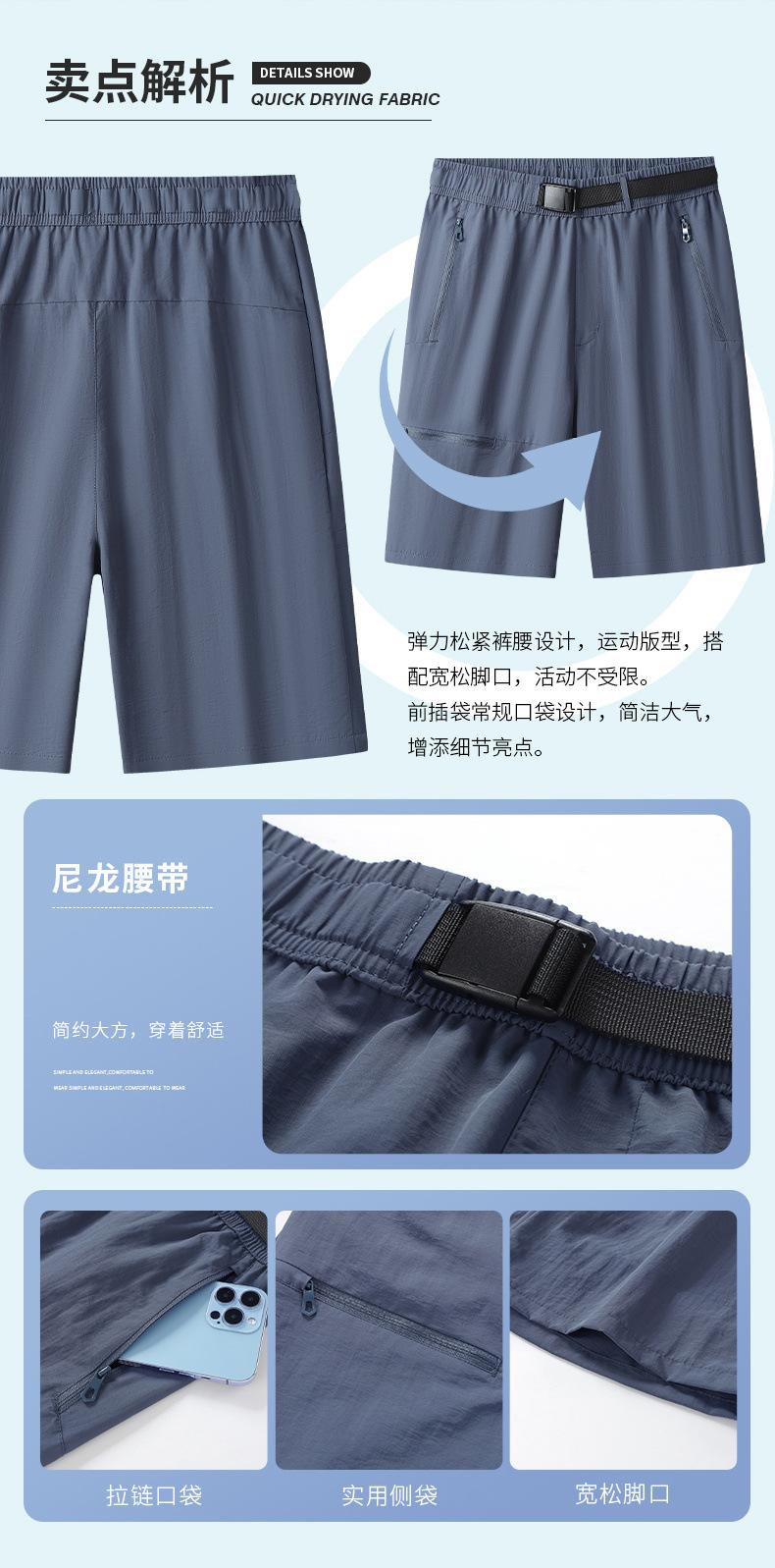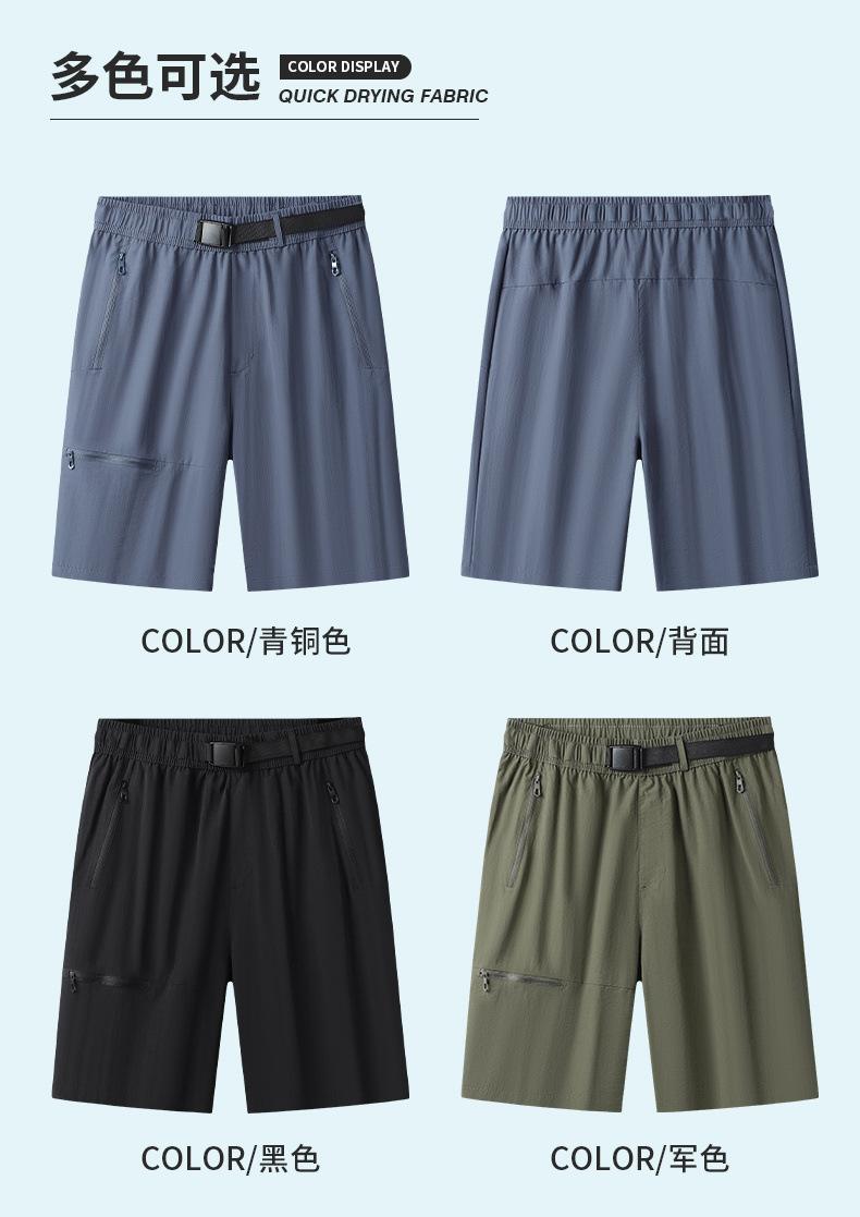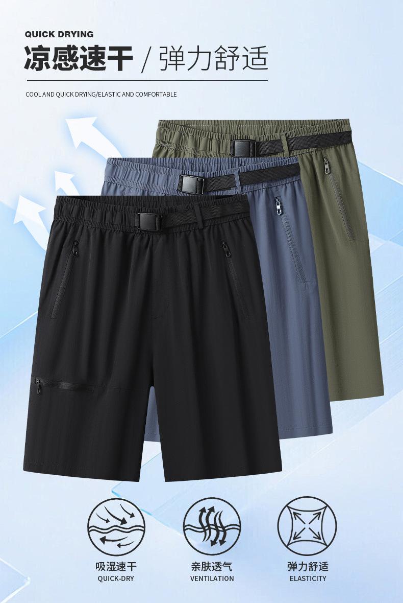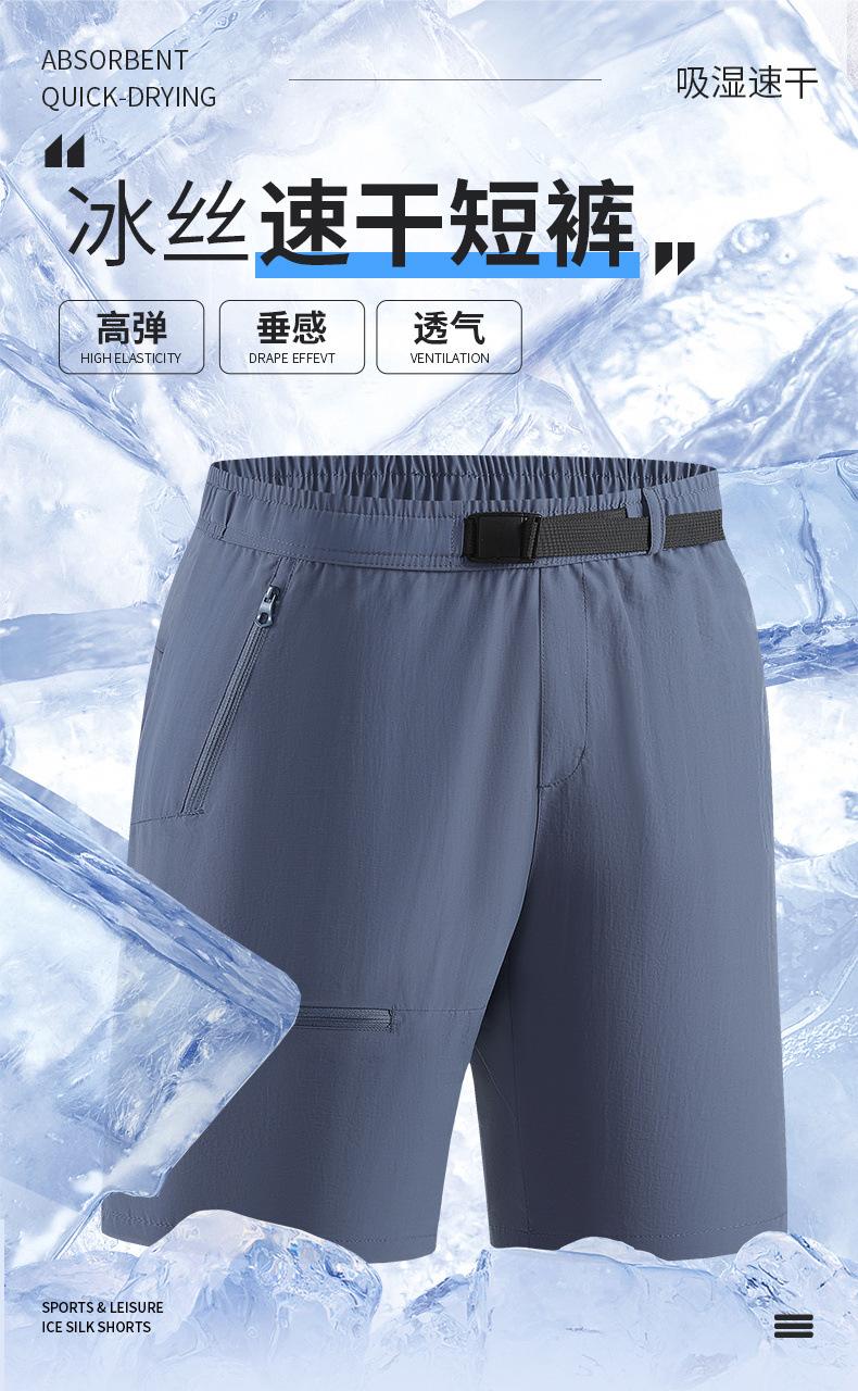Pantalones cortos de verano para hombre, nuevos pantalones de seda helada con múltiples bolsillos y cremallera, pantalones deportivos casuales de playa finos para hombre