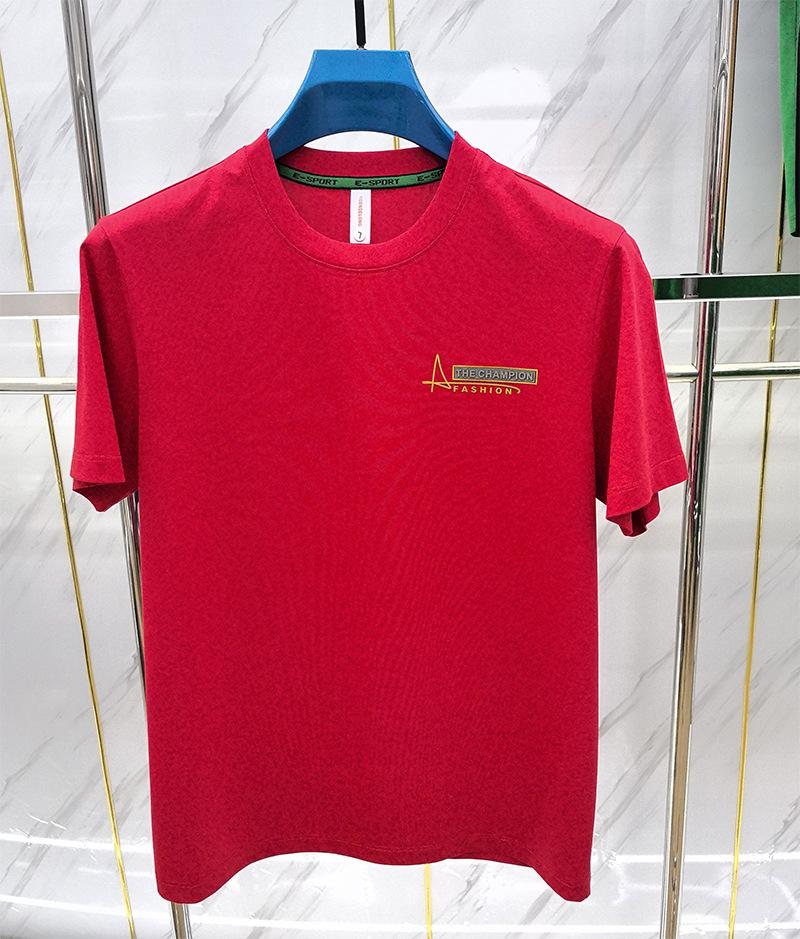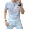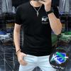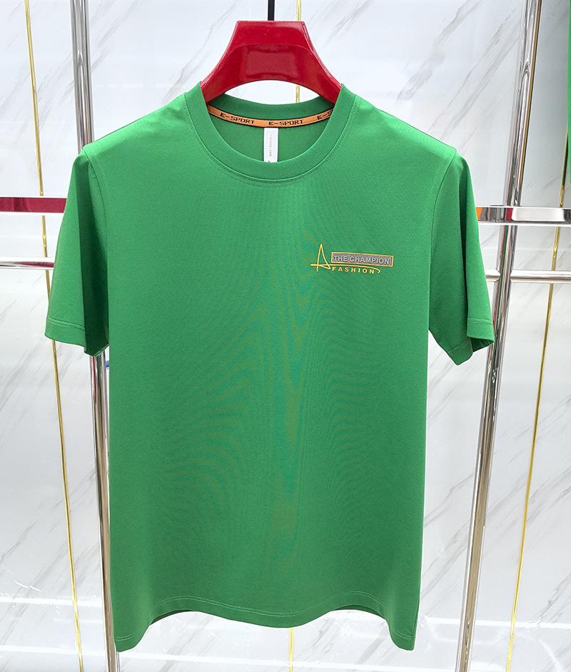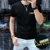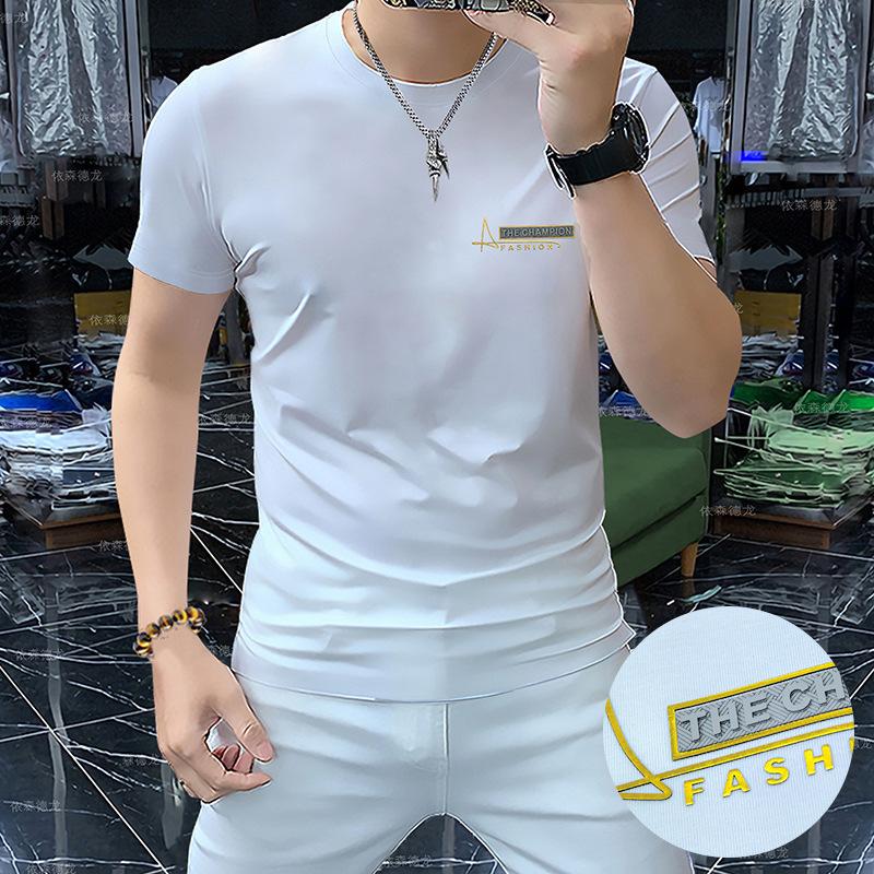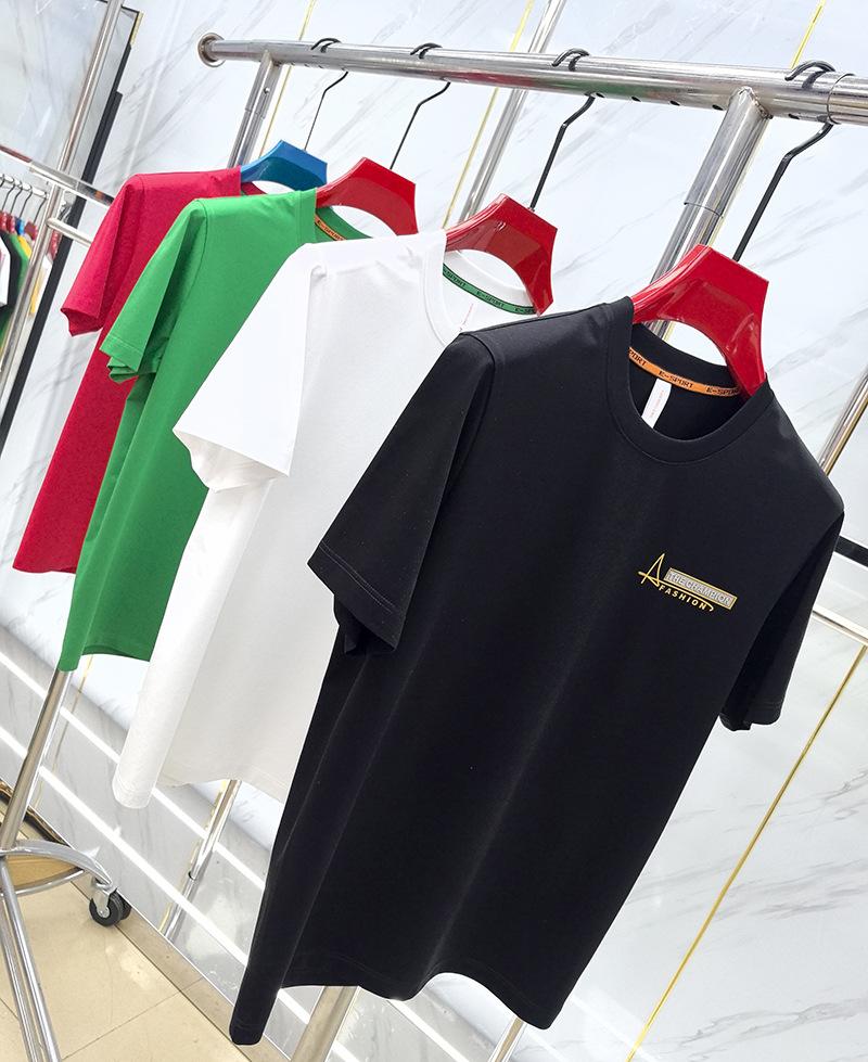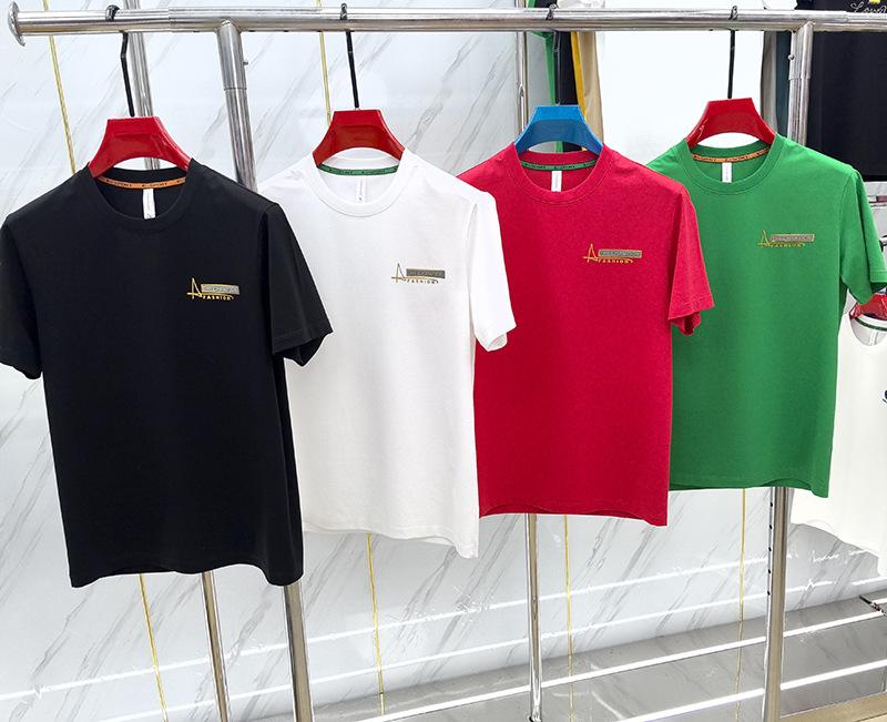 Camiseta de moda ajustada para hombre de algodón mercerizado cuello redondo manga corta primavera y verano nueva letra pesada guapo tendencia delgada