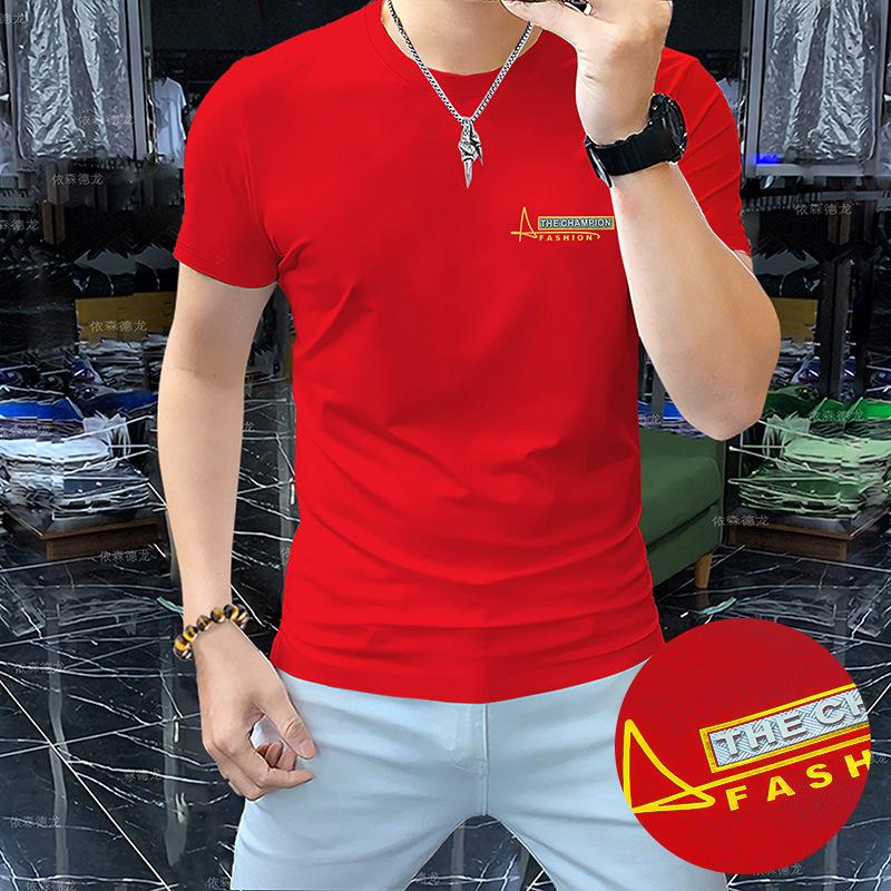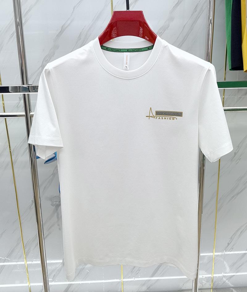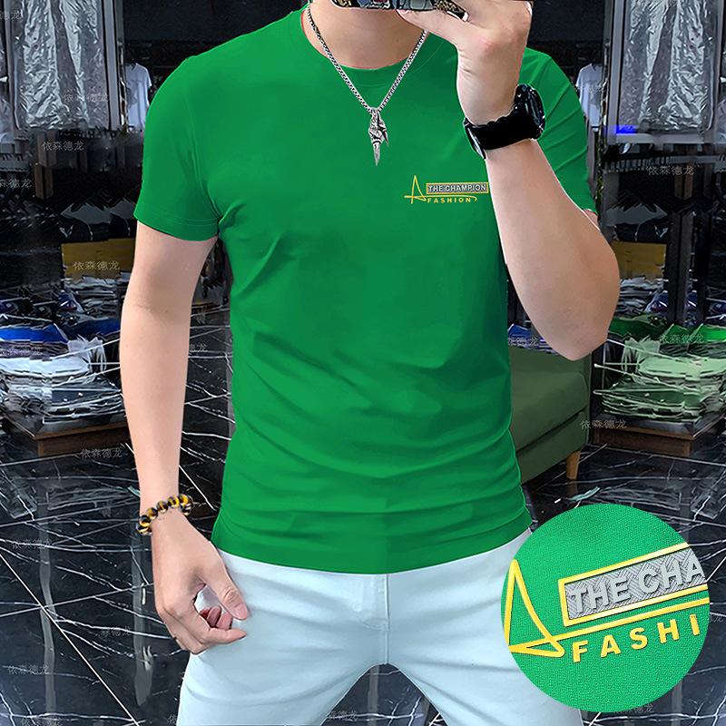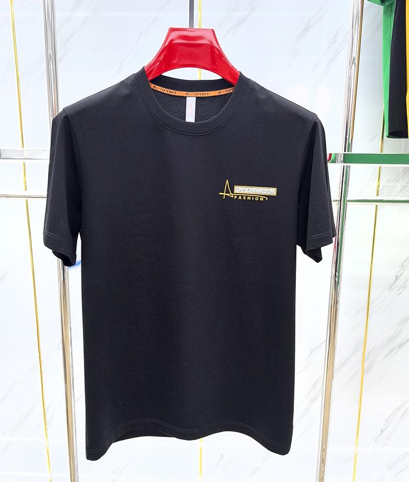 Camiseta de moda ajustada para hombre de algodón mercerizado cuello redondo manga corta primavera y verano nueva letra pesada guapo tendencia delgada