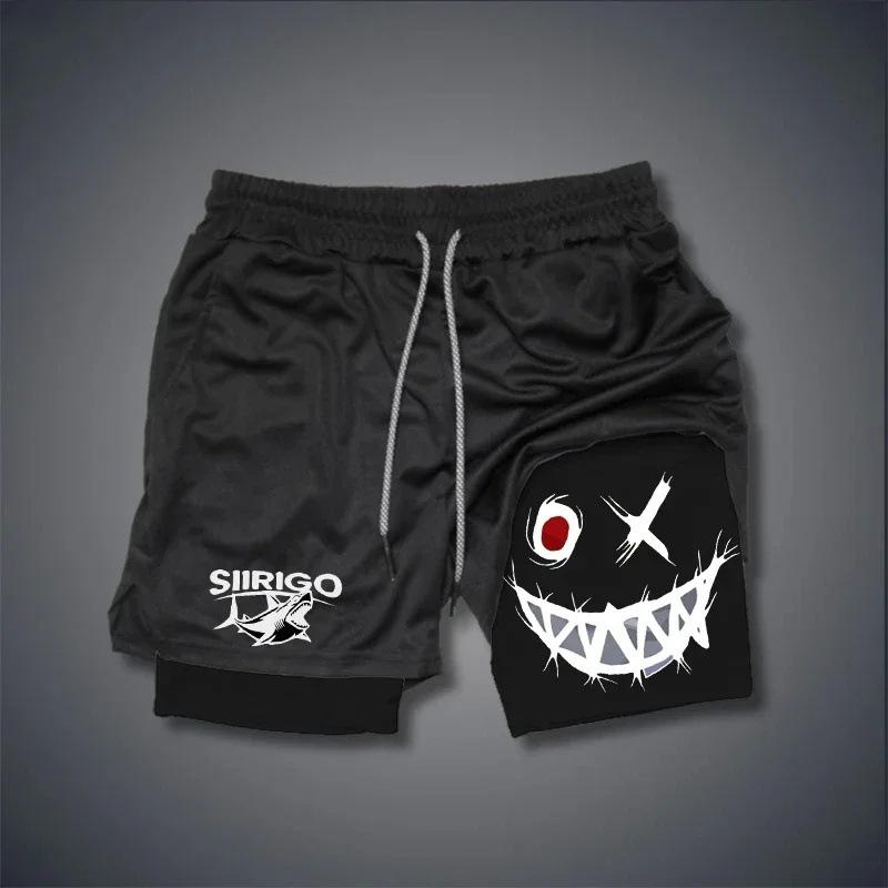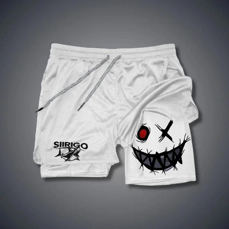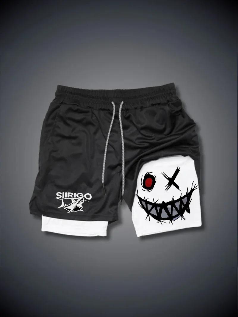 Pantalones cortos de verano para hombre con estampado de carita sonriente, de doble capa, para fitness, vacaciones, casual, playa, casual, modernos