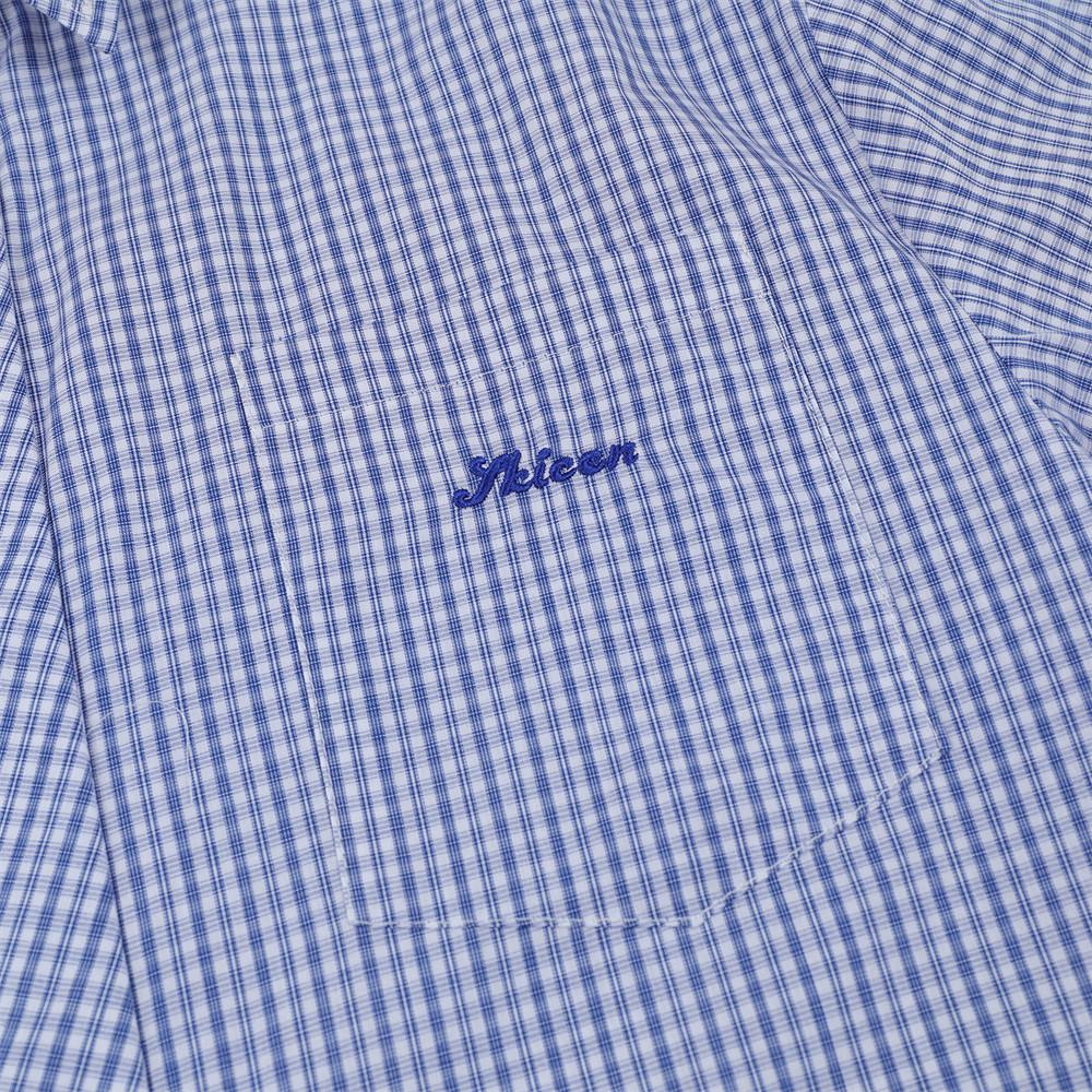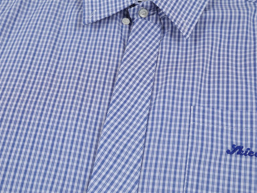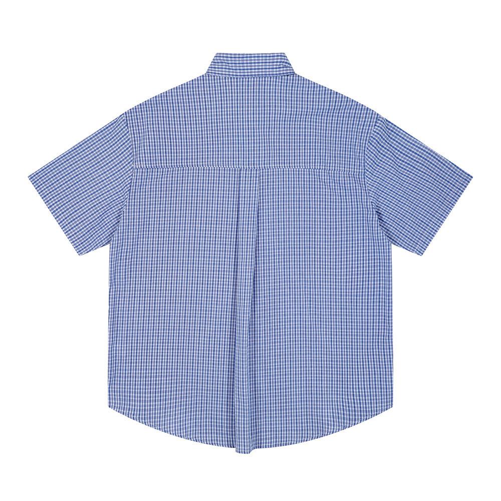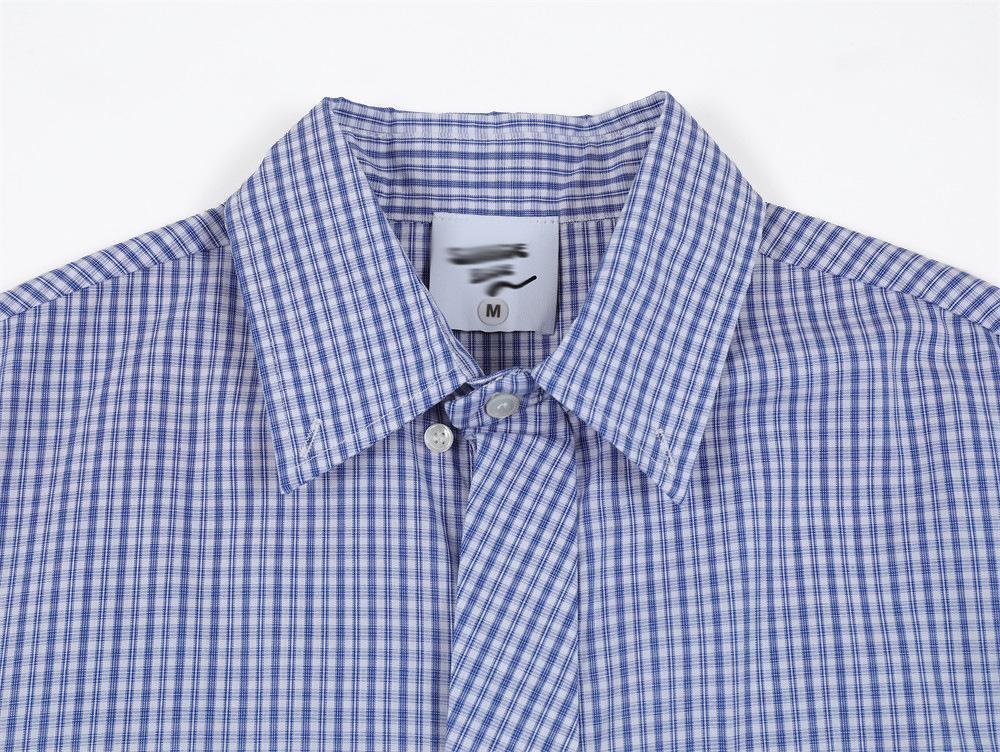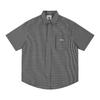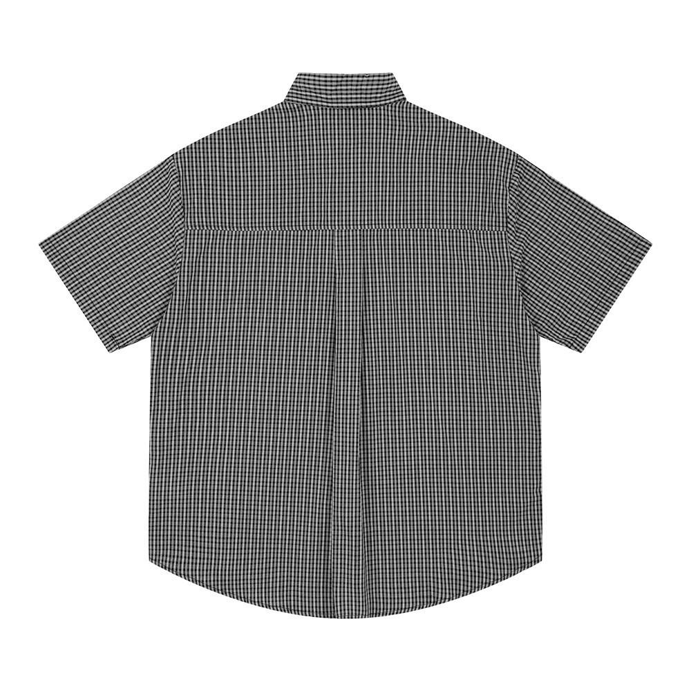 Camisa de manga corta con lazo decorativo a cuadros finos para hombre, estilo retro de verano, holgada, informal, de media manga, con solapa, a la moda