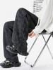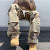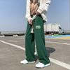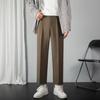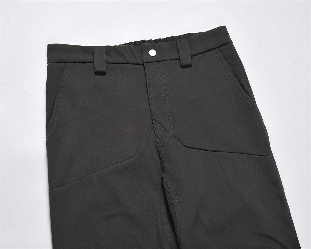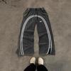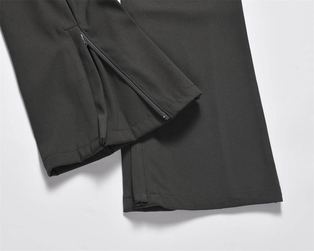 Pantalones casuales de color sólido de estilo americano de moda callejera para hombre, diseño plisado hasta la rodilla, pantalones holgados de pierna ancha, pantalones acampanados con cremallera en el pie