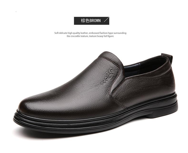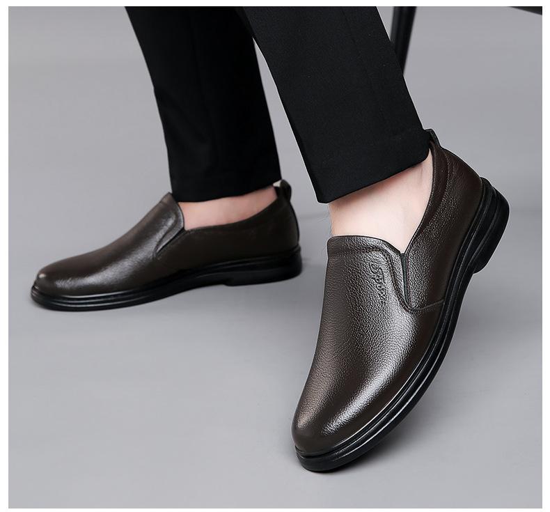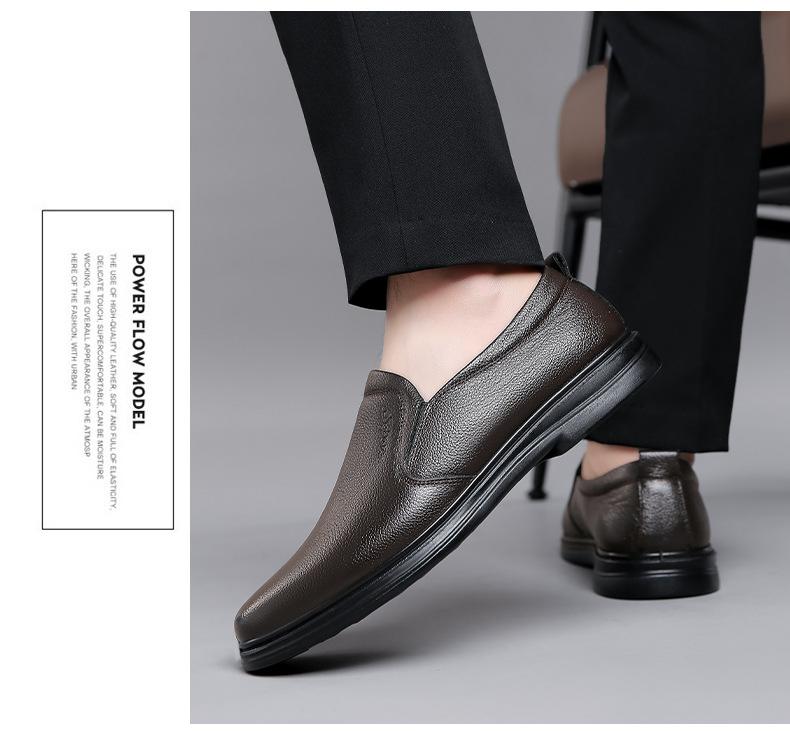 Zapatos de cuero nuevos para hombre, zapatos casuales de cuero, zapatos sin cordones, suela suave y transpirable, resistentes al desgaste, zapatos para papá de mediana edad y mayor.