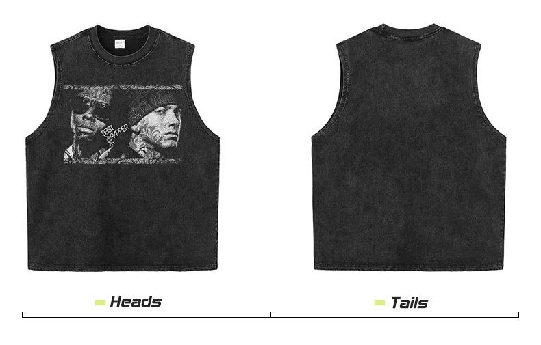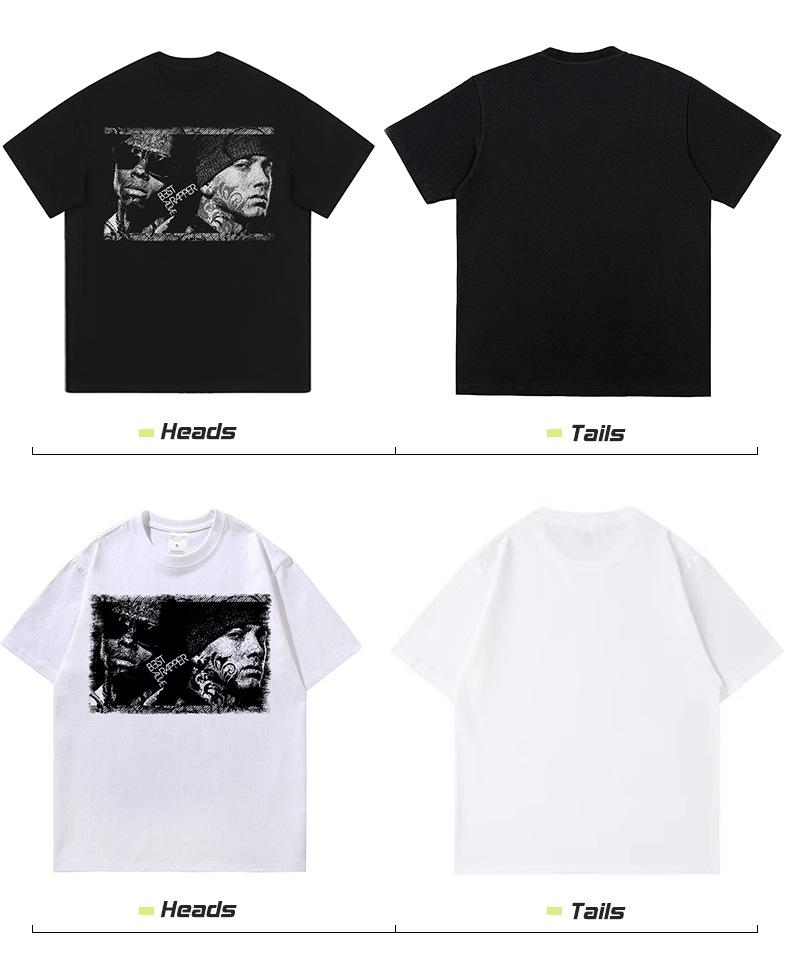 Camiseta de hip-hop de marca europea y americana para hombre y joven, de algodón puro, holgada, de manga corta y con estampado vintage de hip-hop para mujer.