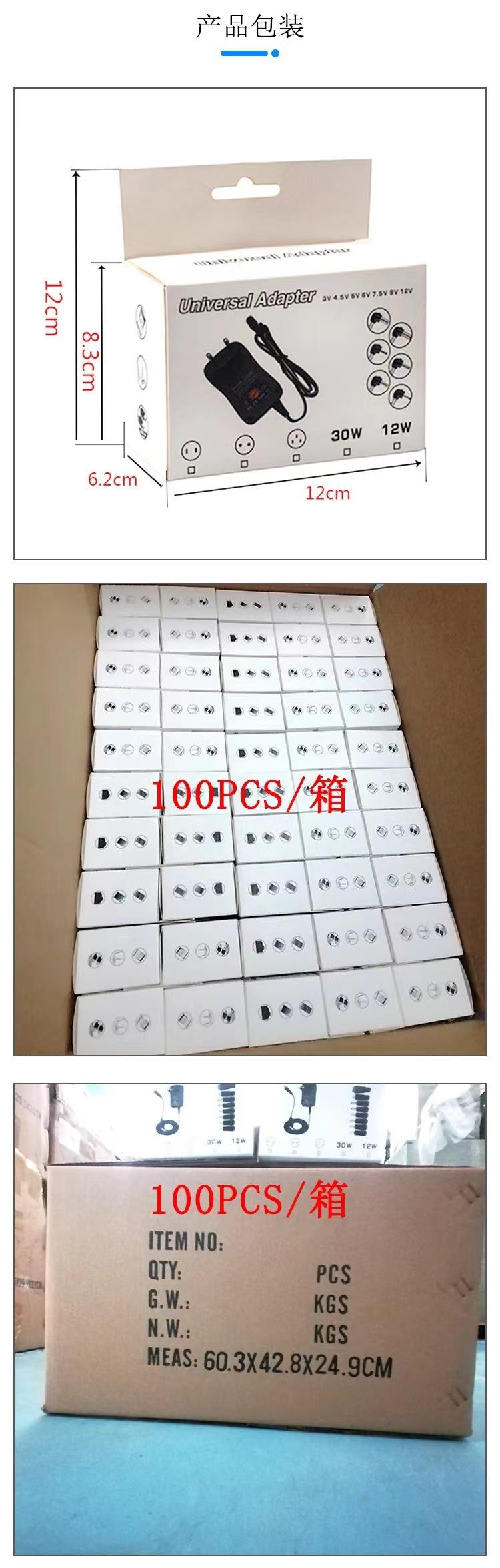 Adaptador de corriente multifuncional transfronterizo de 30 W, fuente de alimentación de voltaje ajustable de 3 a 12 V, 6 cabezales, compatible con carga USB.