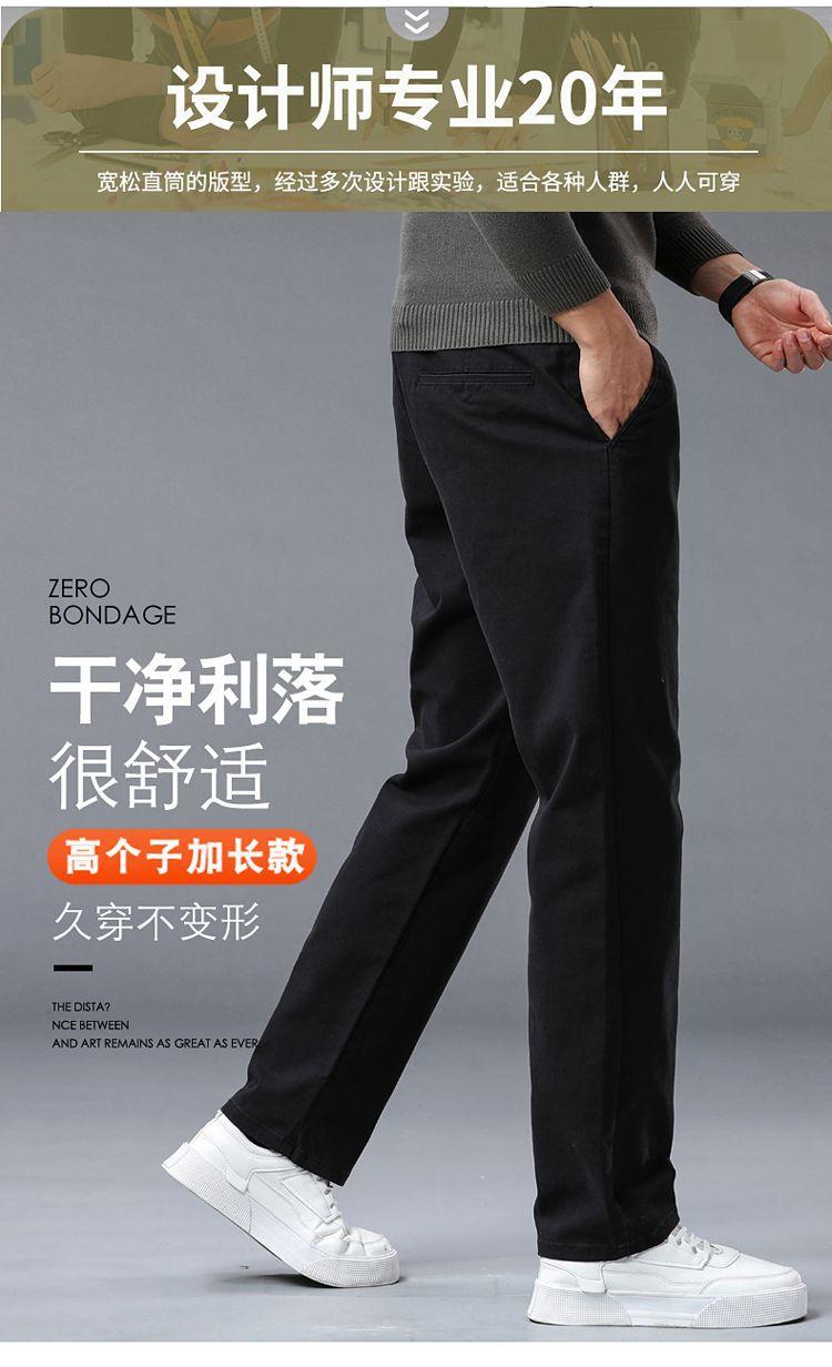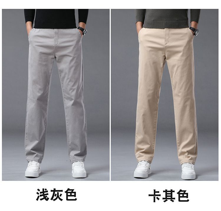 [Versión extendida] Pantalones casuales de algodón elástico para hombre, corte recto, ligeros, de moda de negocios, holgados, casuales, para hombre