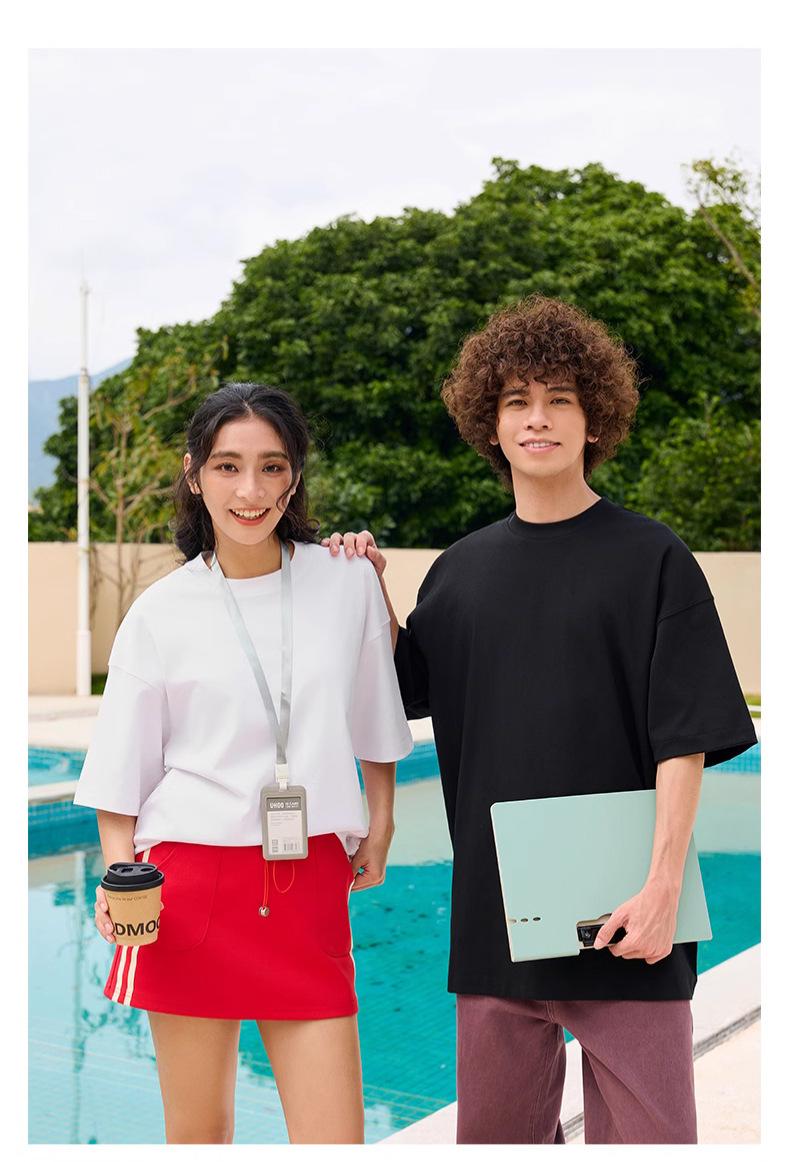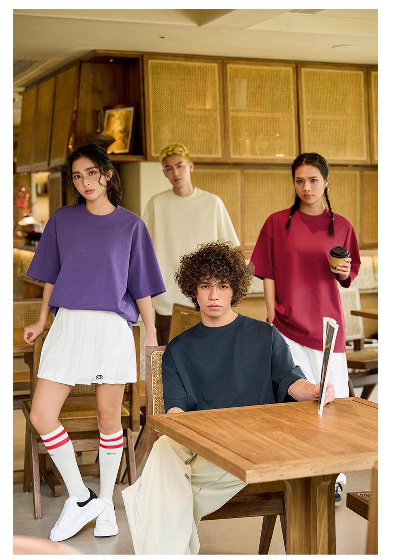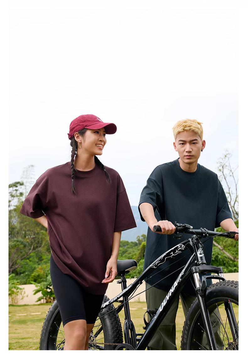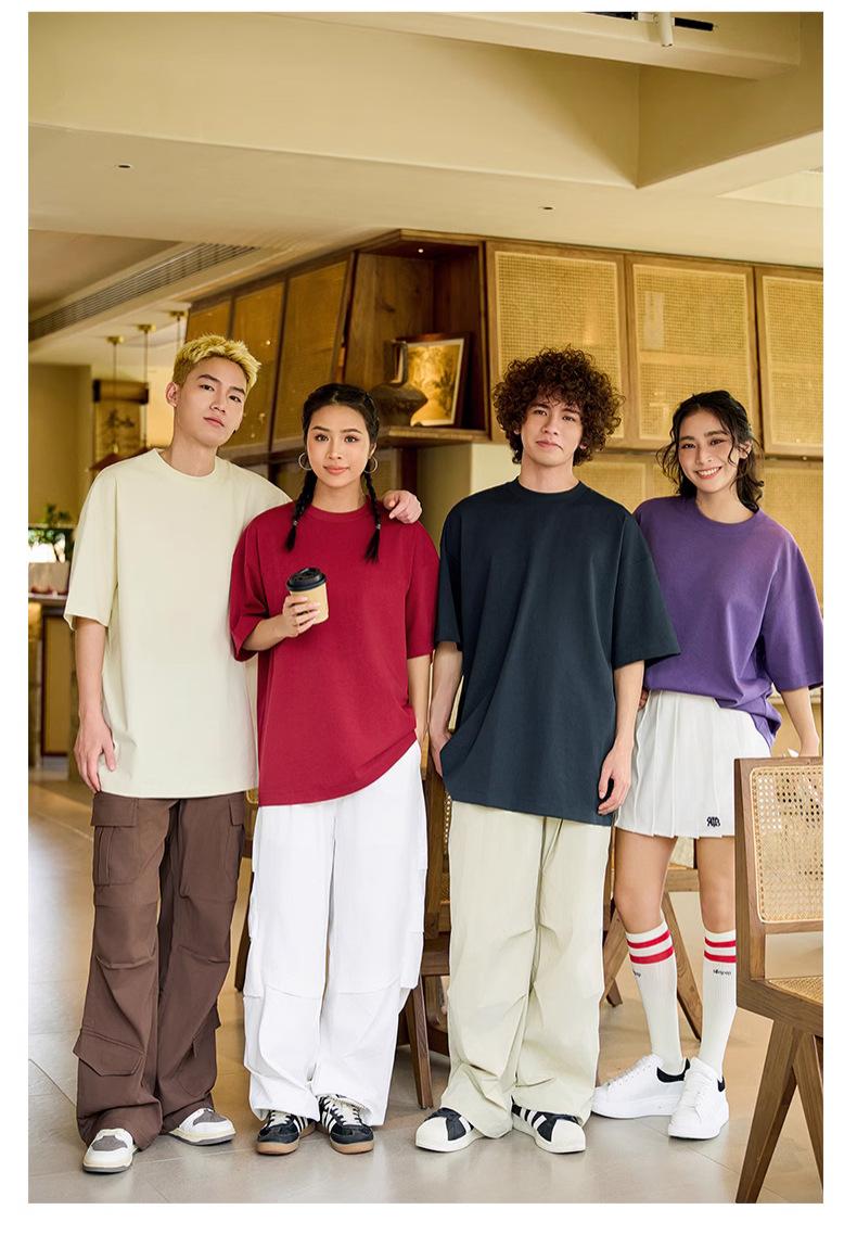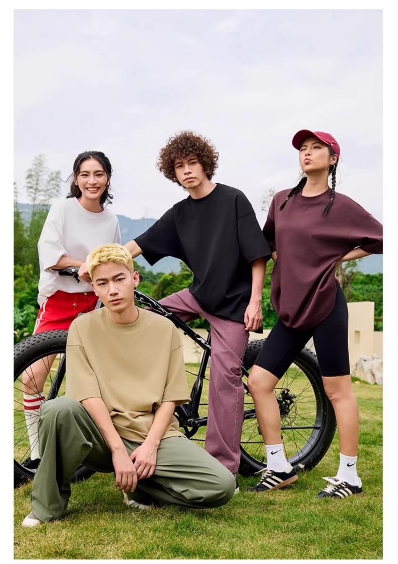 Camiseta holgada de media manga con hombros descubiertos de 240 g, ropa de trabajo de marca de moda, camiseta de manga corta con logotipo personalizado