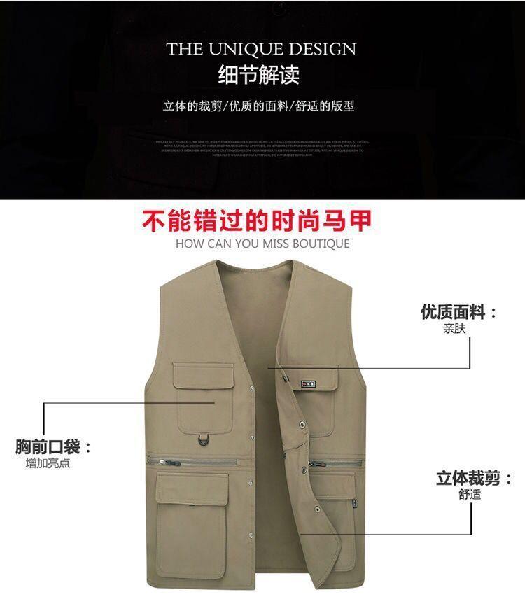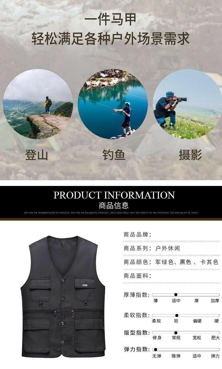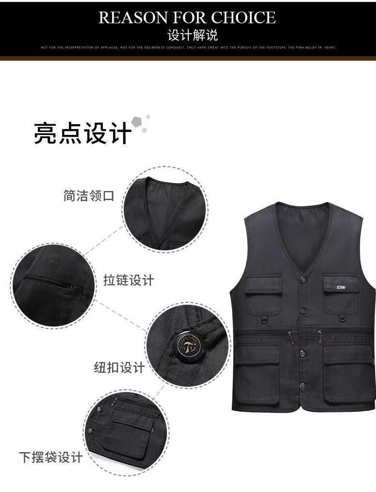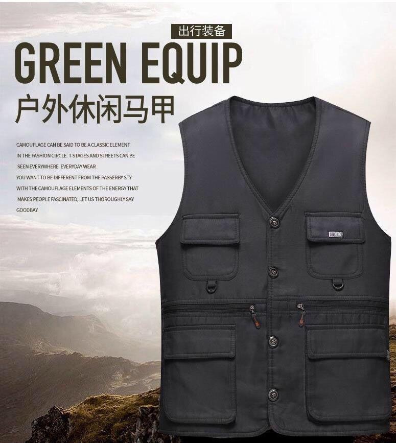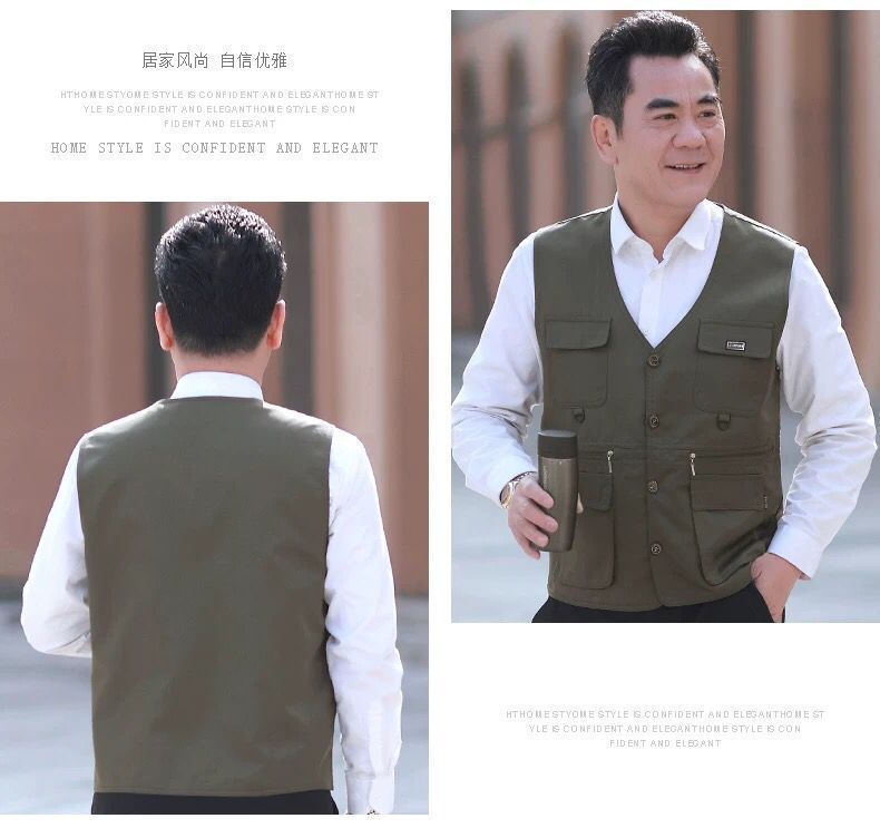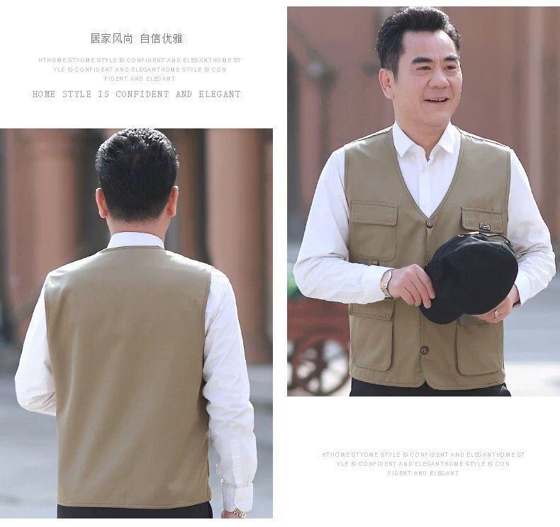 Chaleco de una pieza para primavera y otoño, para exteriores, de ocio, con múltiples bolsillos, para personas de mediana edad y mayores, para fotografía de viajes, chaleco de pesca para hombre, nuevo