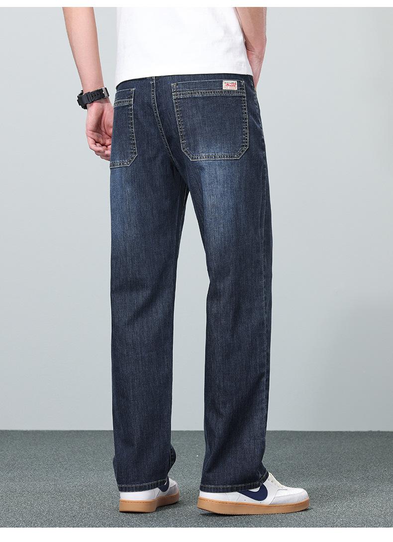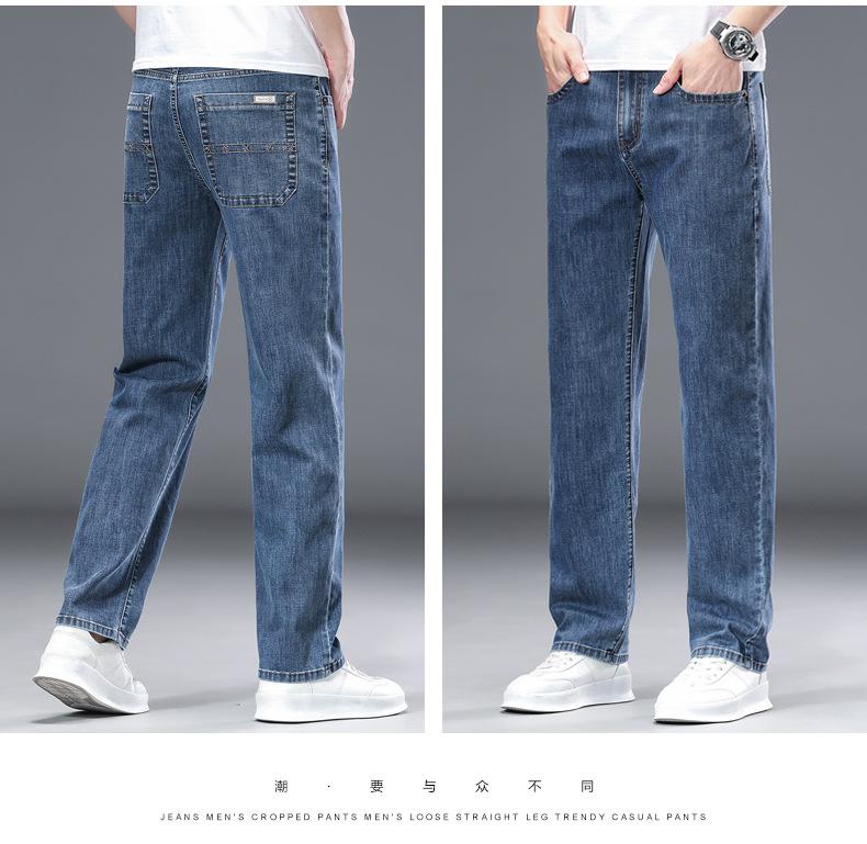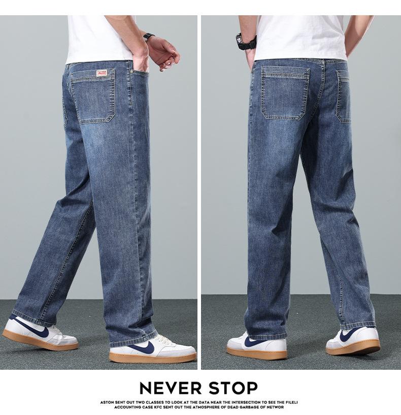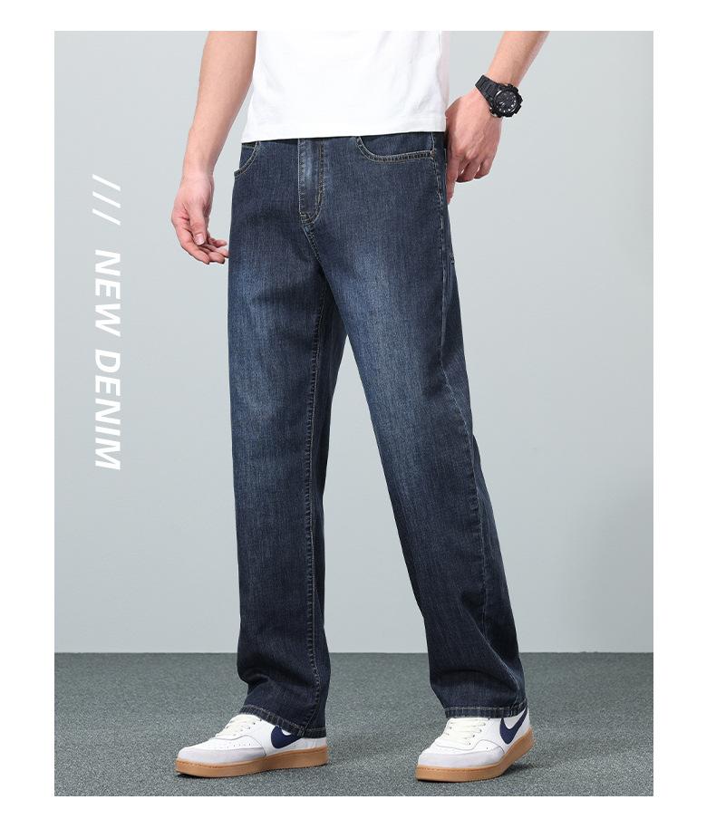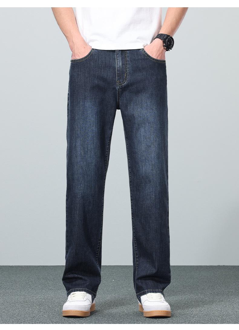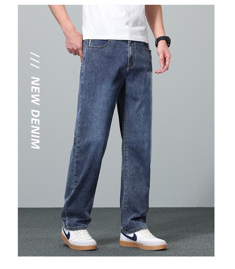 Verano Nuevos Jeans para Hombre Cintura Alta Sueltos Rectos Elásticos Casual de Negocios Ligeros Transpirables Talla Extra Pantalones para Hombre