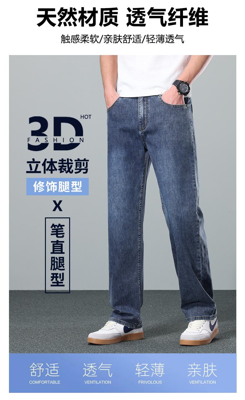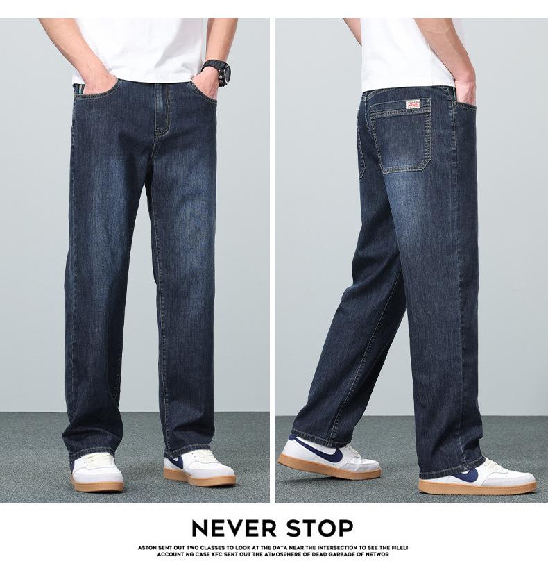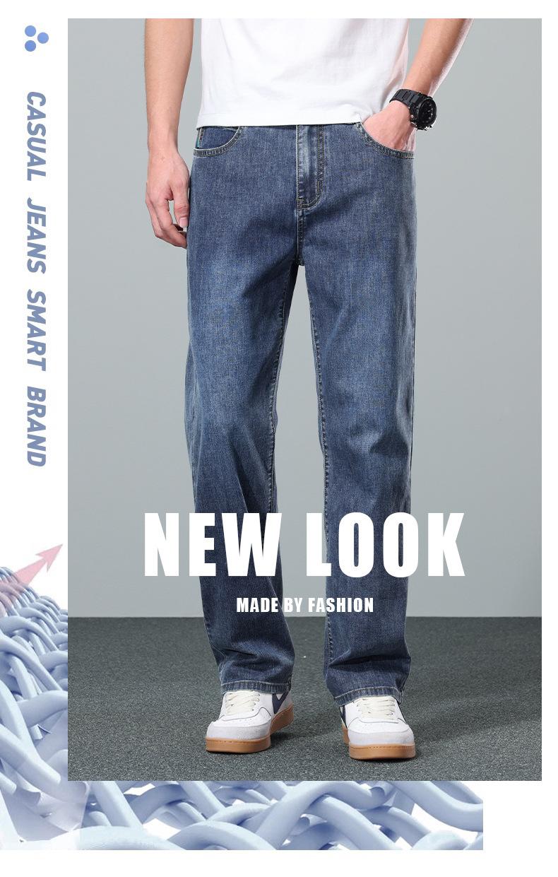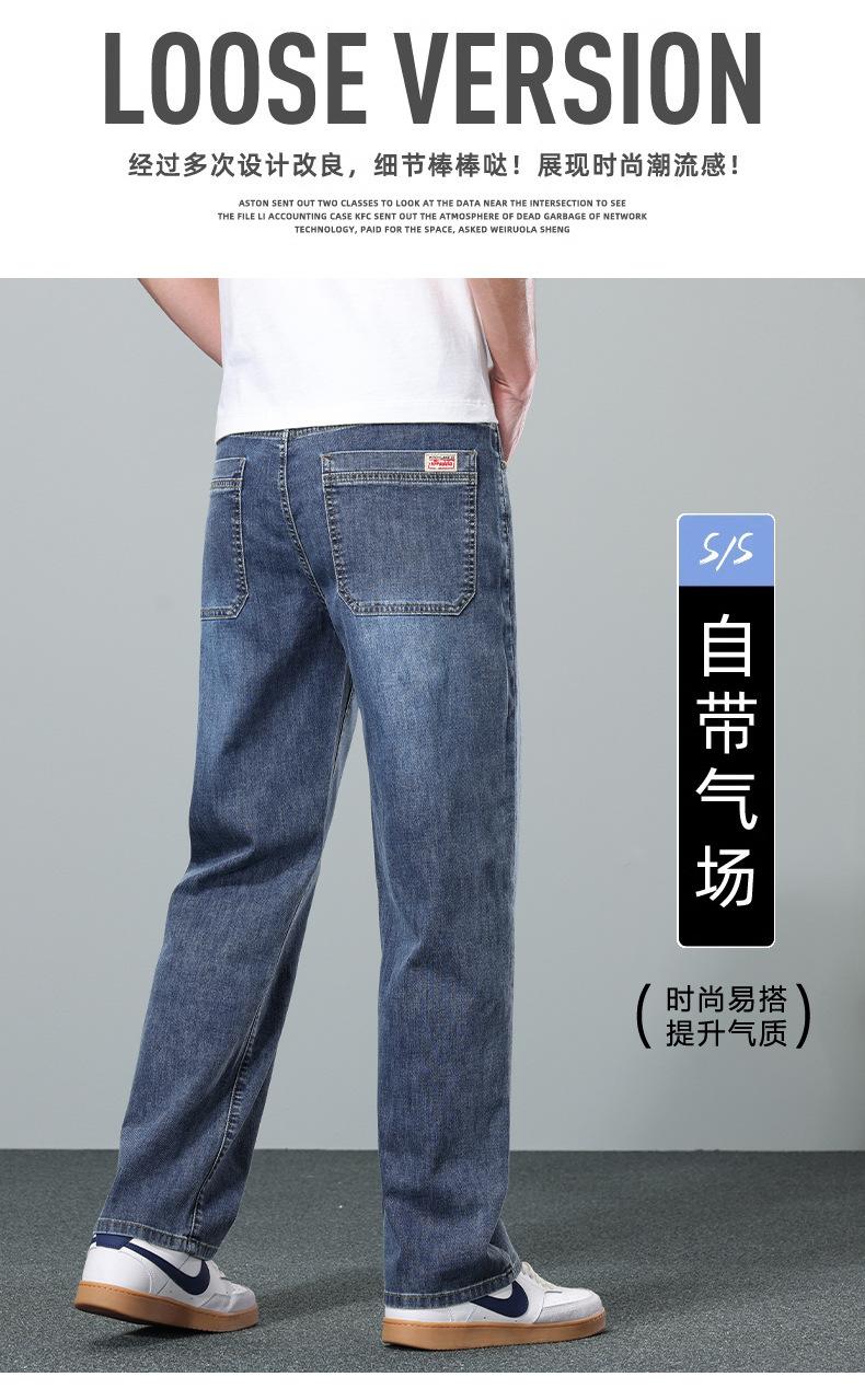 Verano Nuevos Jeans para Hombre Cintura Alta Sueltos Rectos Elásticos Casual de Negocios Ligeros Transpirables Talla Extra Pantalones para Hombre
