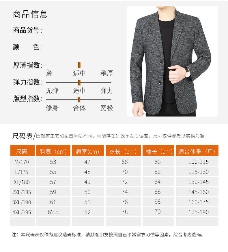 Nuevo Traje de Alta Gama para Hombres de Mediana Edad de Primavera y Otoño Chaqueta Casual de Negocios Traje de Una Pieza Occidental Papá Primavera y Otoño Top