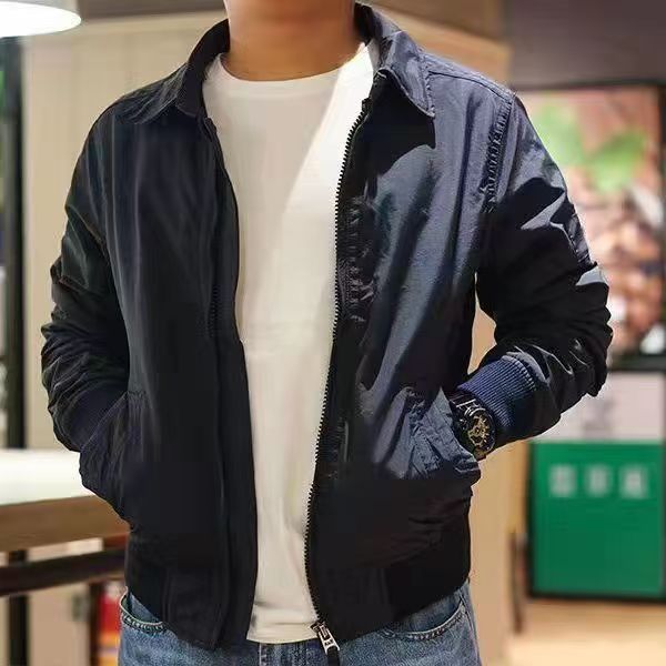 Primavera Nuevo Abrigo Chaqueta Solapa para Hombre Chaqueta Manga Larga Cremallera Abrigo de Alta Gama Negocios Cortavientos