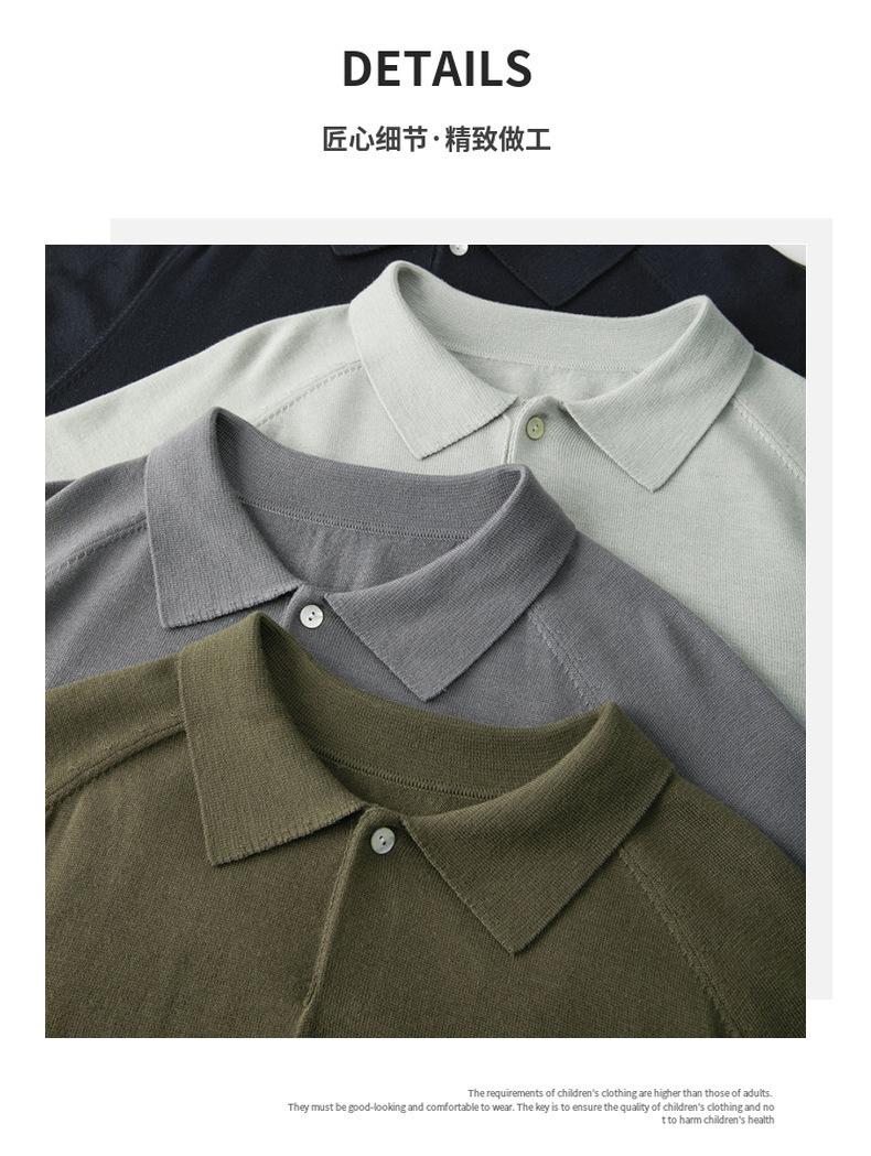 Suéter de solapa de primavera para hombre, informal, combinable con todo, de negocios, ajustado, con cuello tipo polo, camisa básica