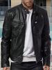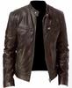 Comercio Exterior Invierno Negocios Caballero Cálido Cárdigan con Cremallera Bolsillo Decorado Ropa de Cuero PU Cuello Vertical Ajustado Chaqueta de Cuero Abrigo