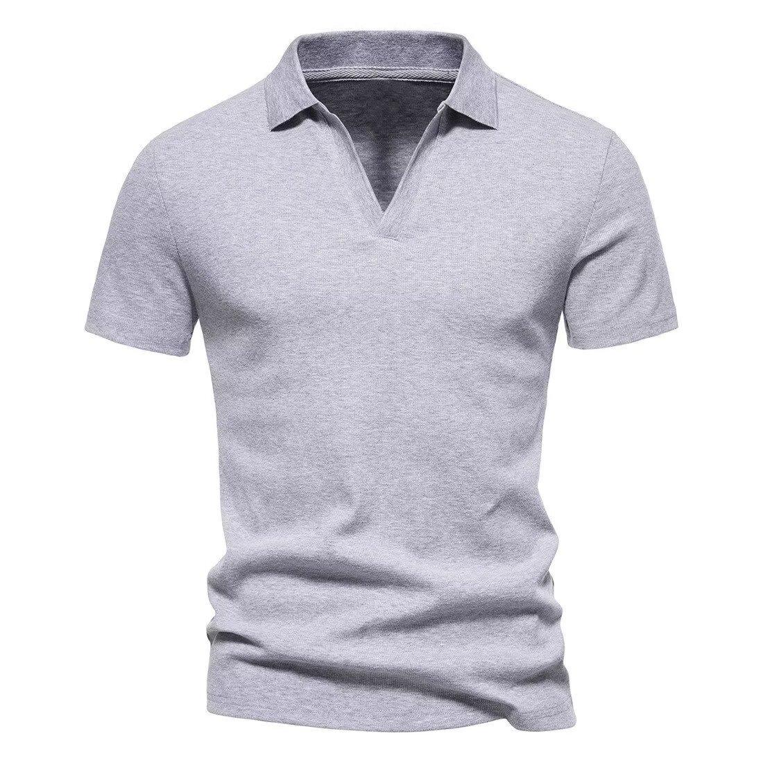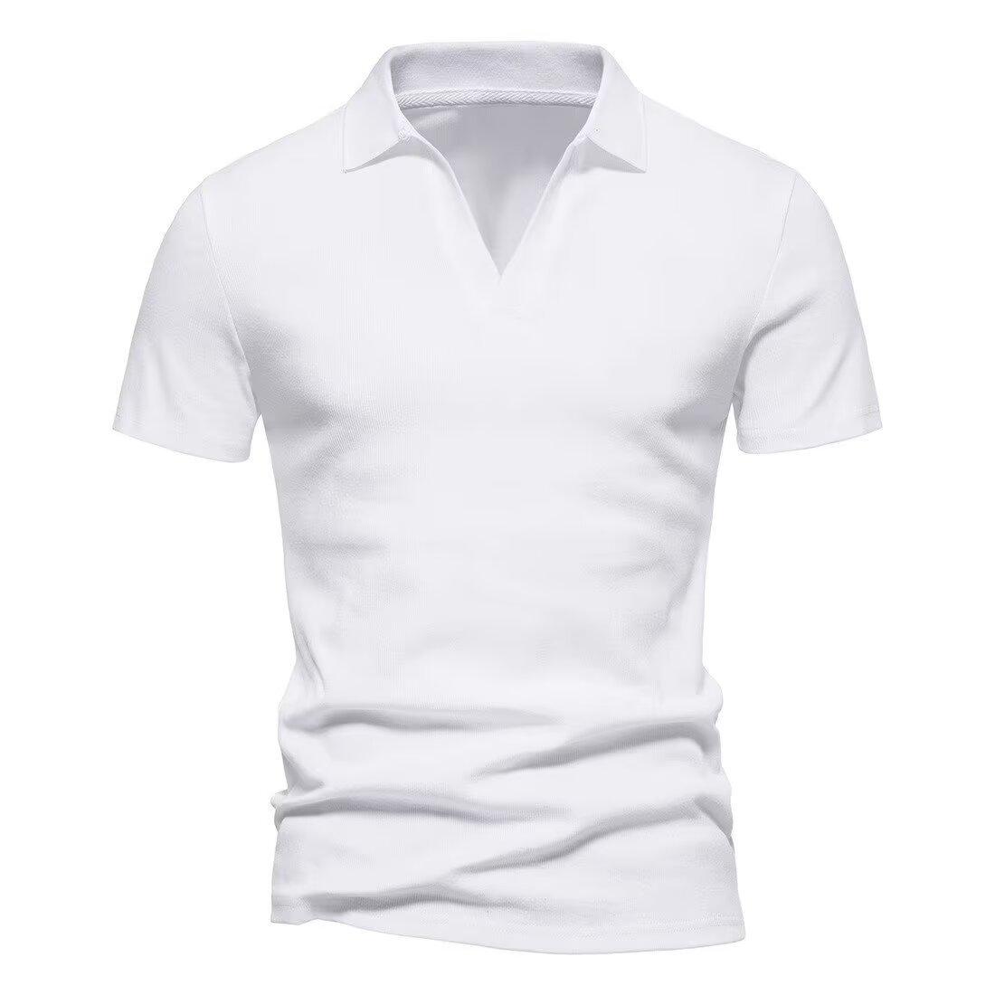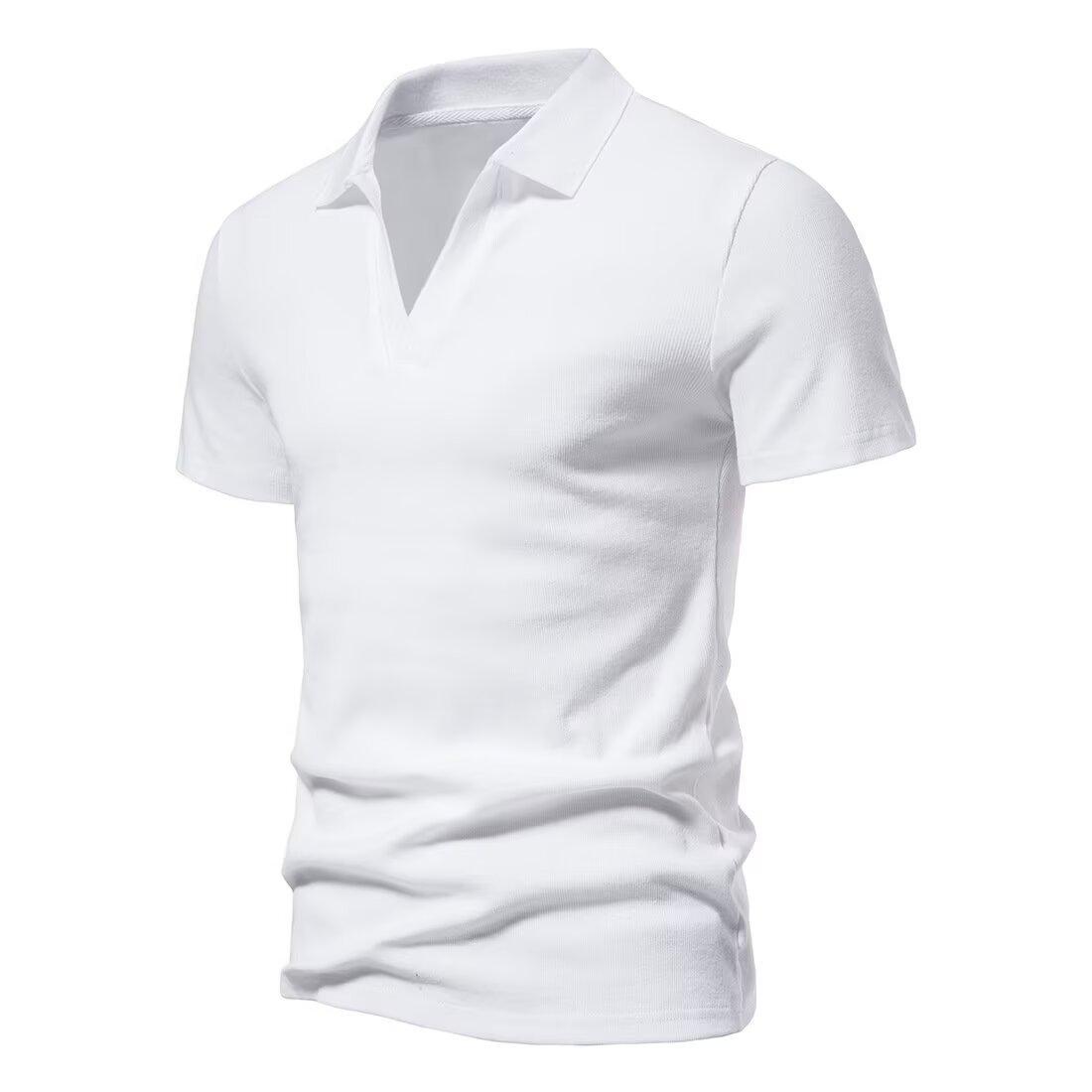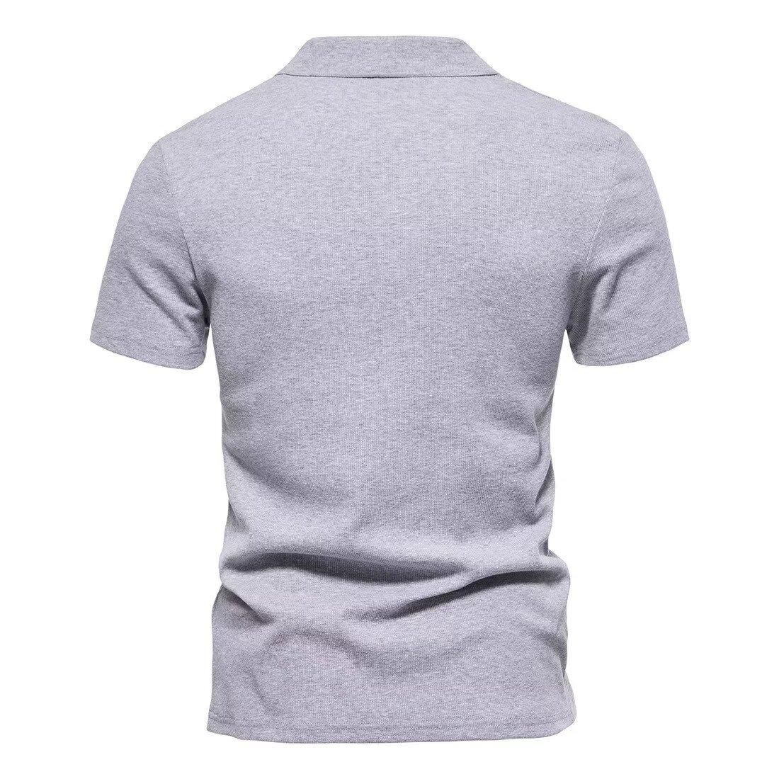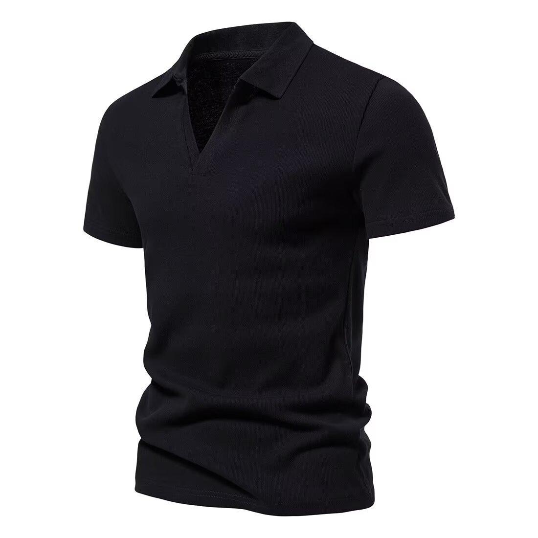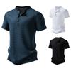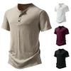2025 Amazon Comercio Exterior Verano Camiseta de Manga Corta de Color Sólido para Hombre Cuello Henley Camiseta de Algodón Retro Estilo Americano para Hombre