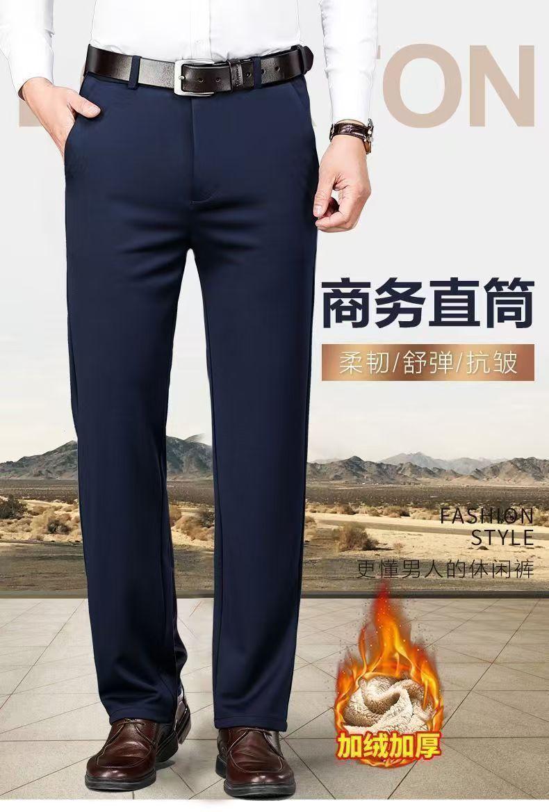 Otoño e Invierno Pantalones Casuales de Cachemira Gruesos con Forro Polar para Hombre Elásticos de Cintura Alta Rectos Sueltos Gruesos