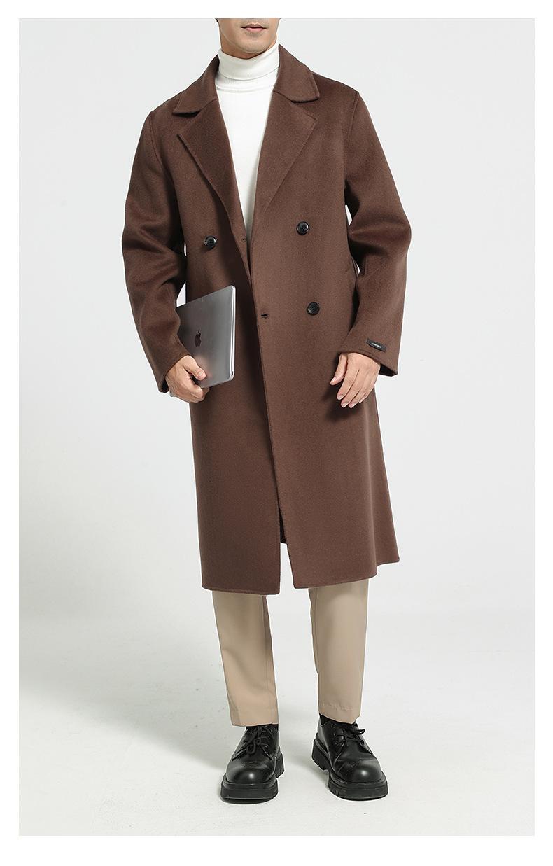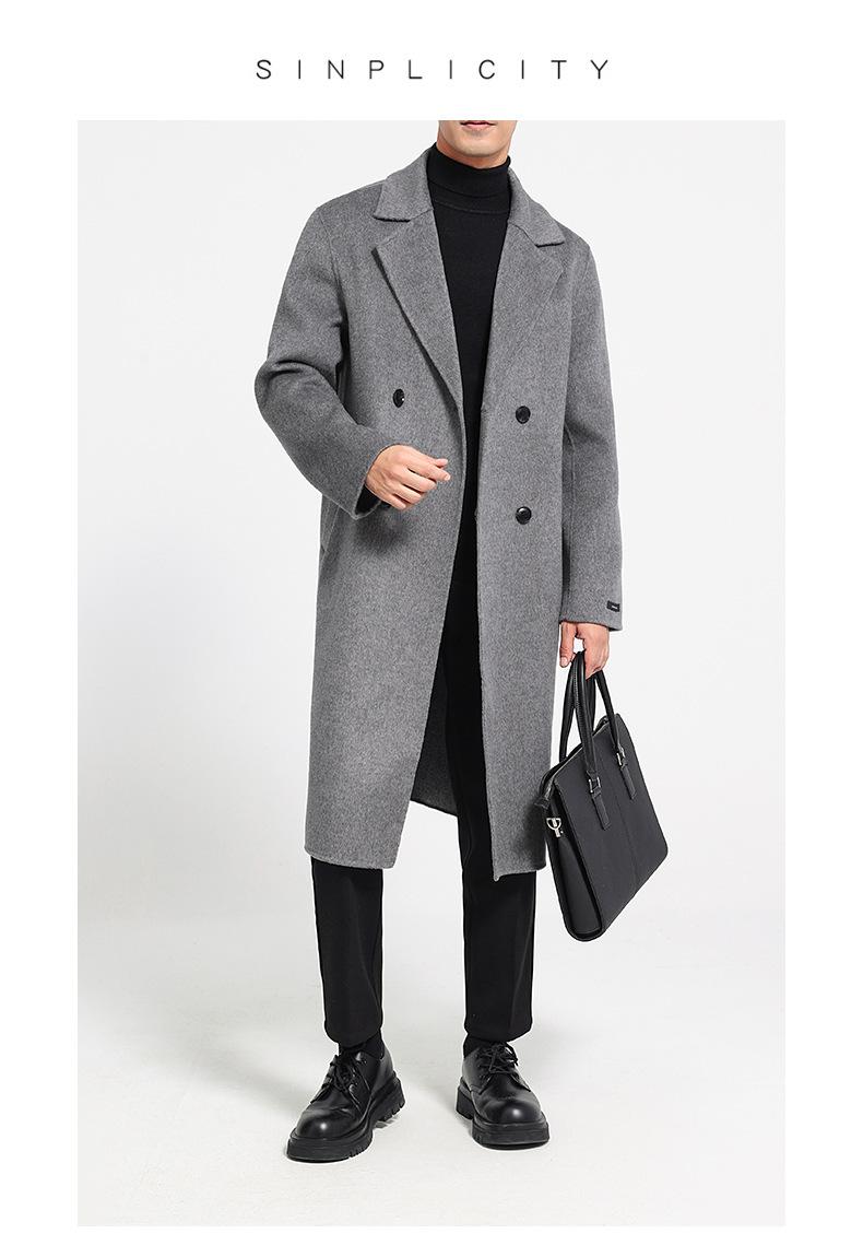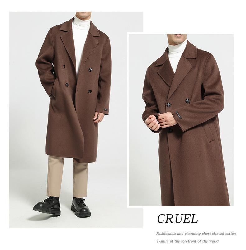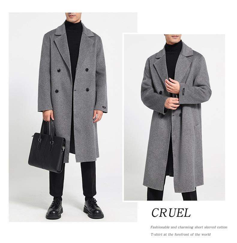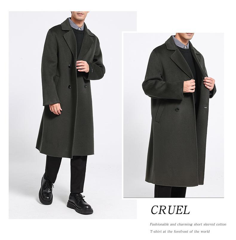 Abrigo largo de lana de doble faz por encima de la rodilla para hombre, otoño e invierno, traje de moda estilo coreano, gabardina de lana suelta