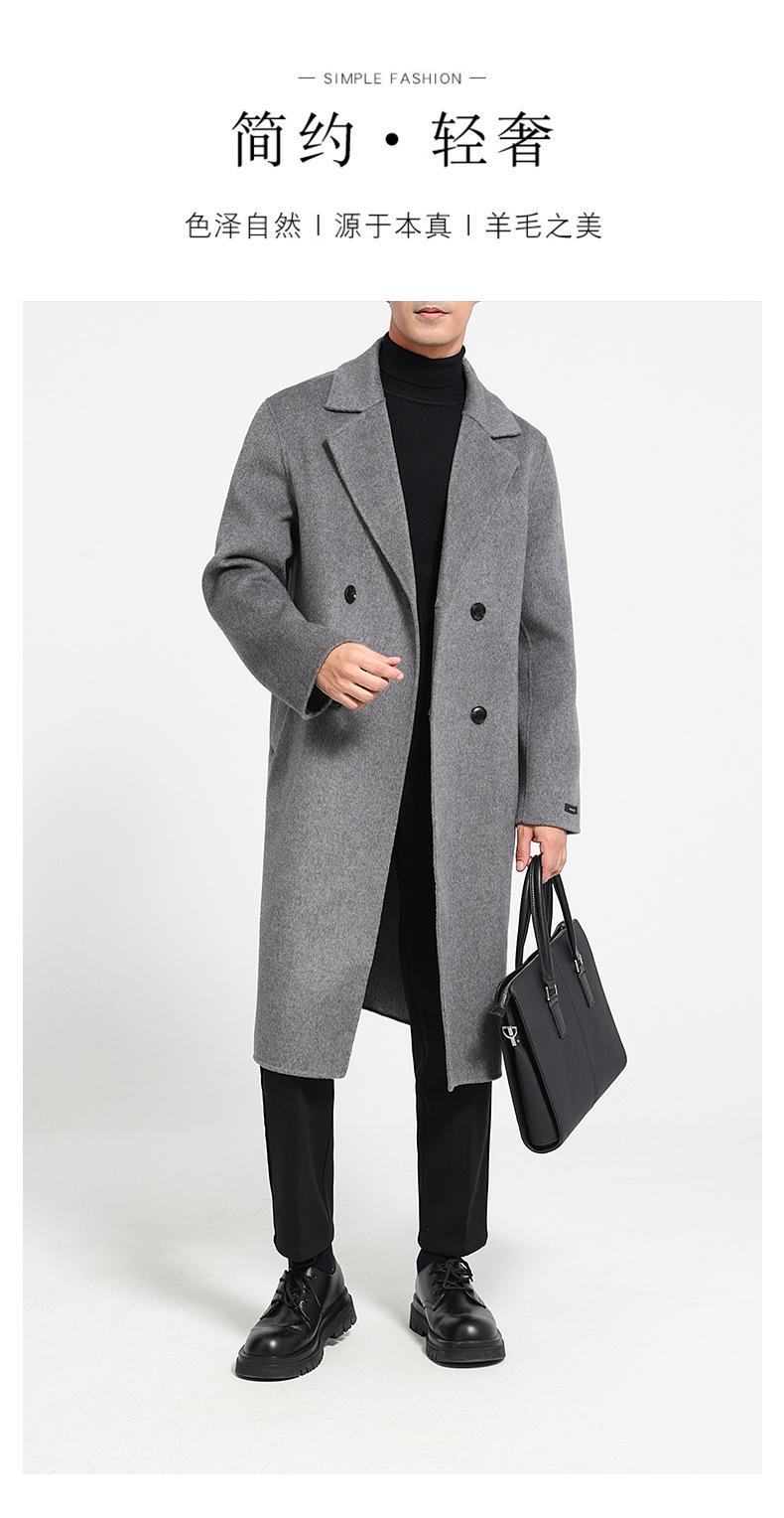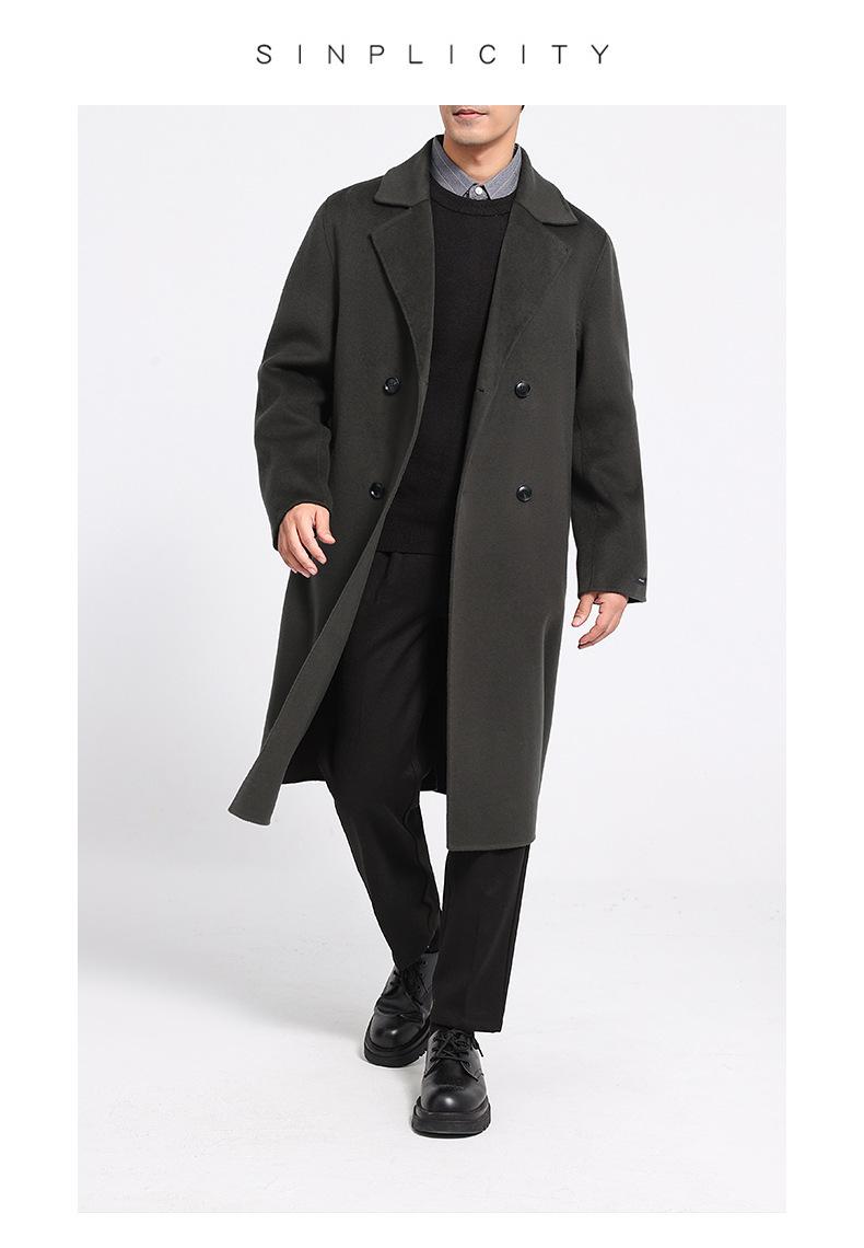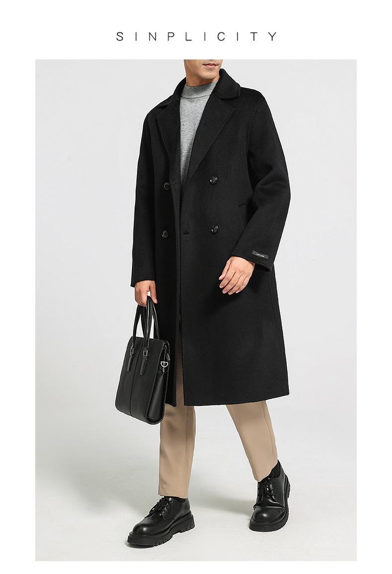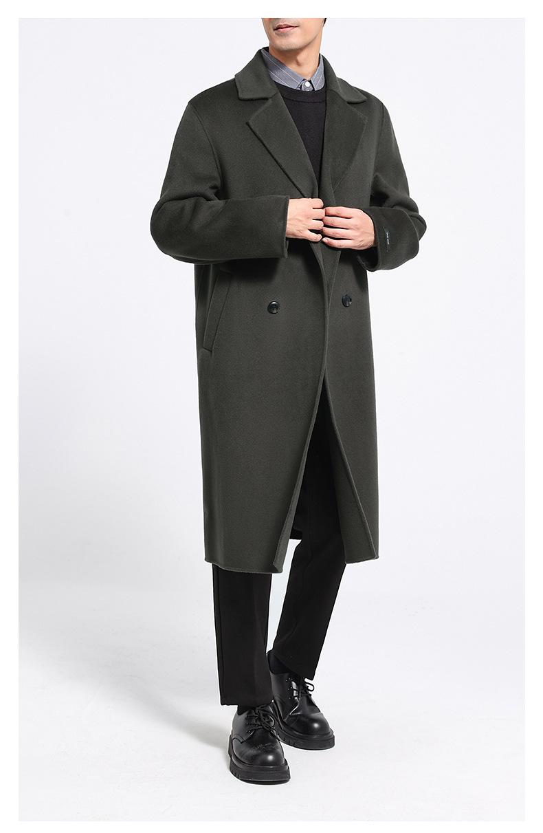 Abrigo largo de lana de doble faz por encima de la rodilla para hombre, otoño e invierno, traje de moda estilo coreano, gabardina de lana suelta