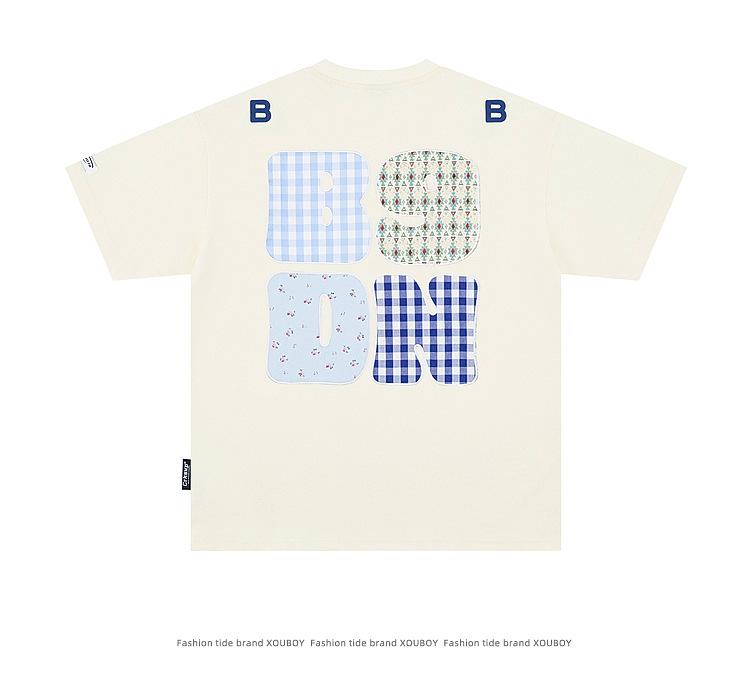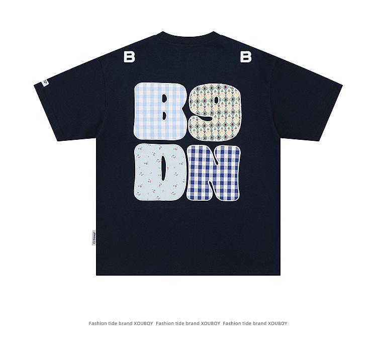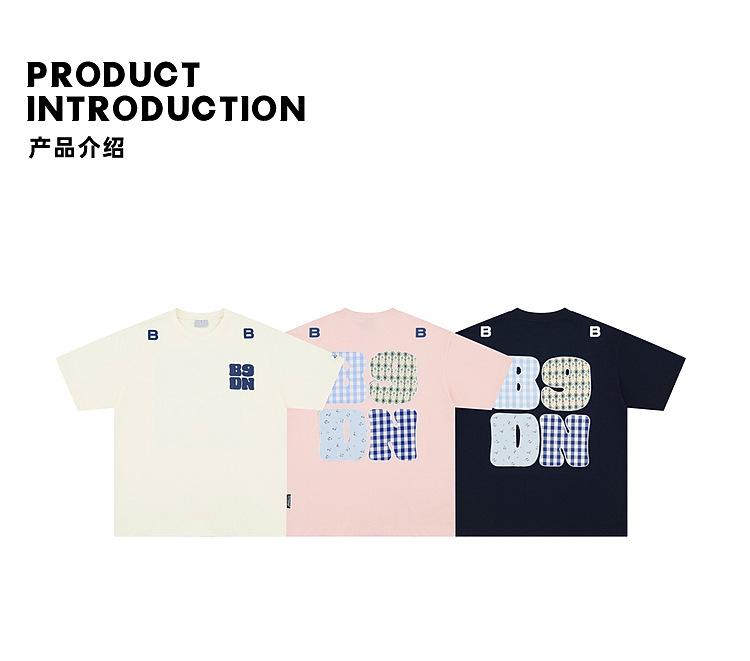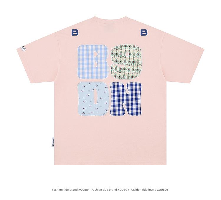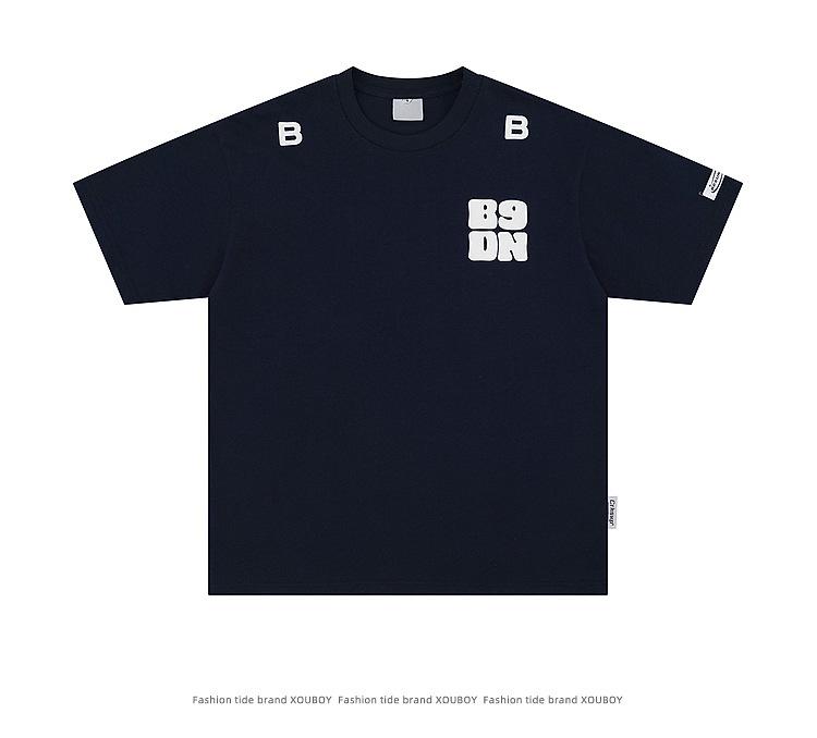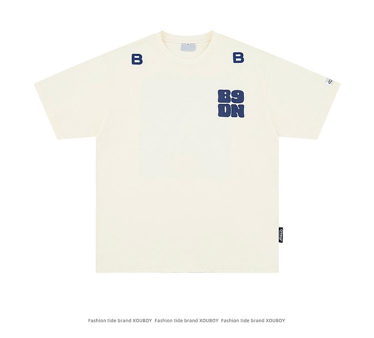 Camiseta holgada de manga corta estilo americano para hombre y mujer, estilo retro, con letras bordadas, estilo informal, de verano, 2025