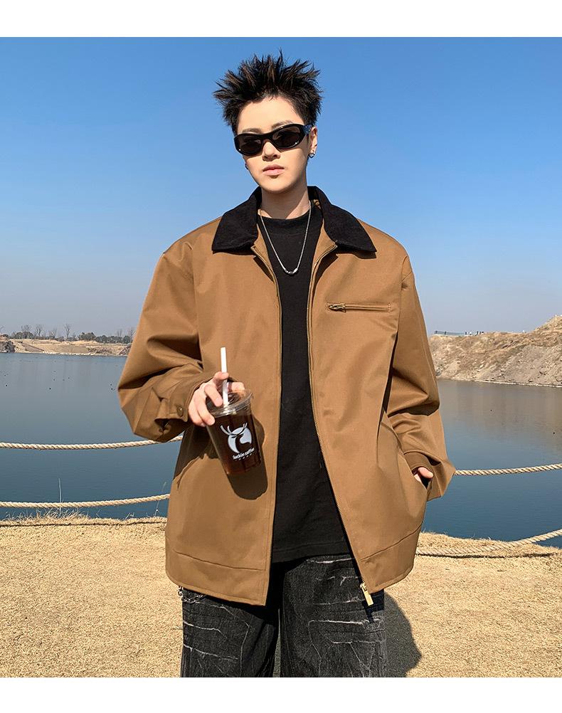 Chaqueta Juvenil de Primavera 2025 de Alta Calidad para Hombre, Casual, Retro, Holgada, Versátil, con Solapa, Top Transfronterizo para Hombre