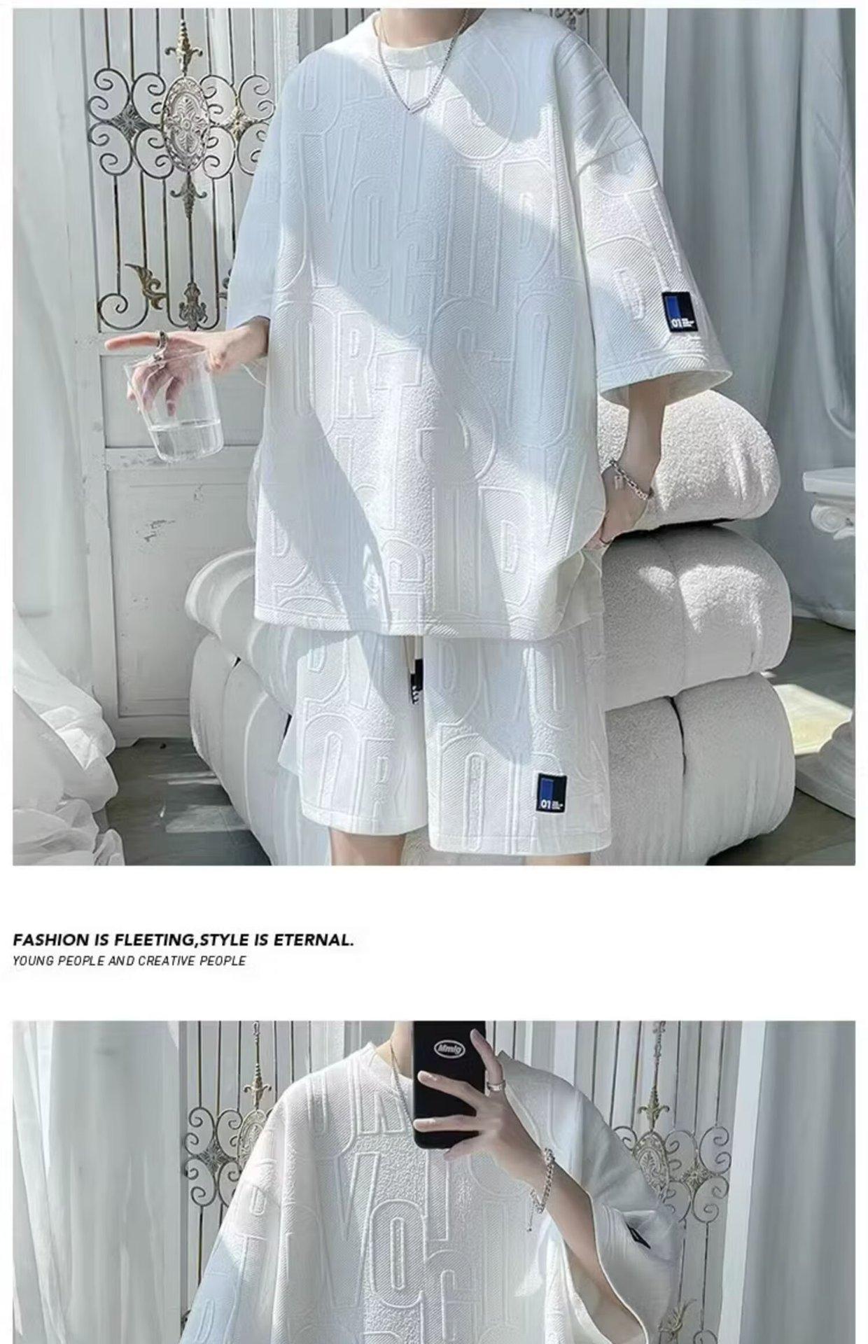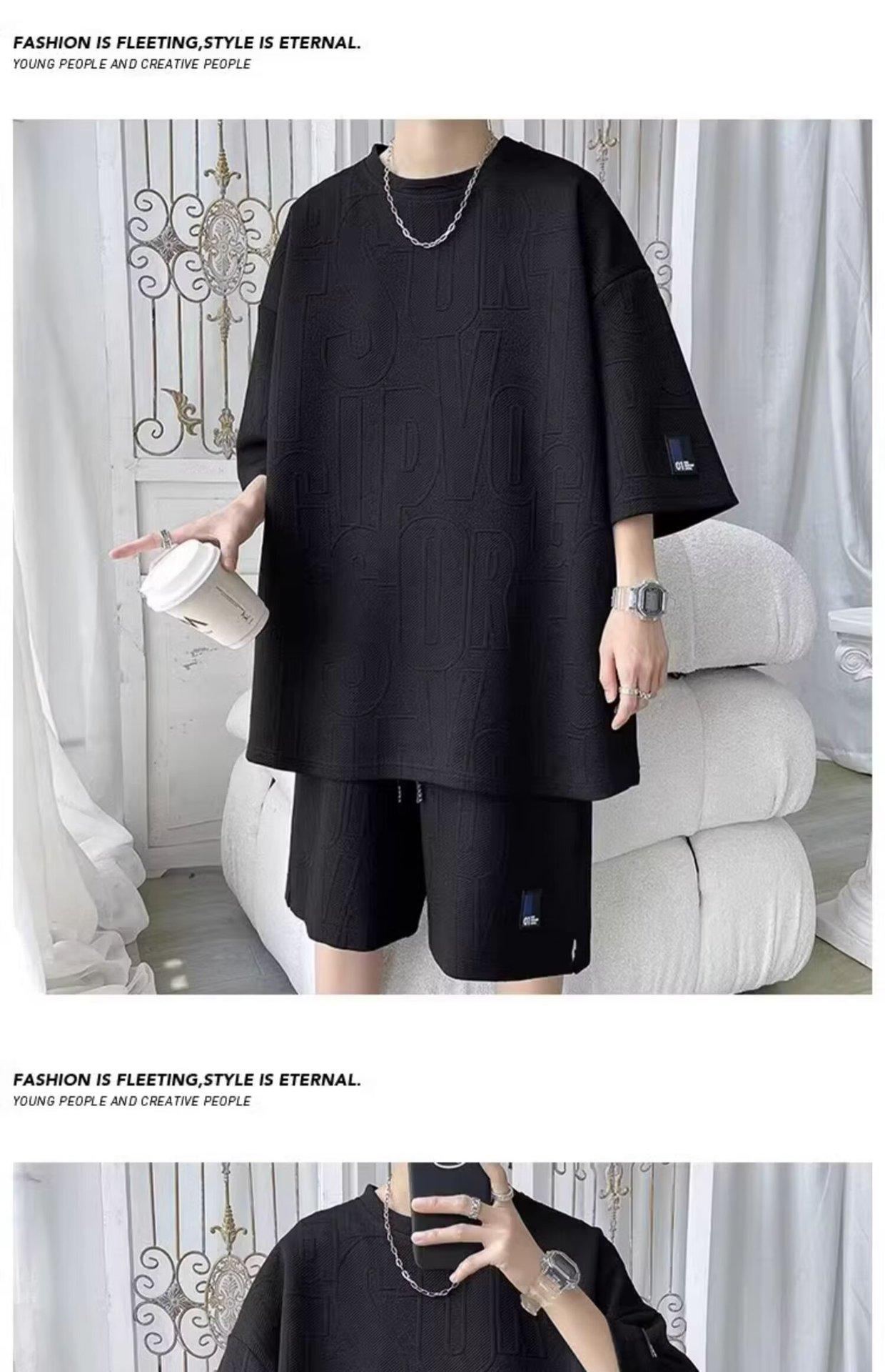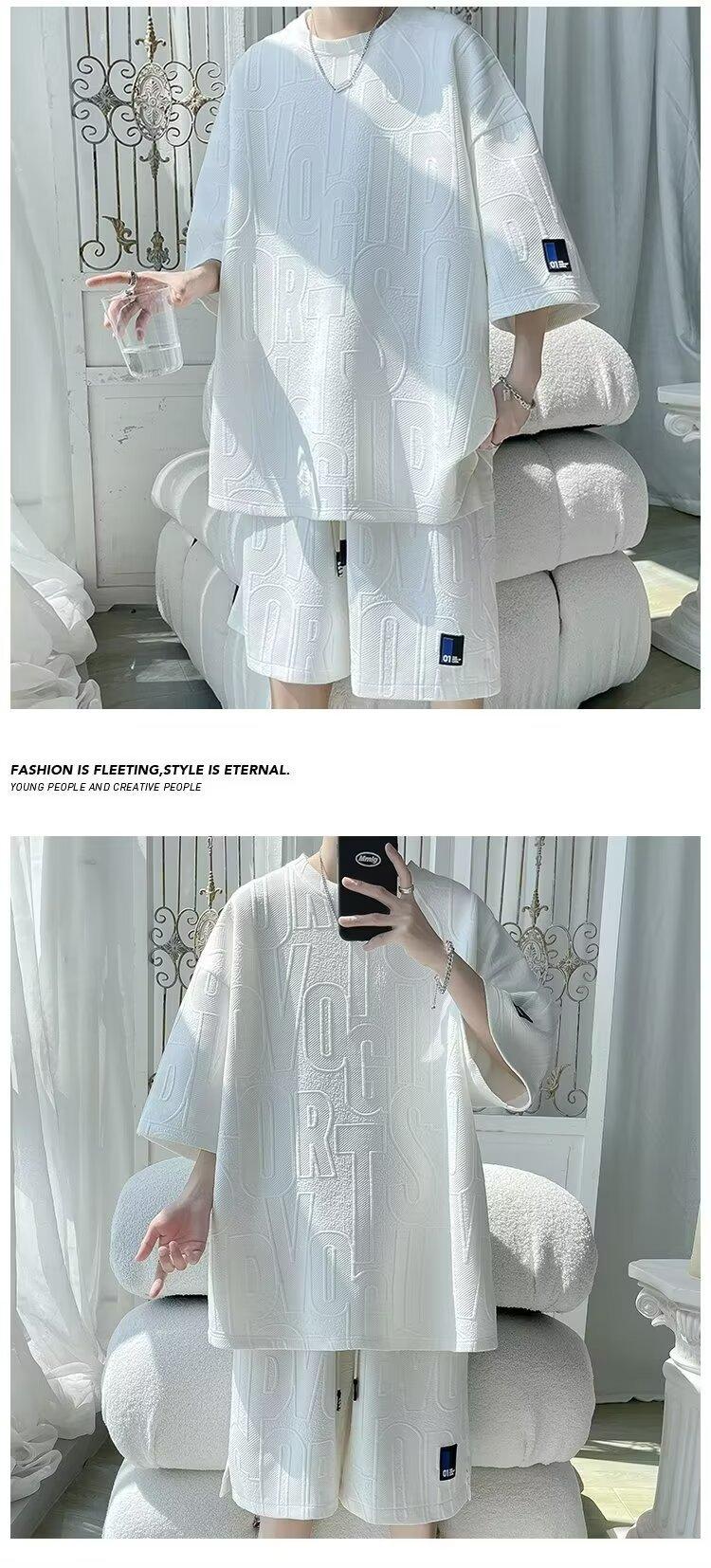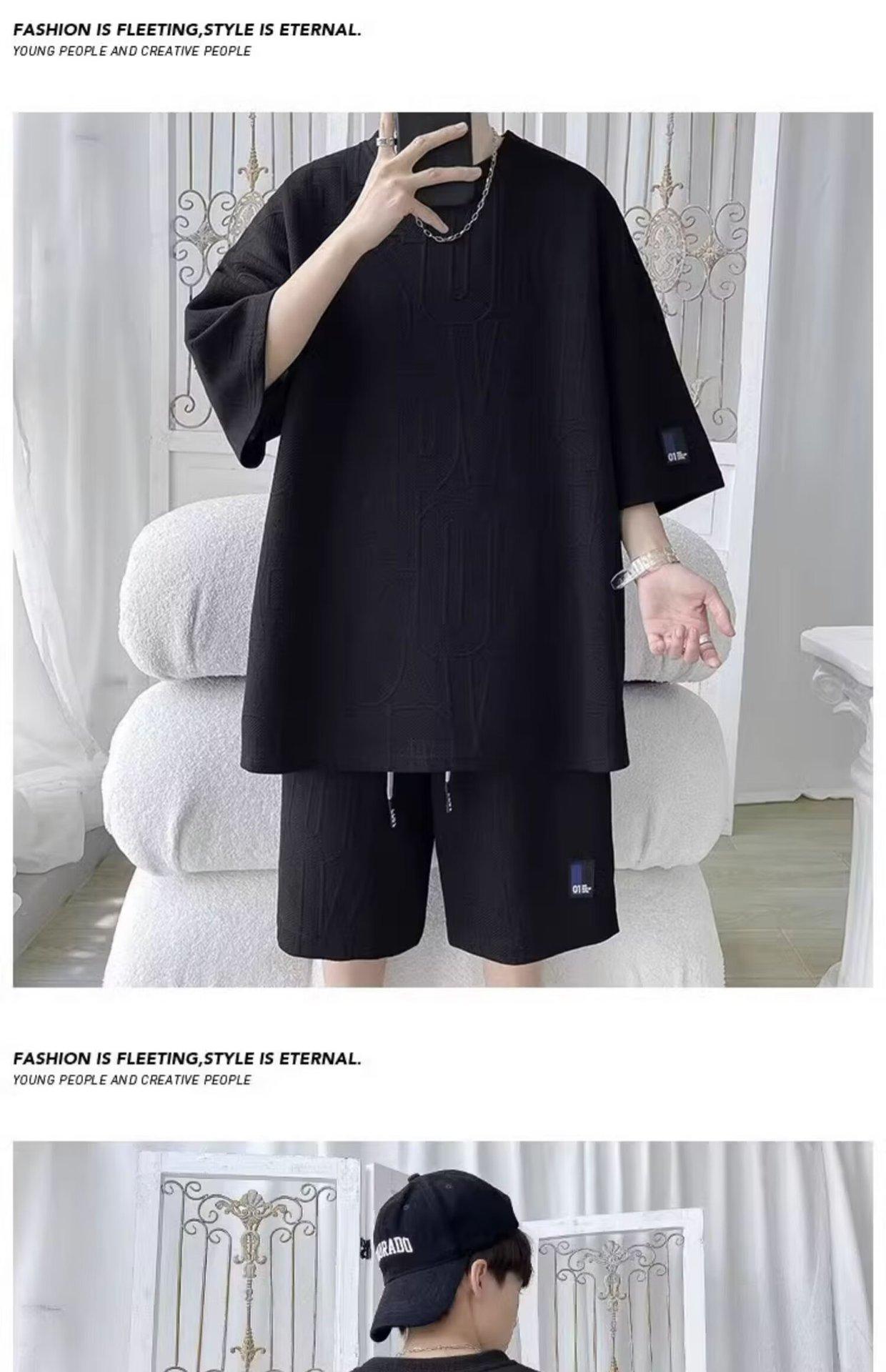 Traje de verano de manga corta para hombre, talla grande, holgado, de verano, deportivo, informal, para jóvenes, de dos piezas.