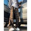 Pantalones casuales a cuadros con contraste de color americano para hombre, pantalones holgados, rectos y anchos de pierna, pantalones largos de moda que combinan con todo, primavera y otoño.