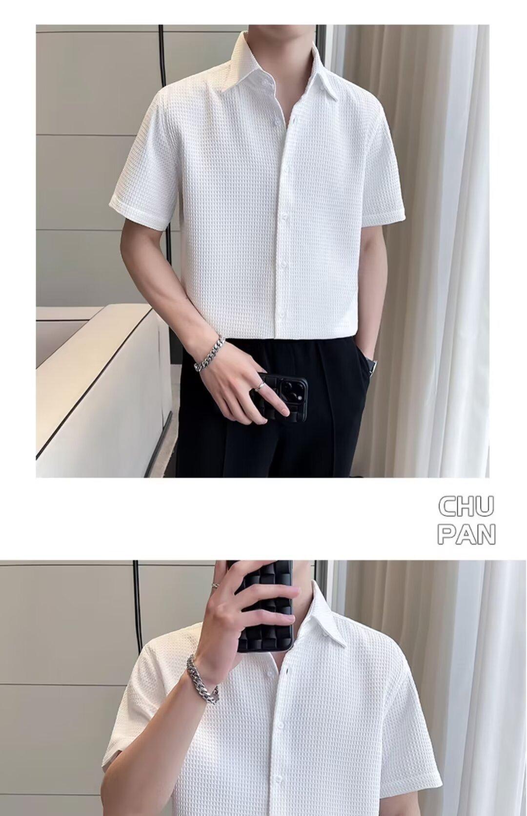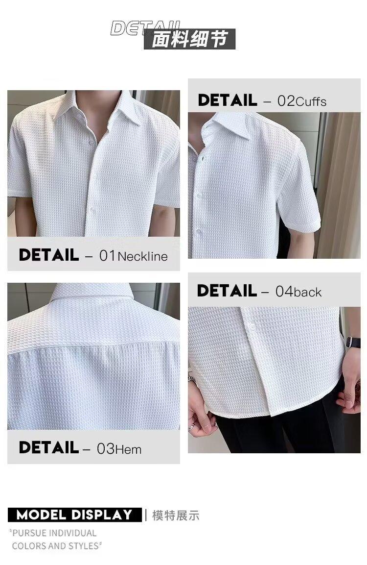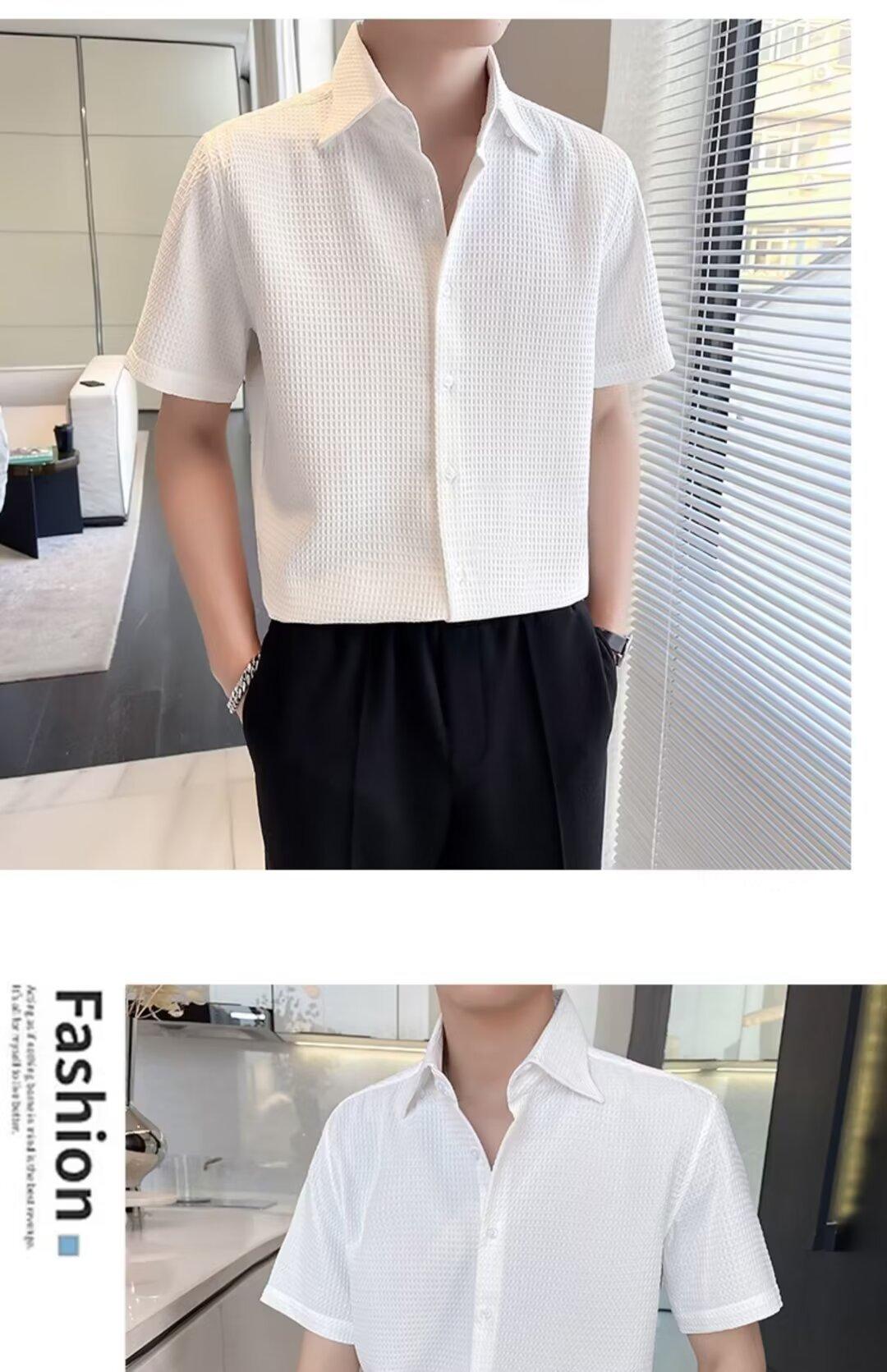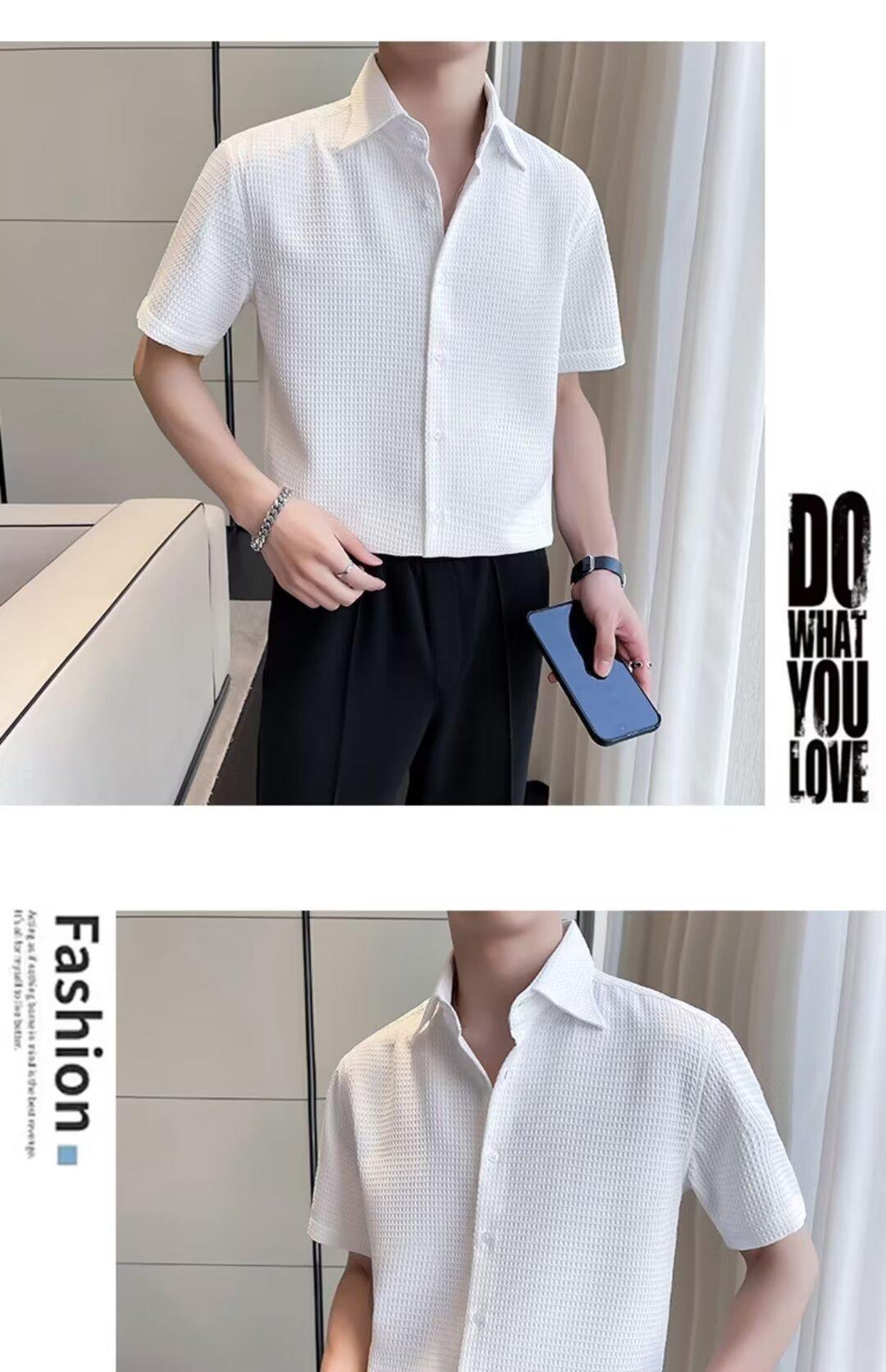 Compra Camisa de manga corta para hombre, verano 2024, nueva camisa informal de negocios de estilo coreano, camisa blanca elegante de corte entallado, combina con todo, a la moda al por mayor en Joom.pro