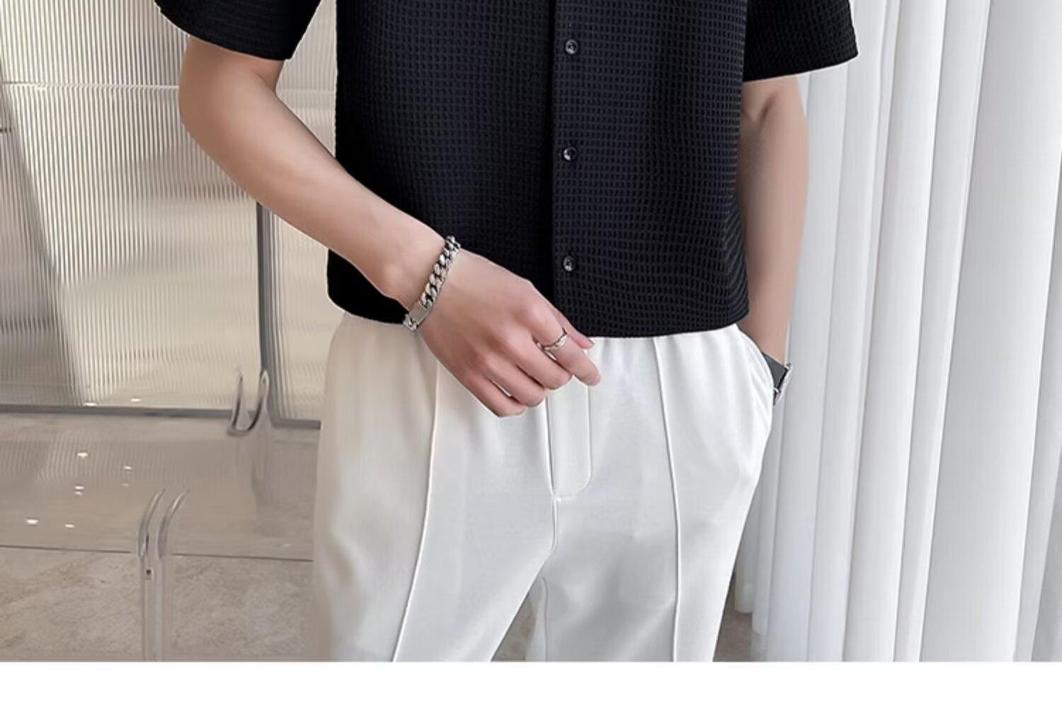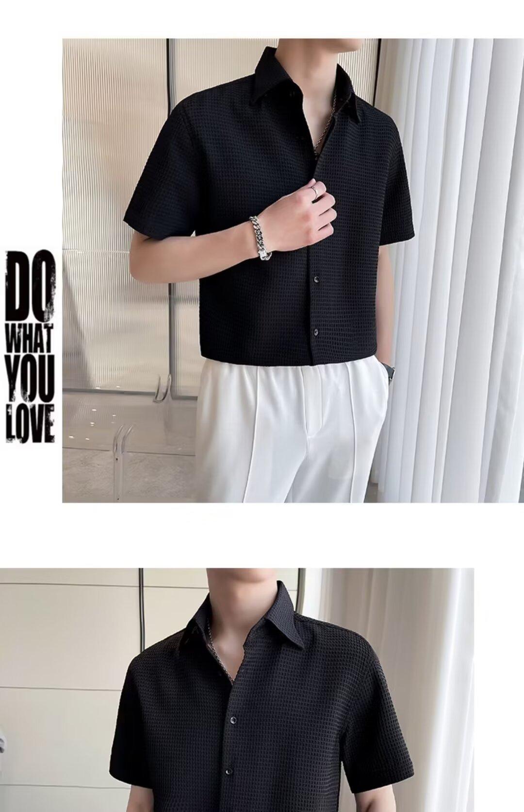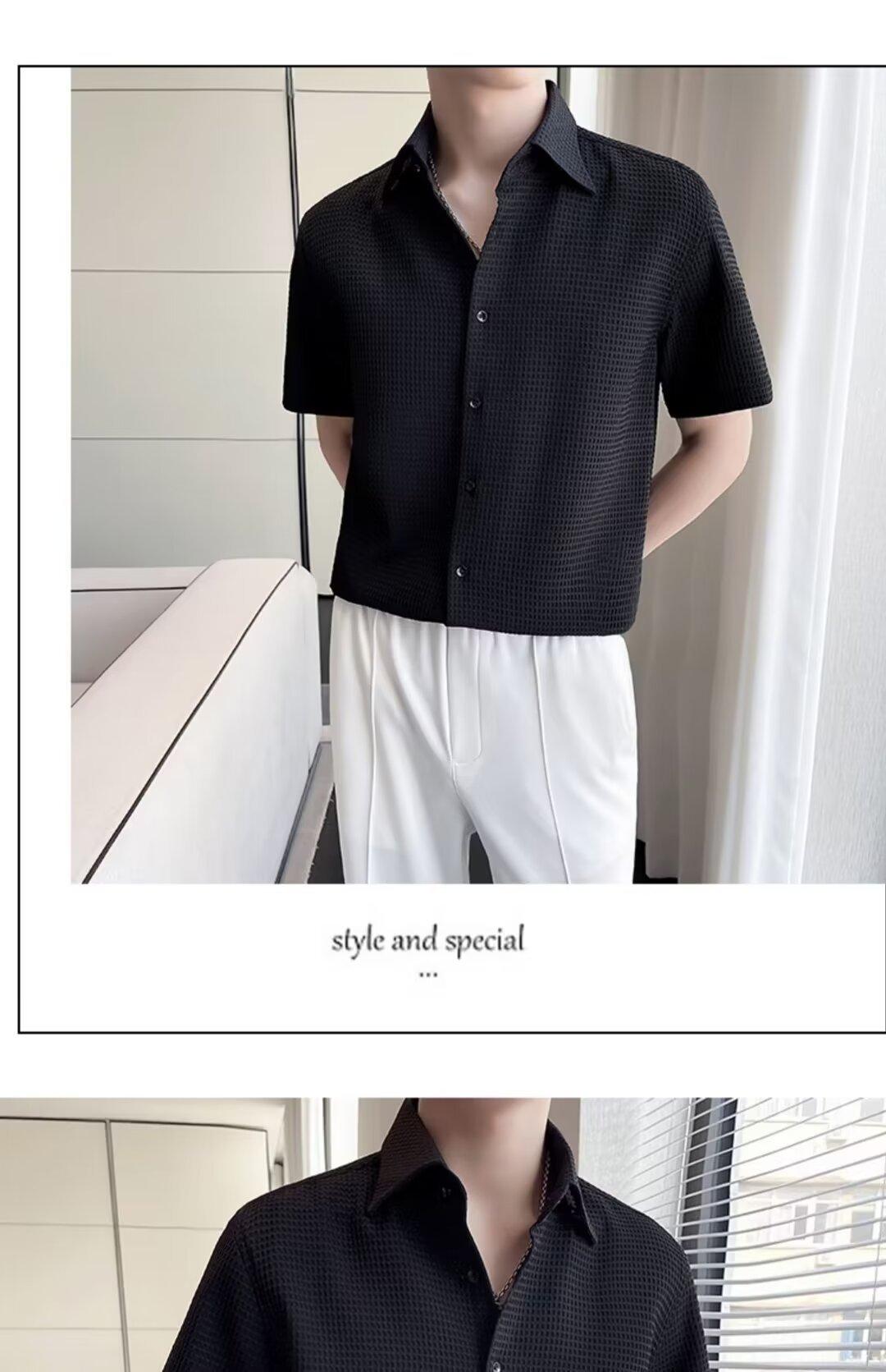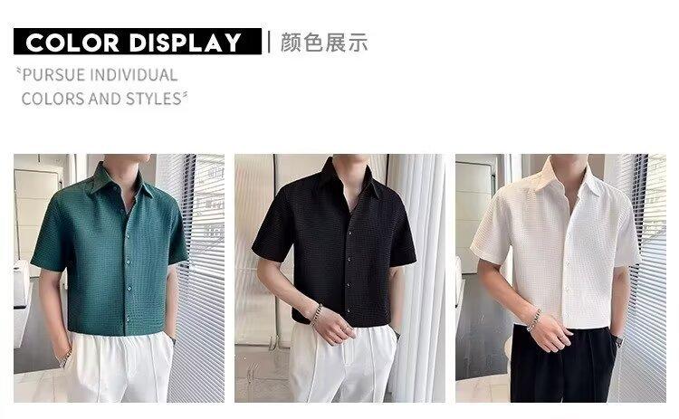 Compra Camisa de manga corta para hombre, verano 2024, nueva camisa informal de negocios de estilo coreano, camisa blanca elegante de corte entallado, combina con todo, a la moda al por mayor en Joom.pro