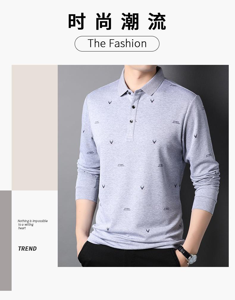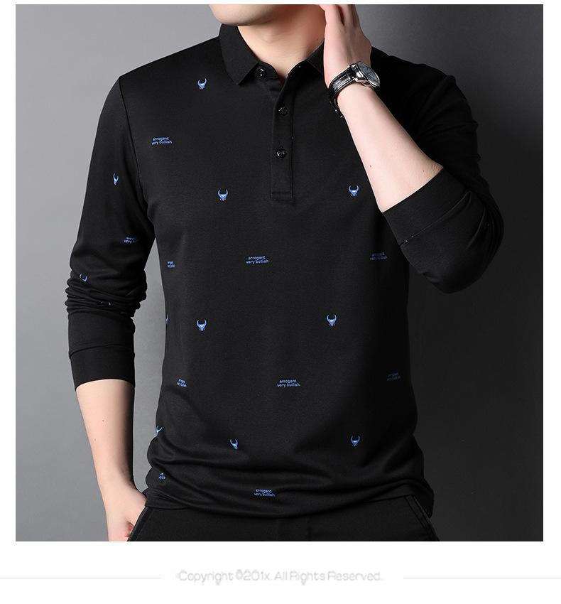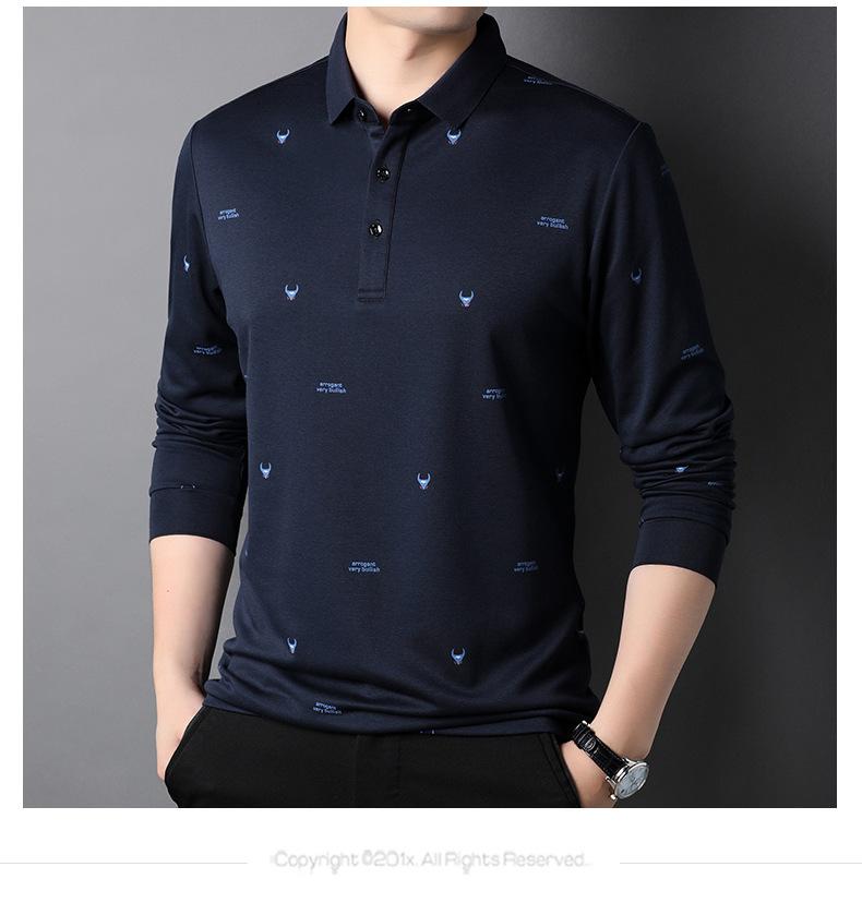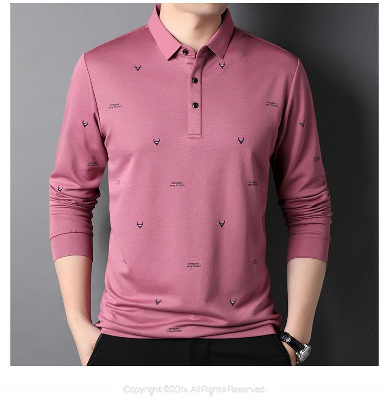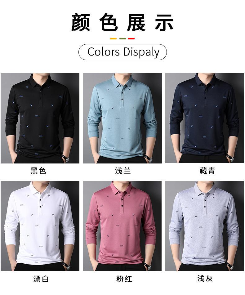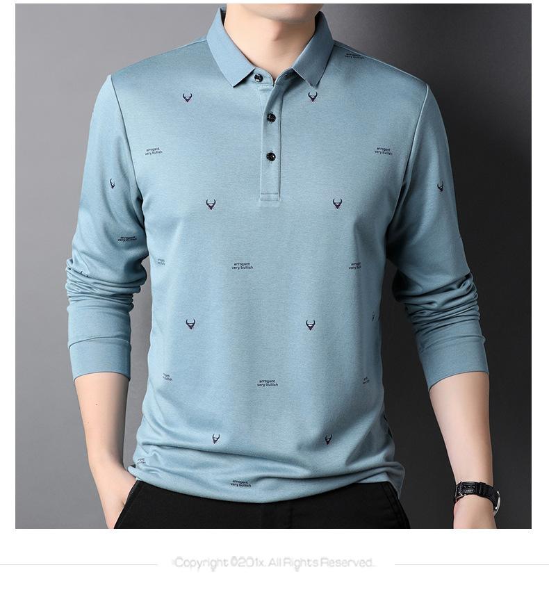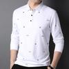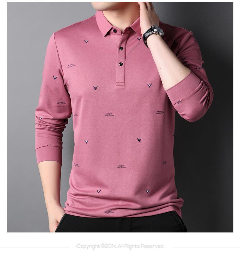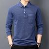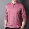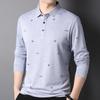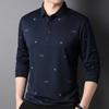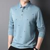 Camiseta Simple de Hombre de Mediana Edad 2025 Primavera y Otoño Polo Combinable para Exterior Solapa Manga Larga Floral Moda Cabello