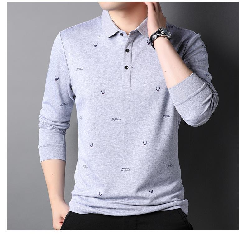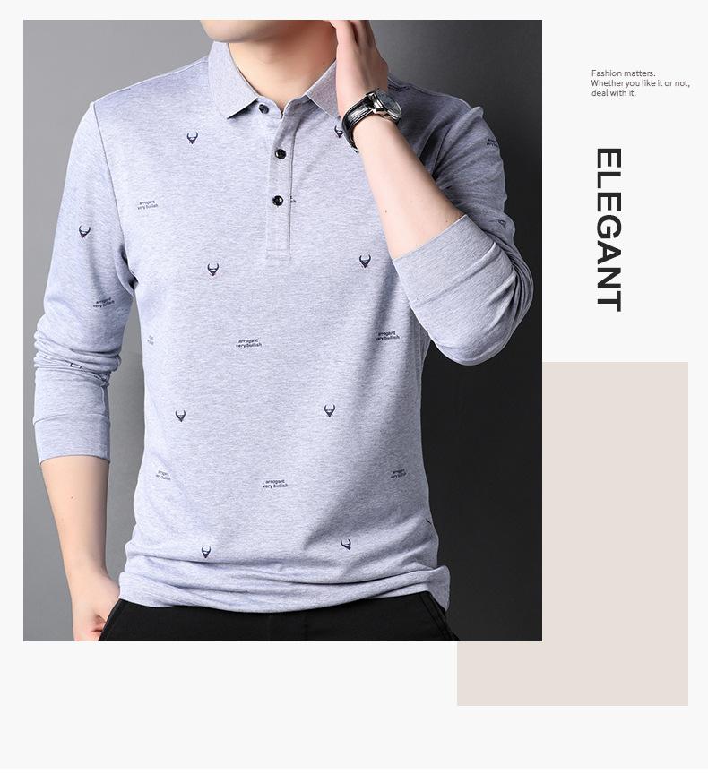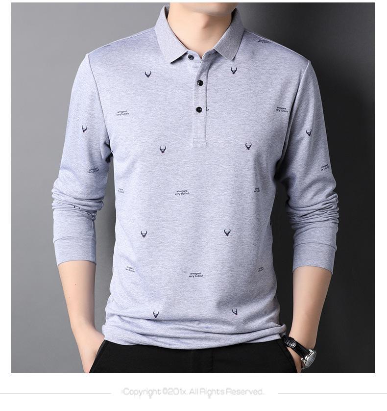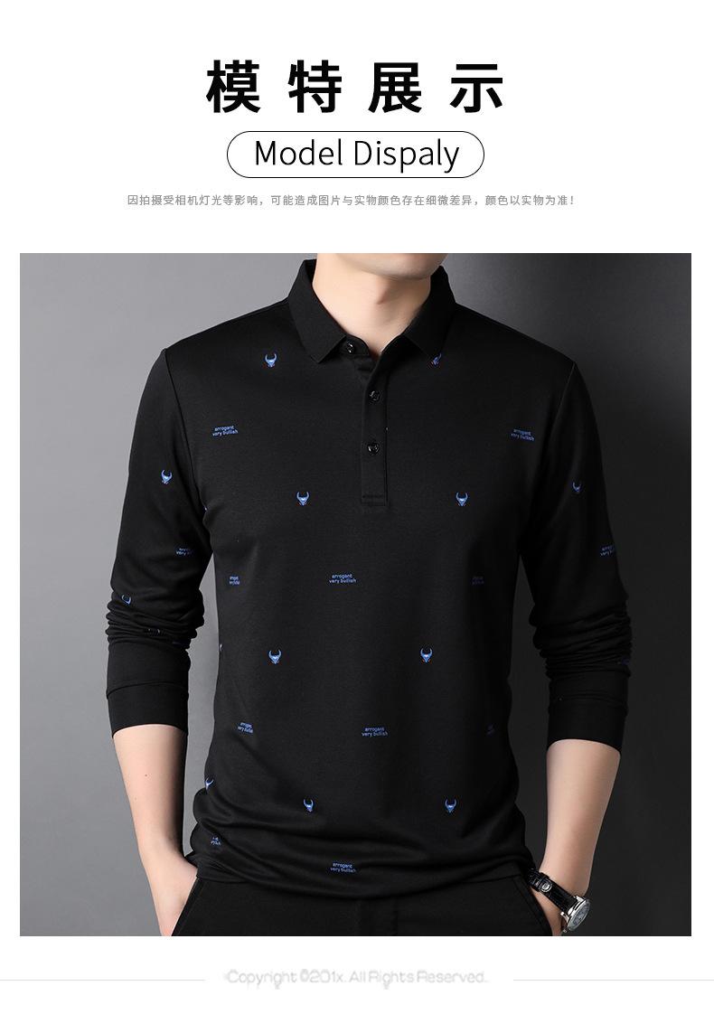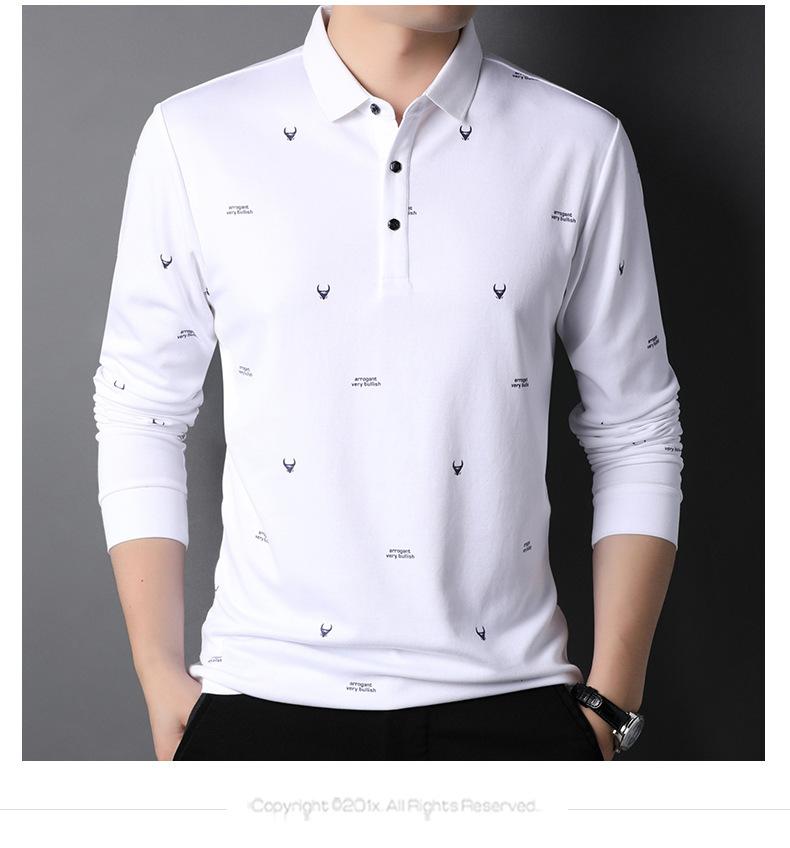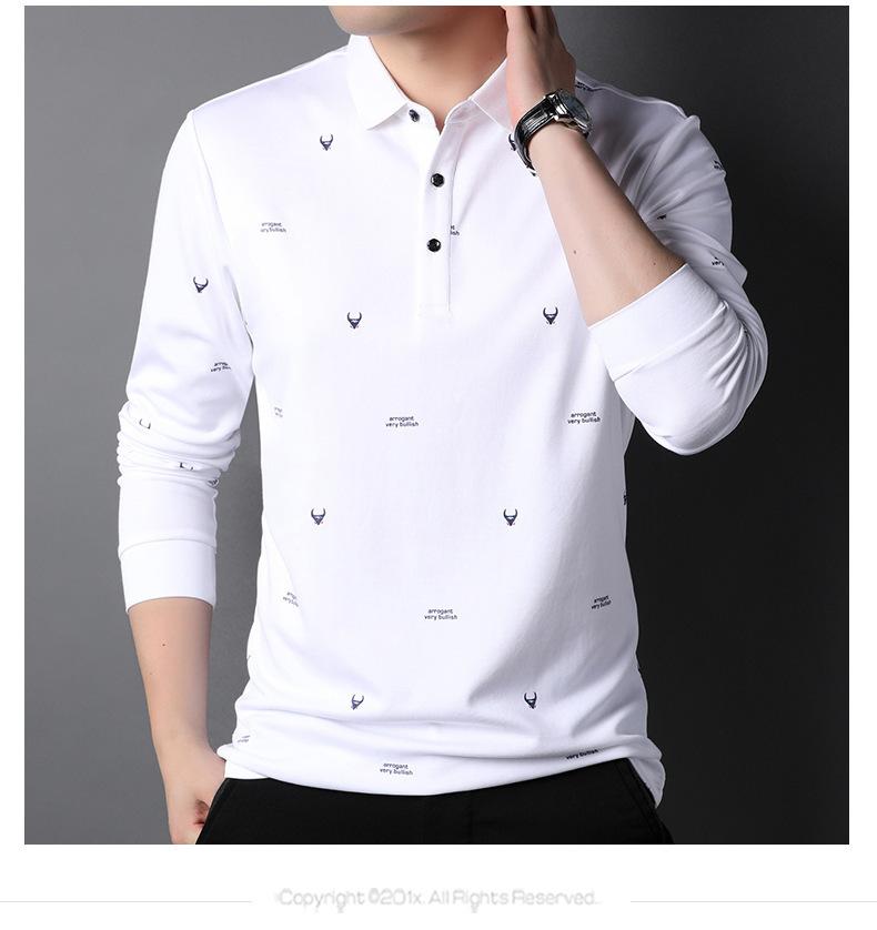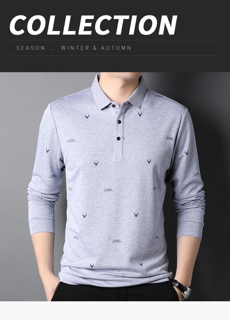 Camiseta Simple de Hombre de Mediana Edad 2025 Primavera y Otoño Polo Combinable para Exterior Solapa Manga Larga Floral Moda Cabello