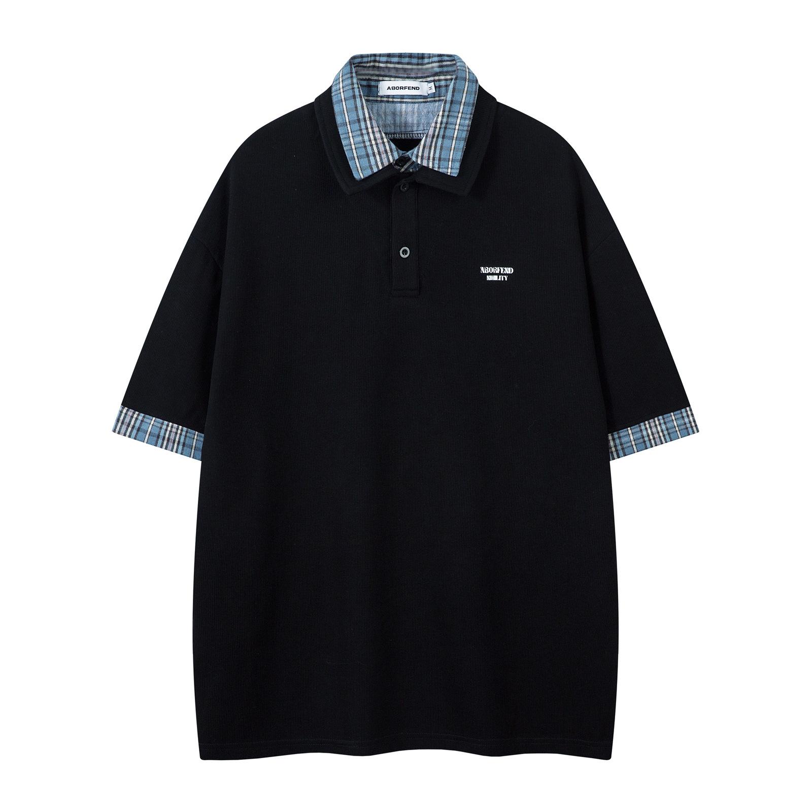 Compra Camiseta de manga corta con solapa y estampado de letras retro estilo americano para hombre, holgada, informal, combinable con todo, para verano al por mayor en Joom.pro