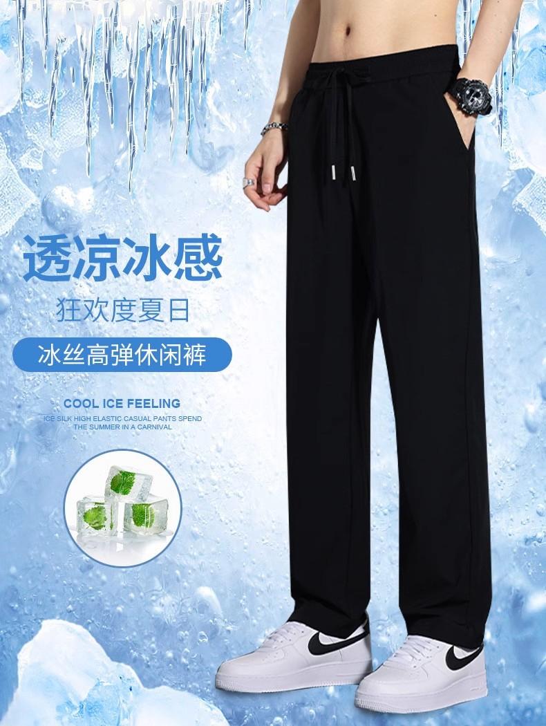 Compra Pantalones de Seda de Hielo para Hombre Verano Delgados Sueltos Rectos Cintura Elástica Secado Rápido Pantalones Deportivos Casuales Traje de Pareja al por mayor en Joom.pro