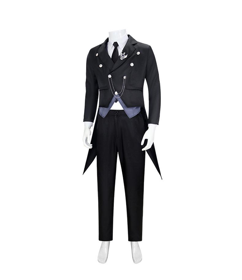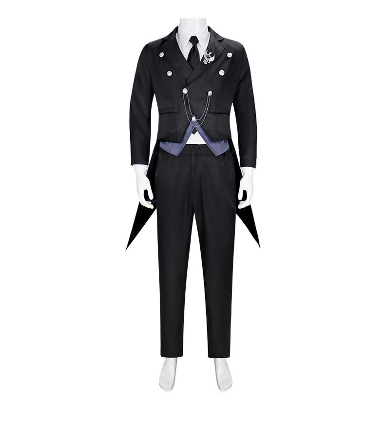 Disfraz de cosplay de esmoquin de Sebastian Butler, de Broad Man Anime Black Deacon, disponible en stock.