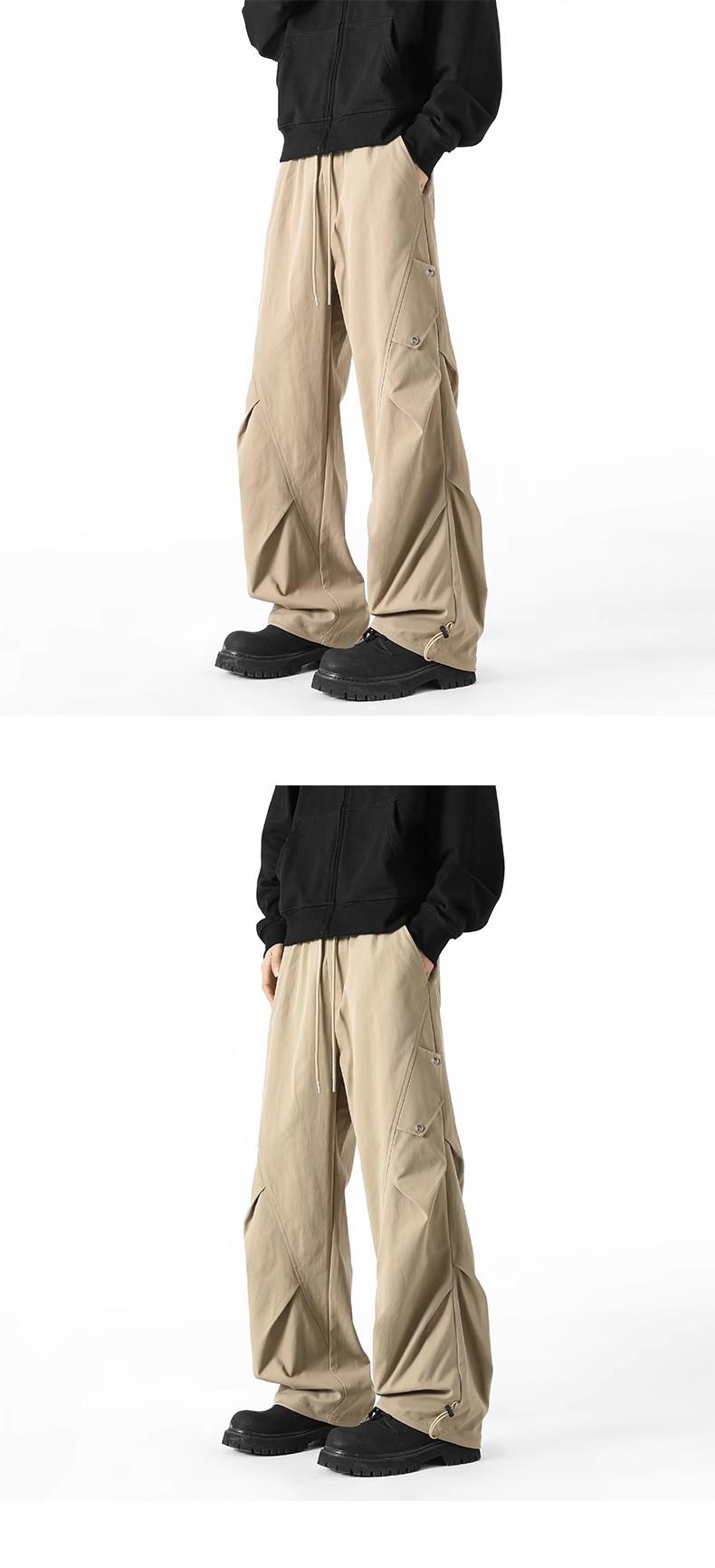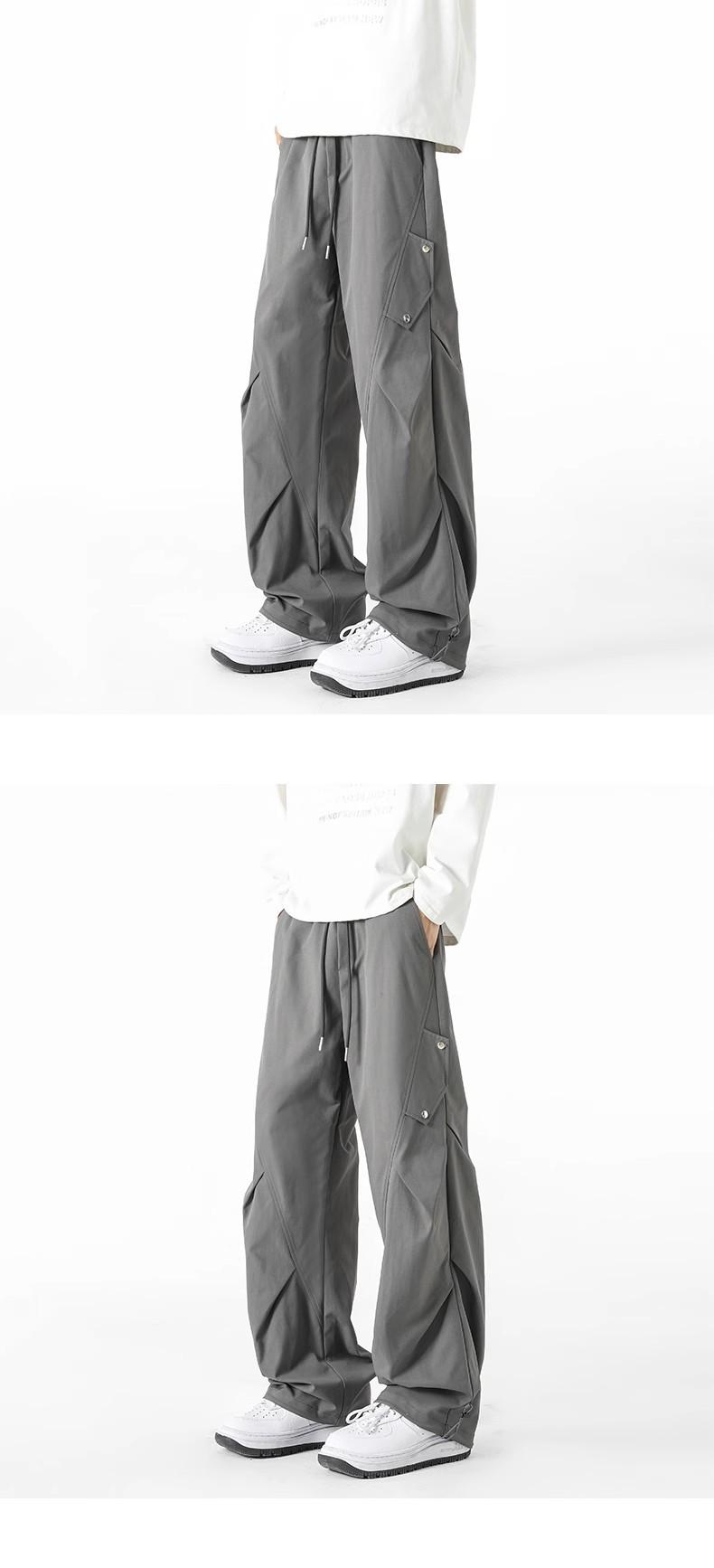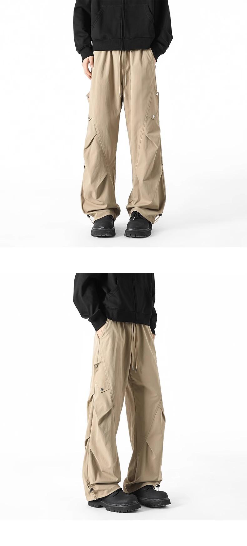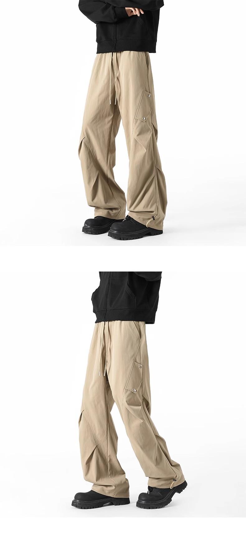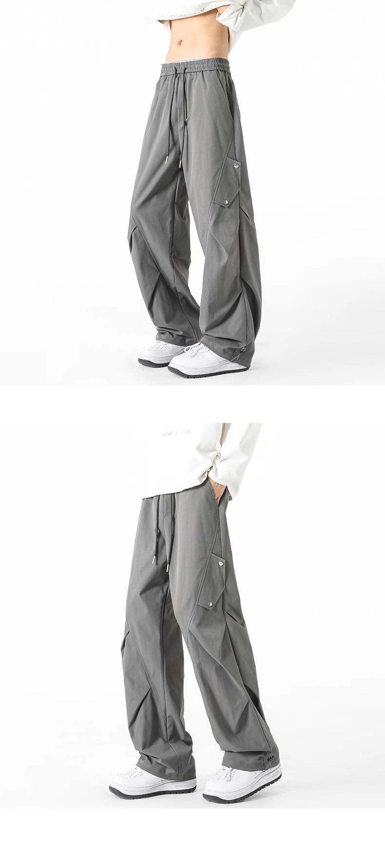 Pantalones largos casuales de pierna ancha y recta holgados de marca de moda plisados de primavera y otoño para hombre, pantalones funcionales