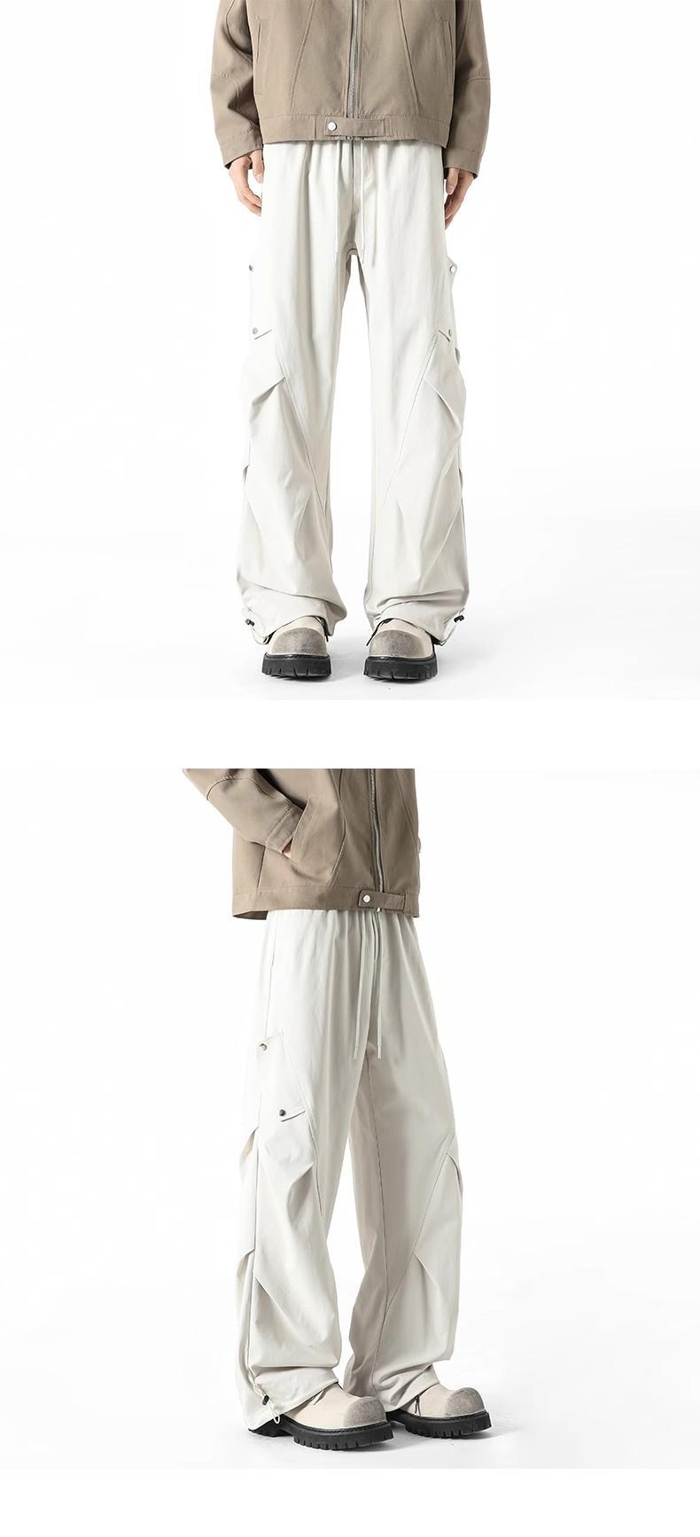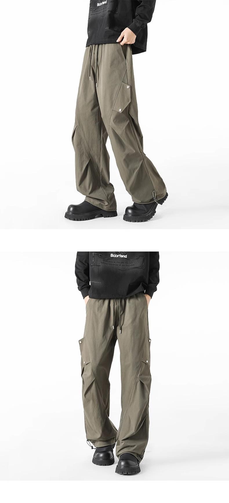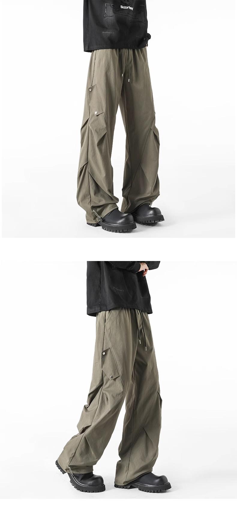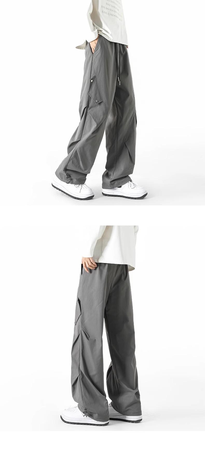 Pantalones largos casuales de pierna ancha y recta holgados de marca de moda plisados de primavera y otoño para hombre, pantalones funcionales