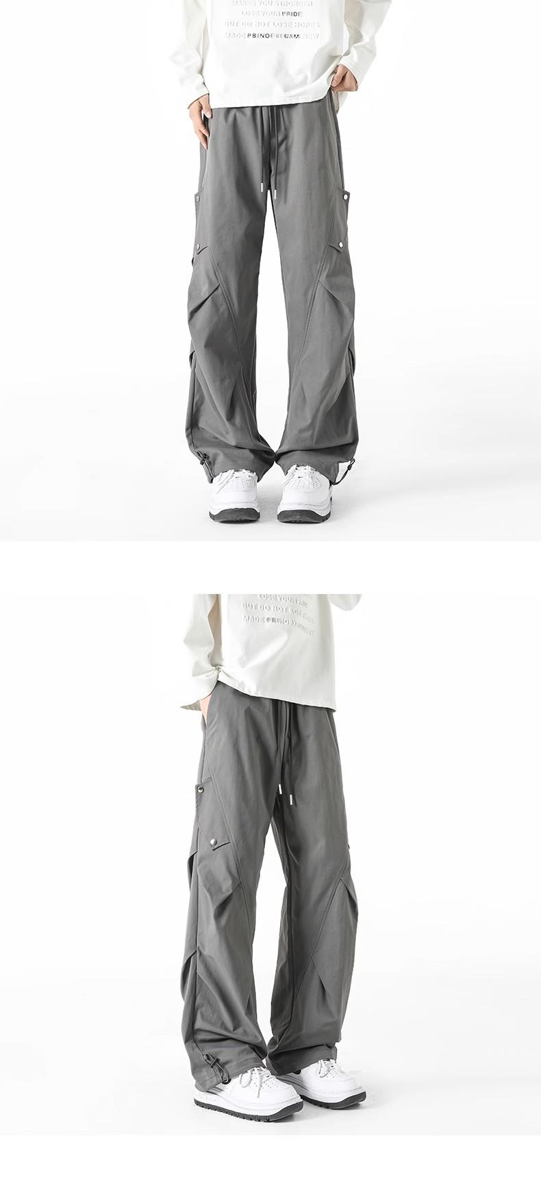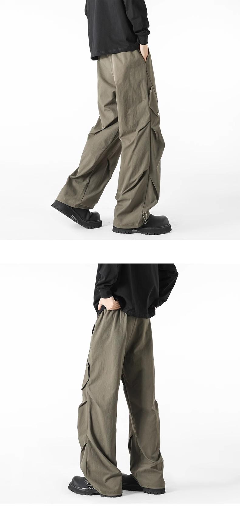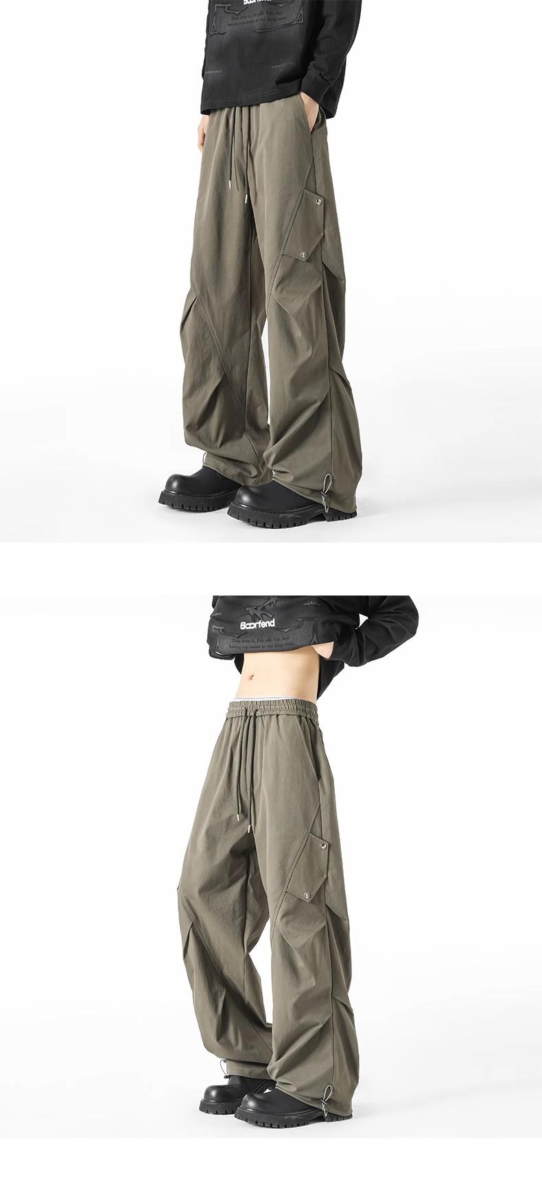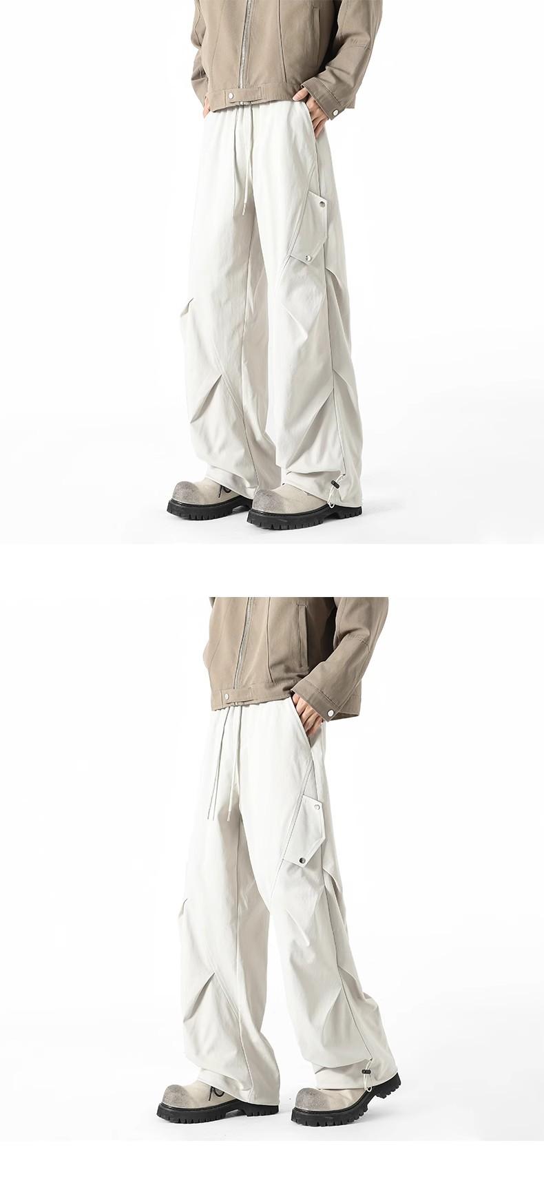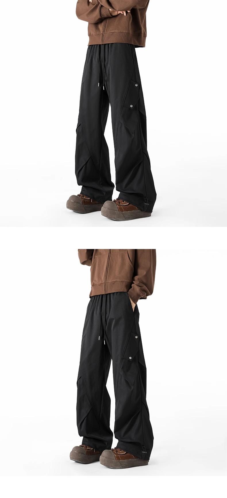 Pantalones largos casuales de pierna ancha y recta holgados de marca de moda plisados de primavera y otoño para hombre, pantalones funcionales