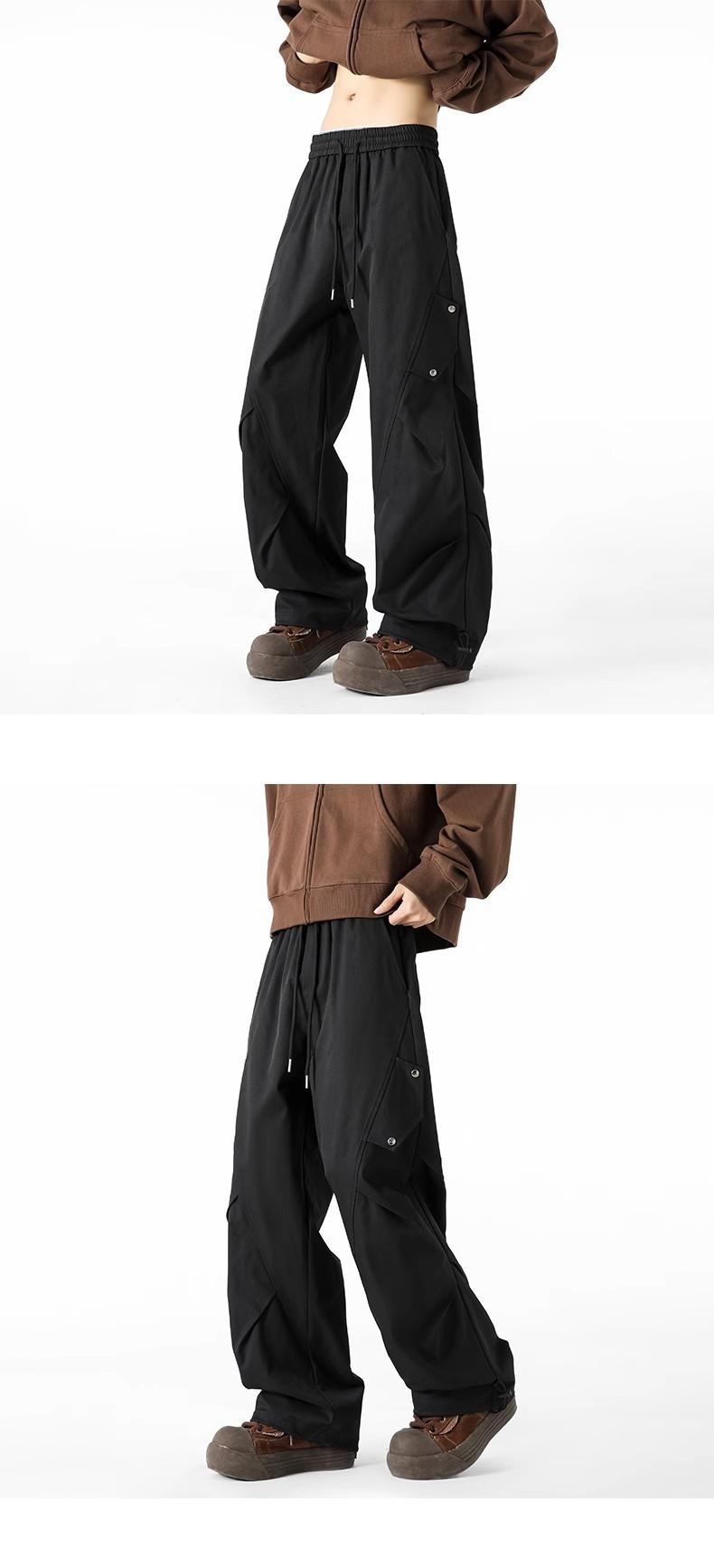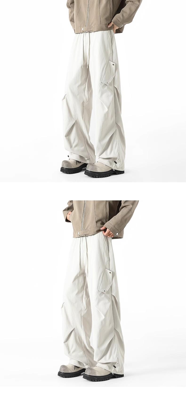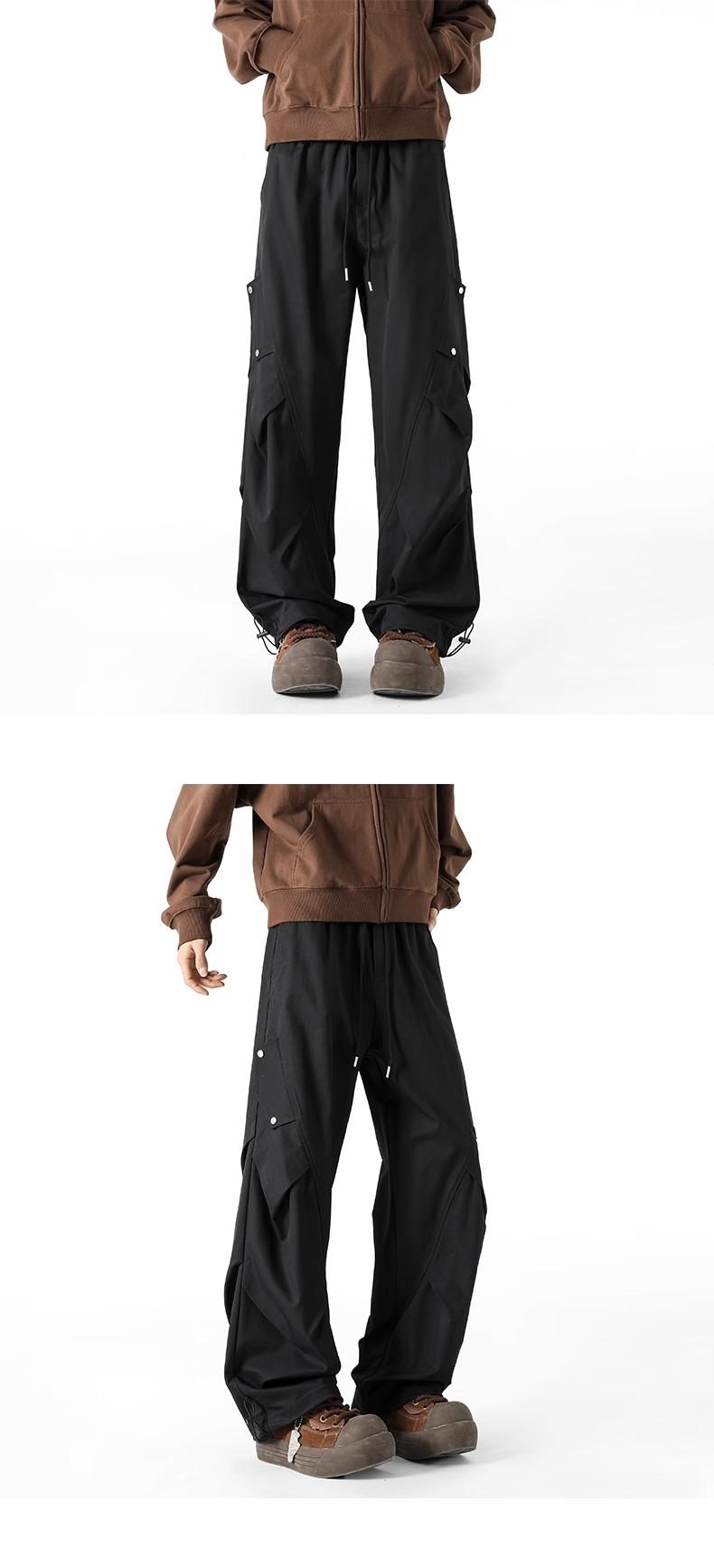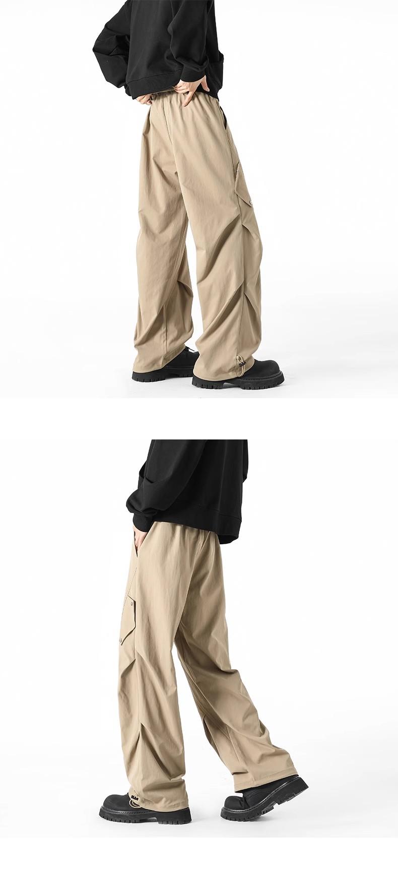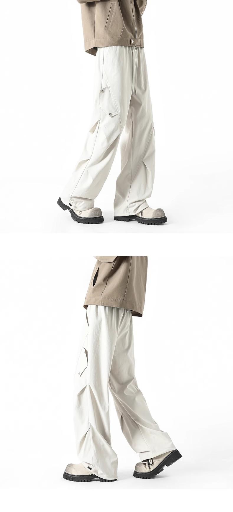 Pantalones largos casuales de pierna ancha y recta holgados de marca de moda plisados de primavera y otoño para hombre, pantalones funcionales