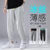 Pantalones finos de seda de hielo de verano para hombre, pantalones casuales sueltos Joker de secado rápido, bolsillo con cremallera, pantalones deportivos de dedo del pie al por mayor