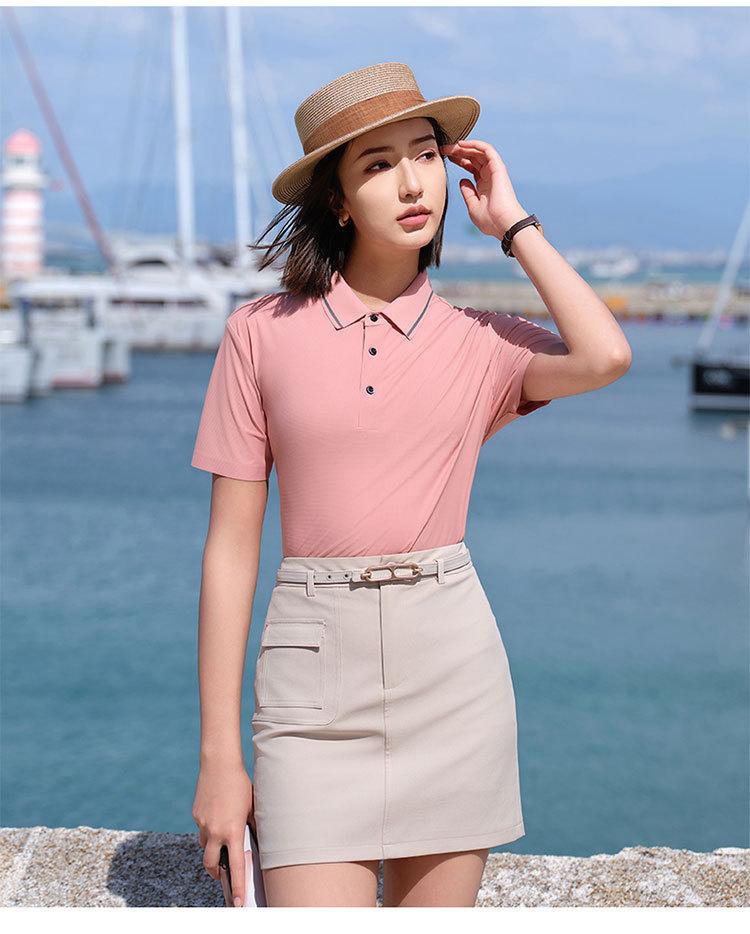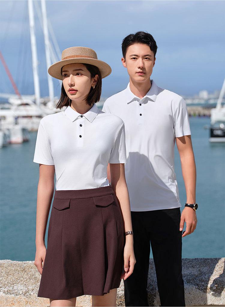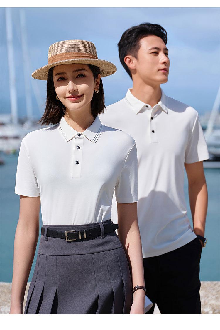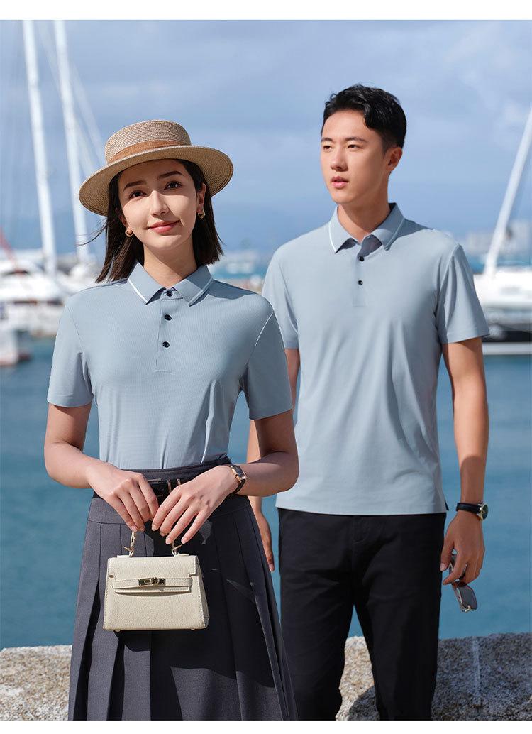 Ropa de trabajo, polo de seda helada de verano con logotipo impreso personalizado para hombre y mujer, camiseta de manga corta antibacteriana sin costuras para oficina.