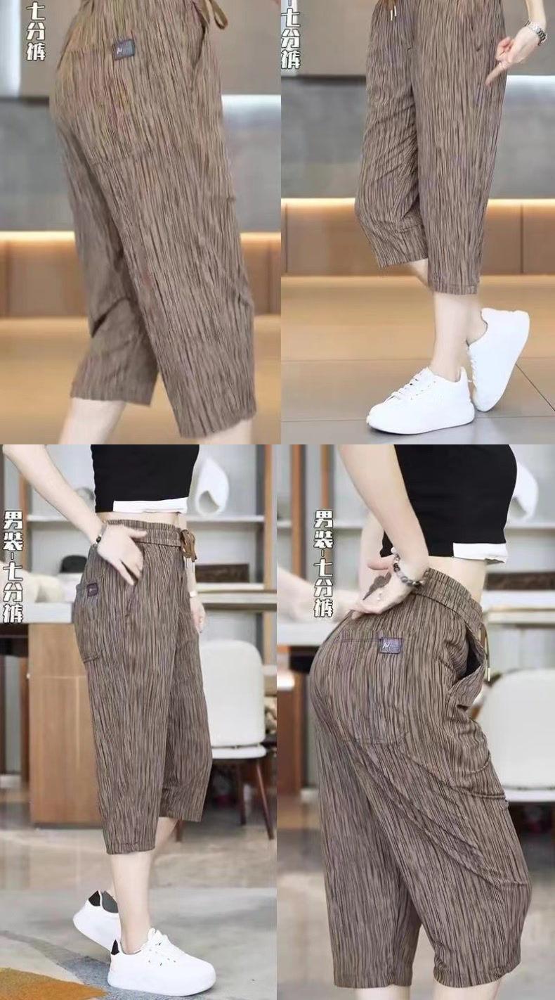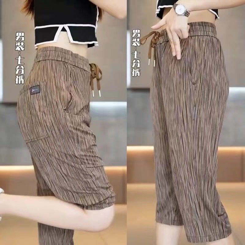 Pantalones de seda helada con rayas de meteorito para hombre, pantalón corto informal, transpirable, fino y elástico, combina con todo, para verano, 2025