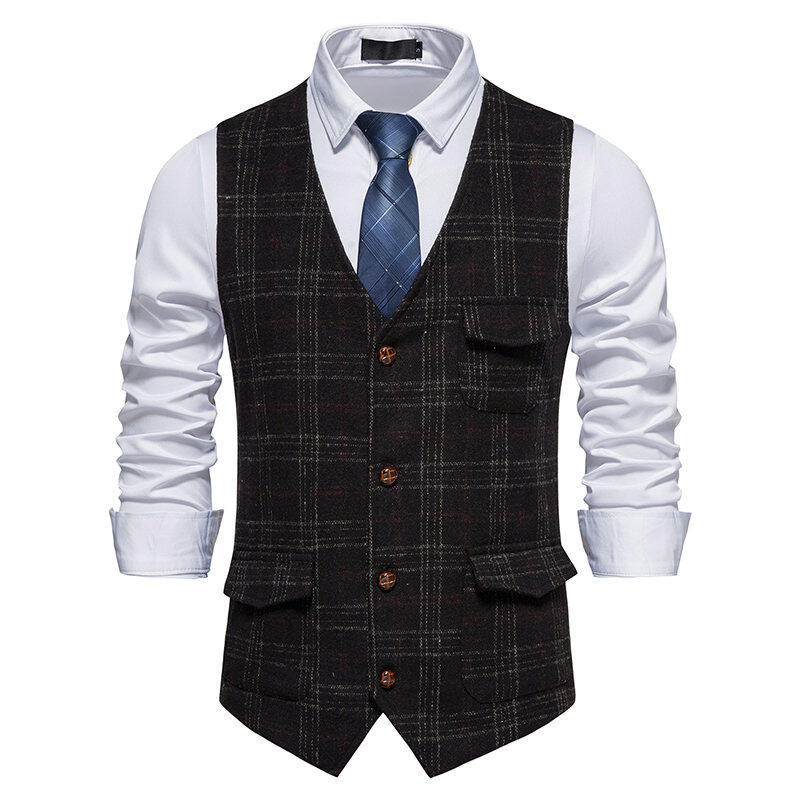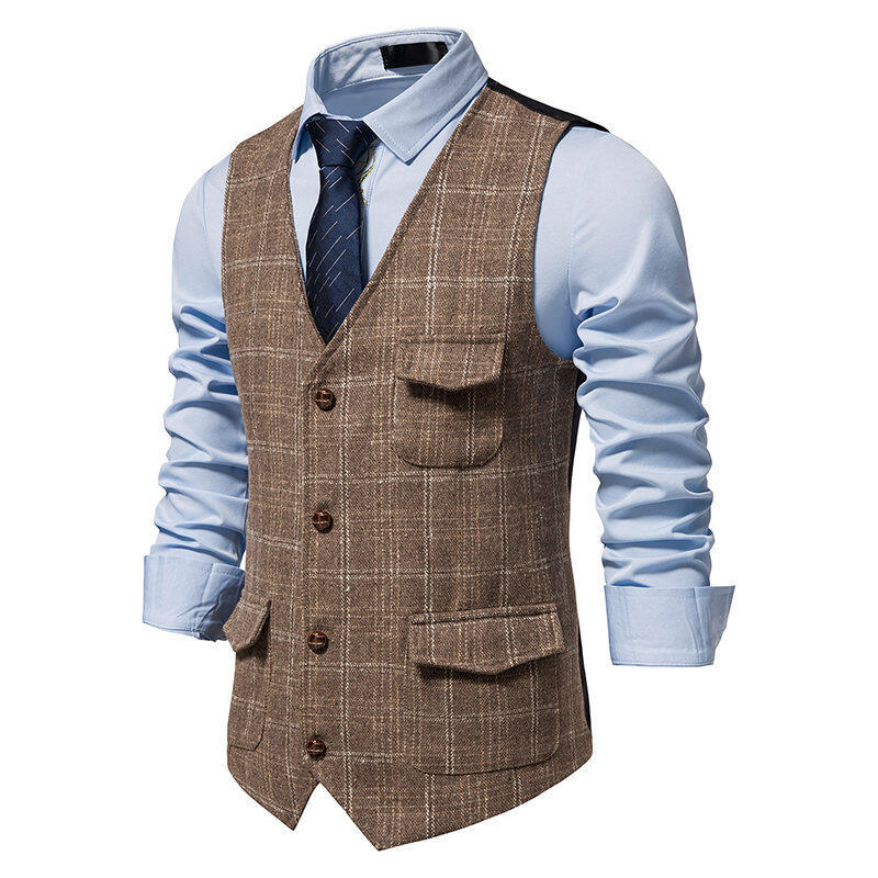 Exportación Transfronteriza 2025 Nuevo Chaleco de Traje Retro para Hombre Tweed Británico Talla Grande Chaleco Amazon Aliexpress