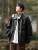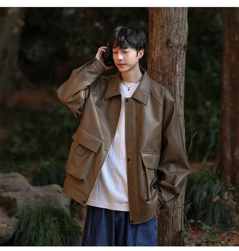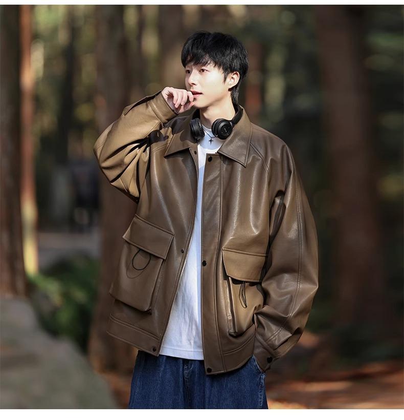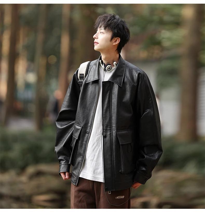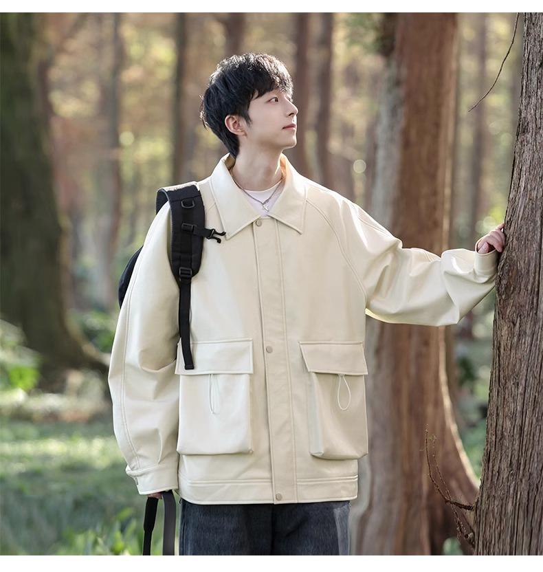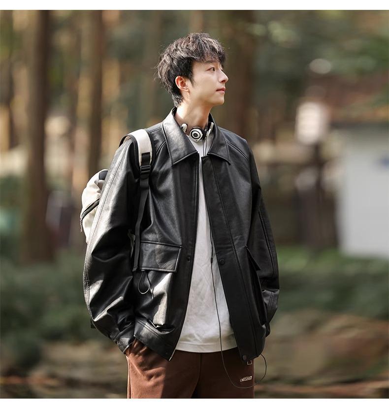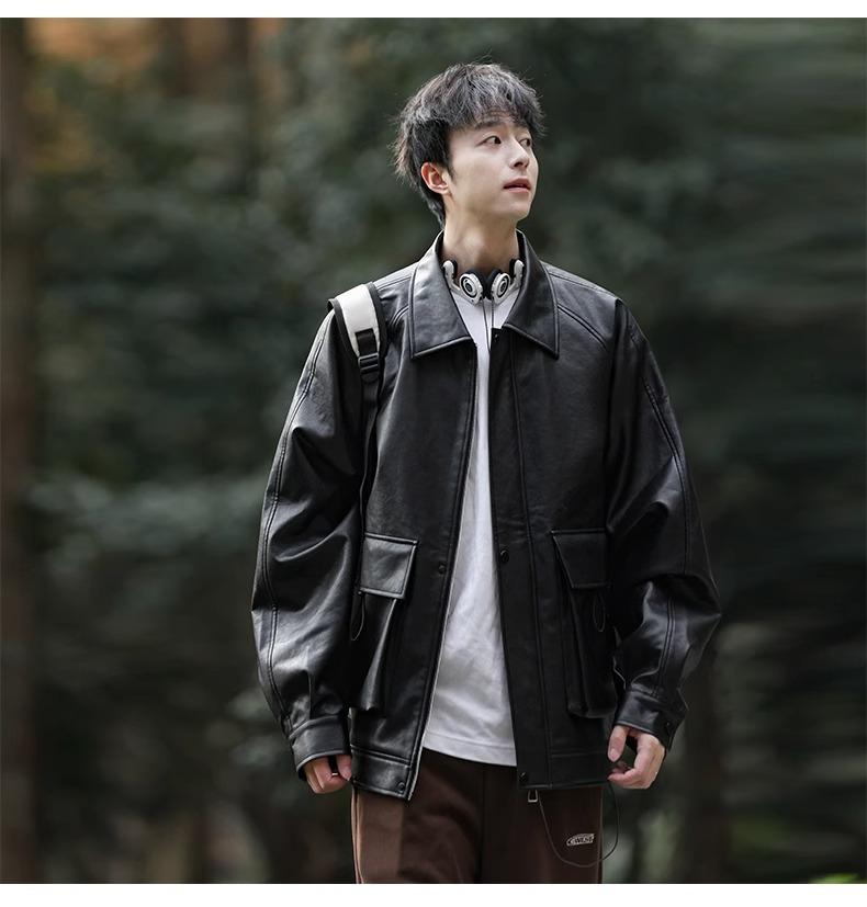 Chaqueta de cuero sintético con solapa de la NASA para hombre, primavera y otoño de 2025, estilo motociclista, estilo americano, para exteriores, holgada, de cuero sintético.