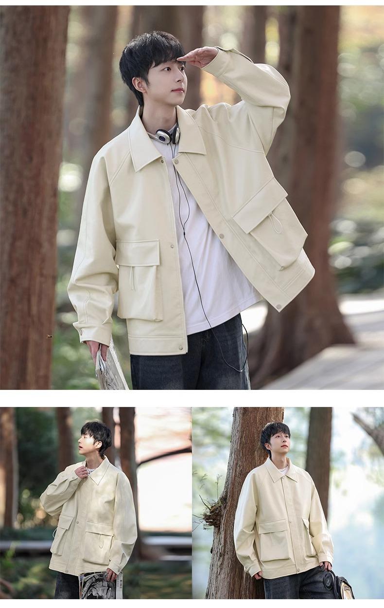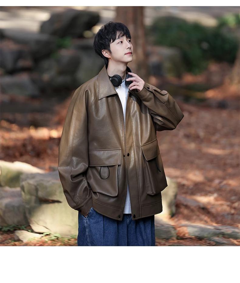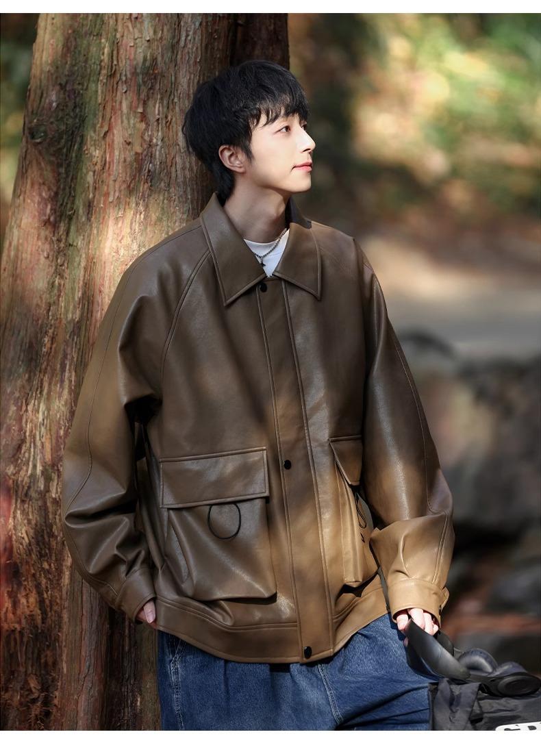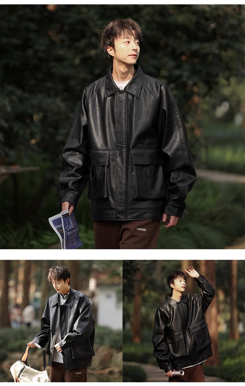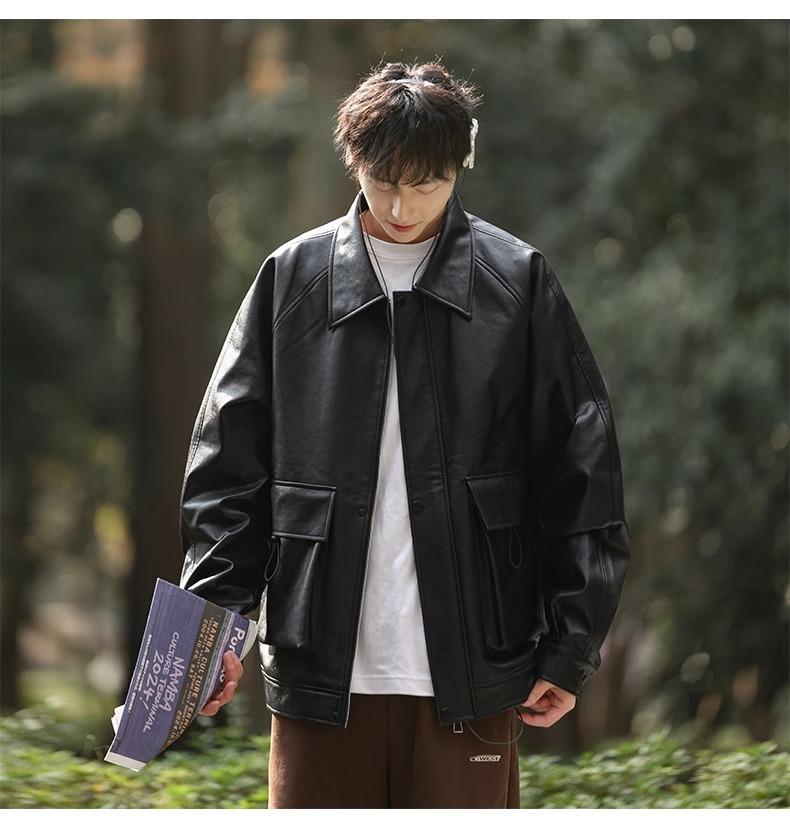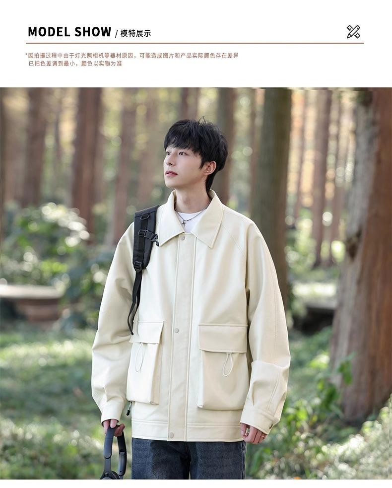 Chaqueta de cuero sintético con solapa de la NASA para hombre, primavera y otoño de 2025, estilo motociclista, estilo americano, para exteriores, holgada, de cuero sintético.