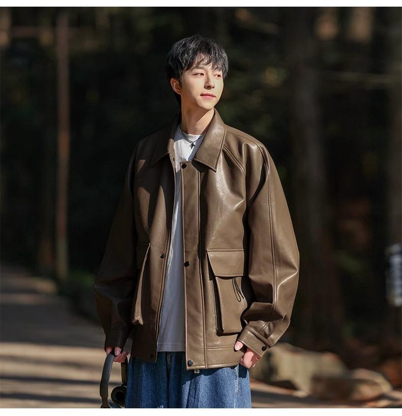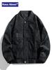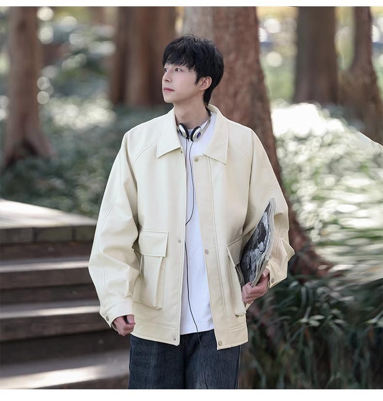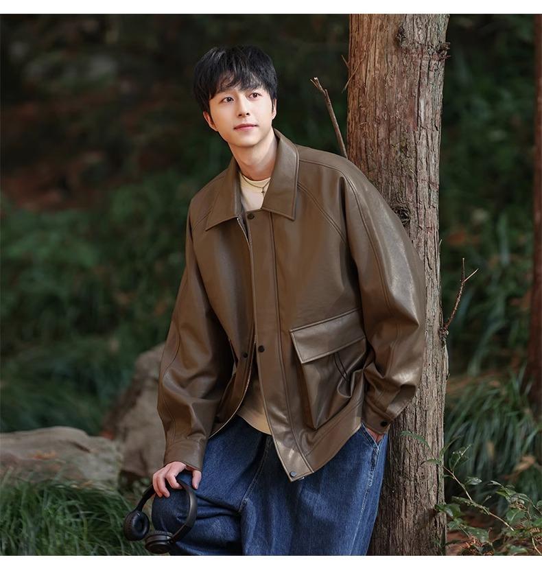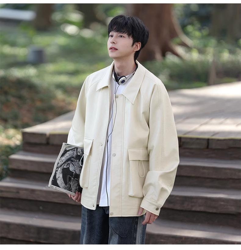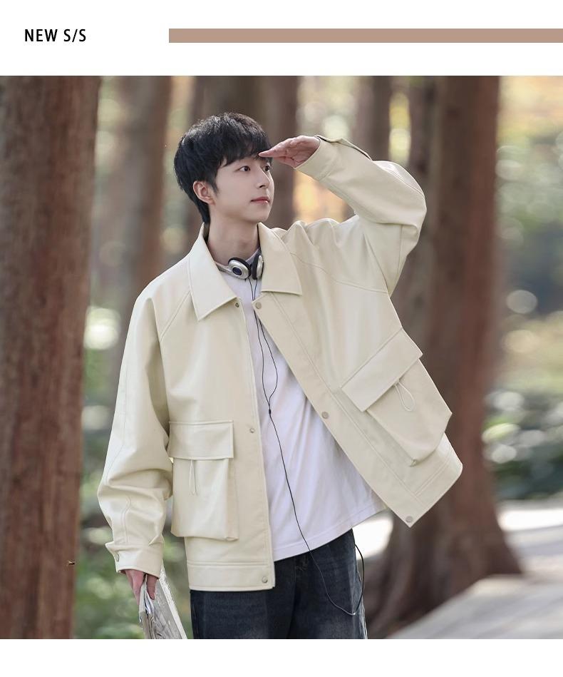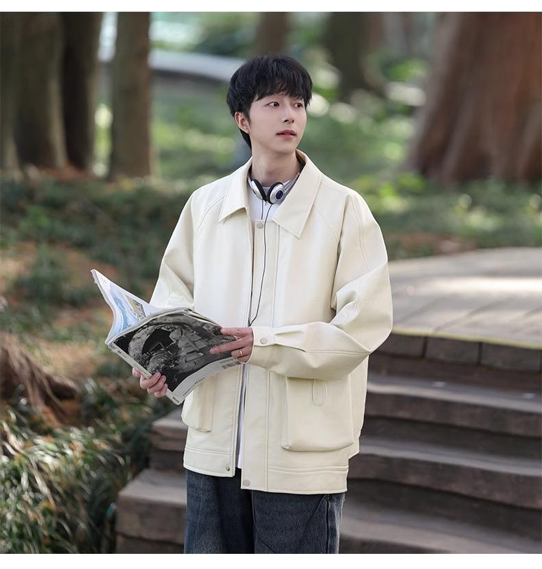 Chaqueta de cuero sintético con solapa de la NASA para hombre, primavera y otoño de 2025, estilo motociclista, estilo americano, para exteriores, holgada, de cuero sintético.